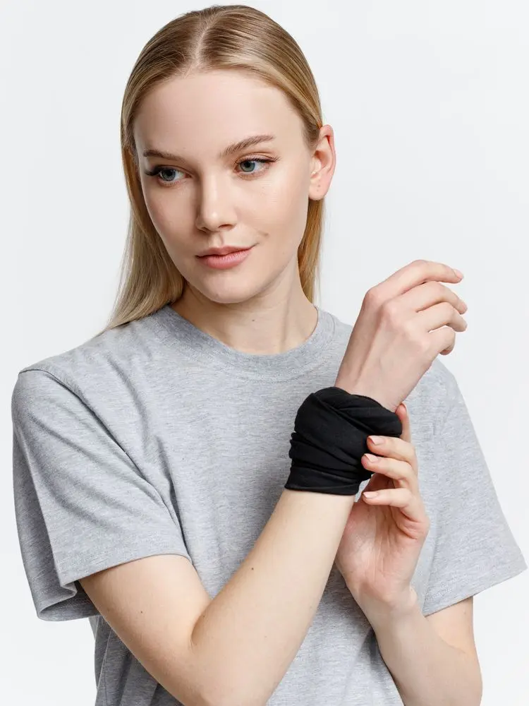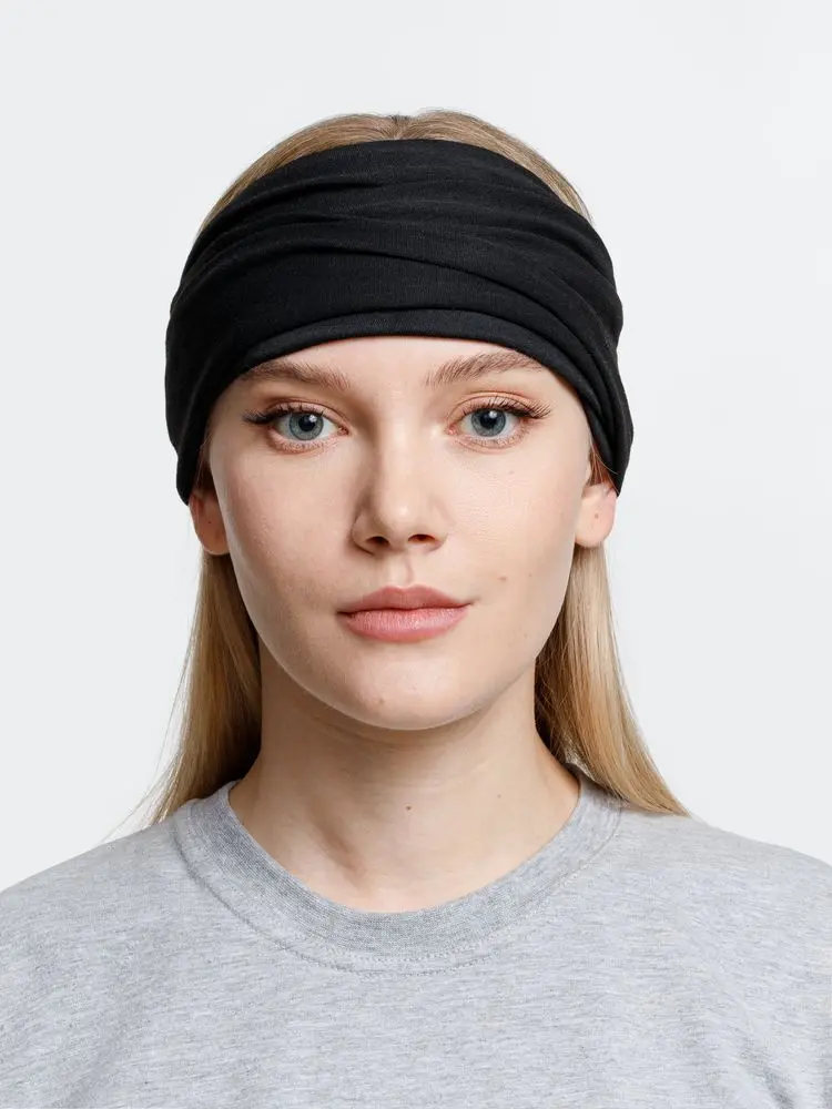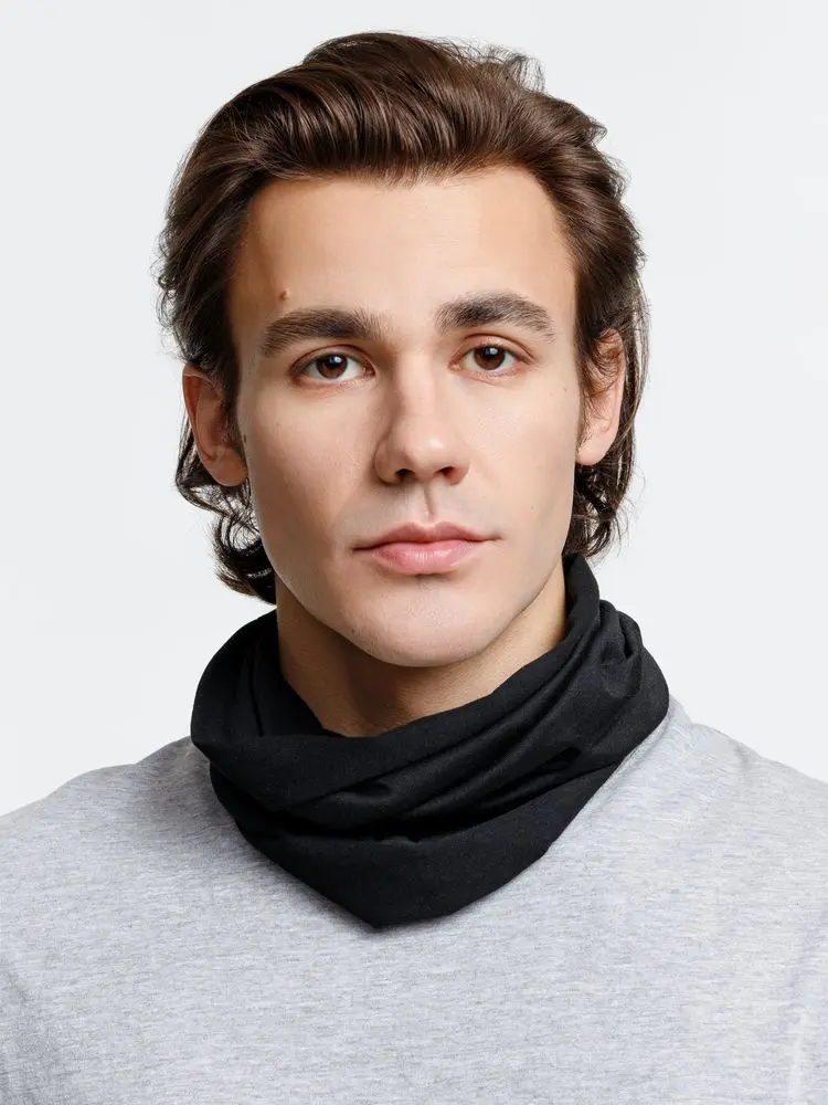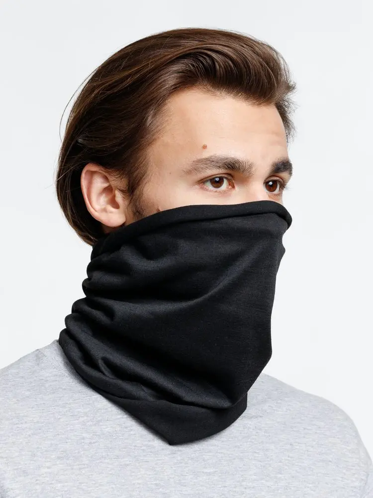 - Аксессуар можно носить на шее, голове или запястье и использовать как шейный платок, маску, шапку или подшлемник.