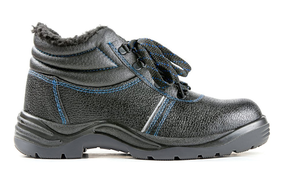 Кожаные ботинки c мягким кантом и глухим клапаном для защиты ног от общих производственных загрязнений в зимний период.