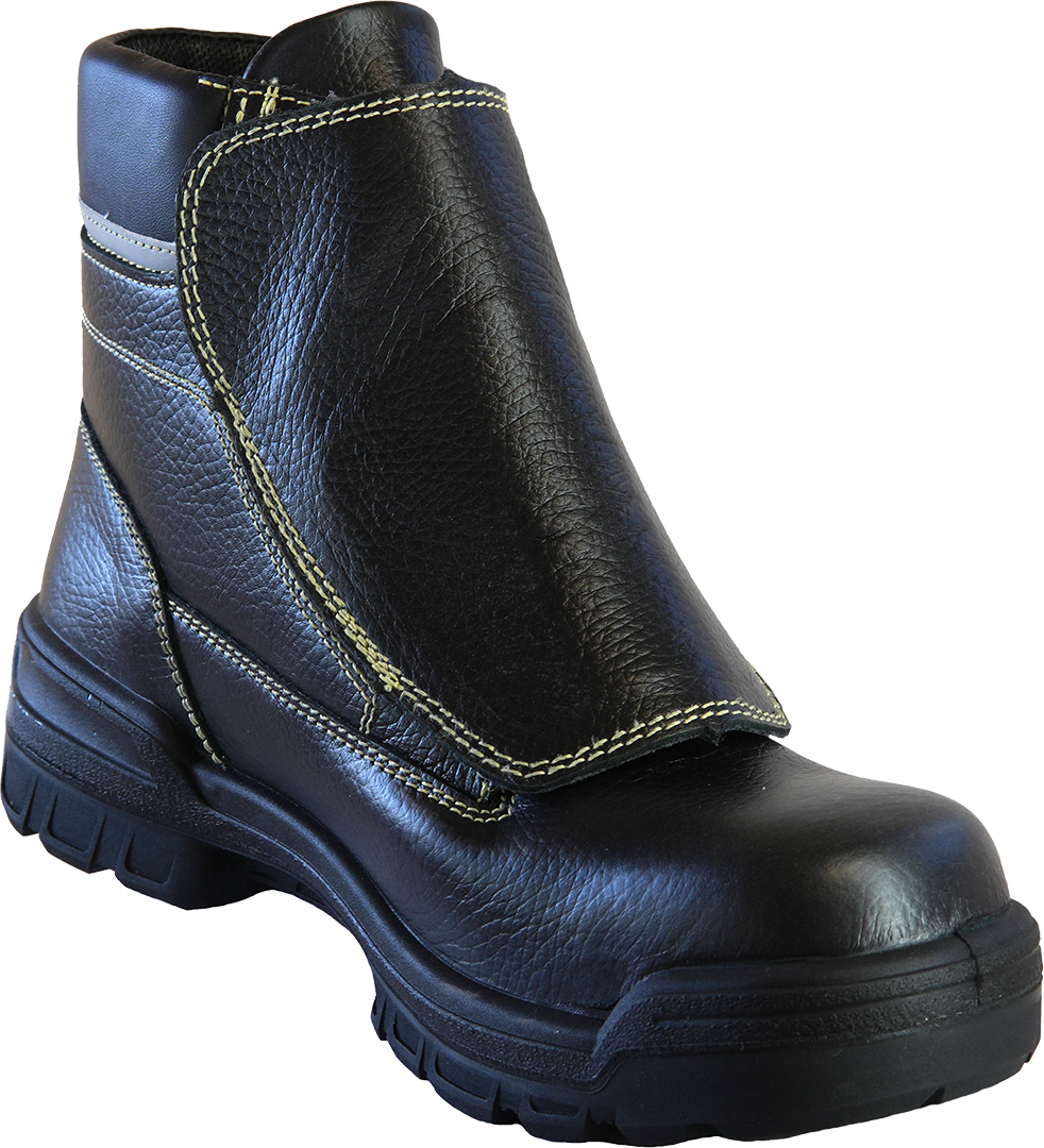 - Дополнительная накладка из натуральной кожи закрывает глухой клапан, предотвращая таким образом попадание внутрь обуви окалины и брызг расплавленного металла.