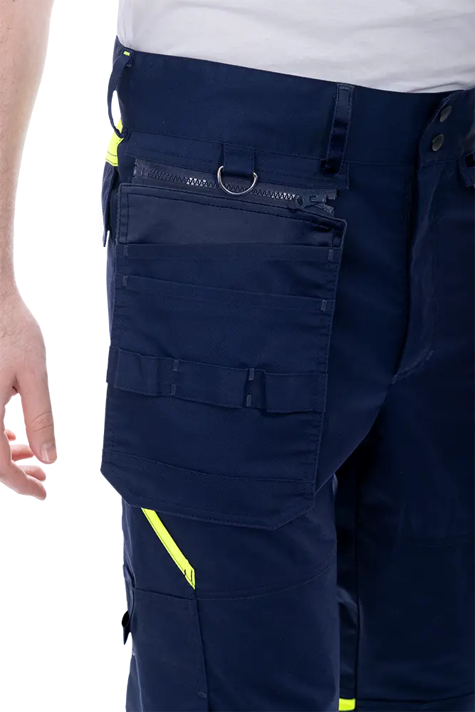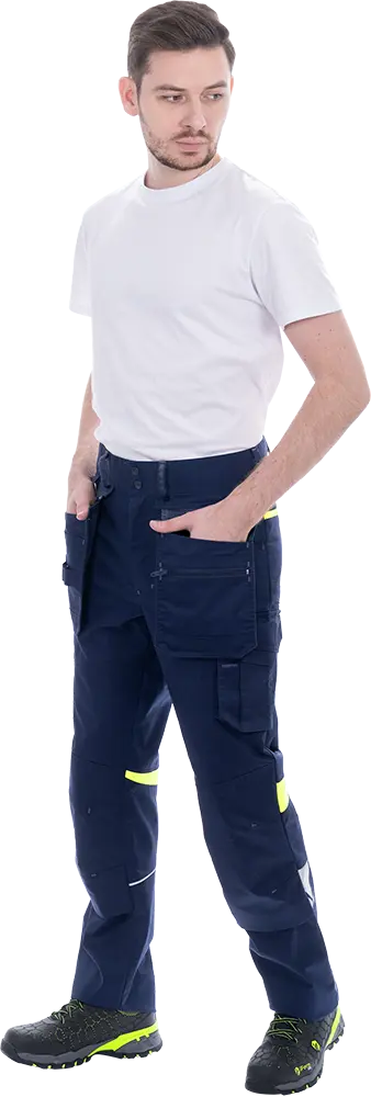 Благодаря инновационной ткани «Индустриаль Флекс» с добавлением эластолефина, брюки не сковывают движения, хорошо садятся по фигуре и сохраняют форму даже при длительной носке. Усиленные зоны и продуманное размещение карманов обеспечивают удобство при транспортировке инструмента и работе в динамике.