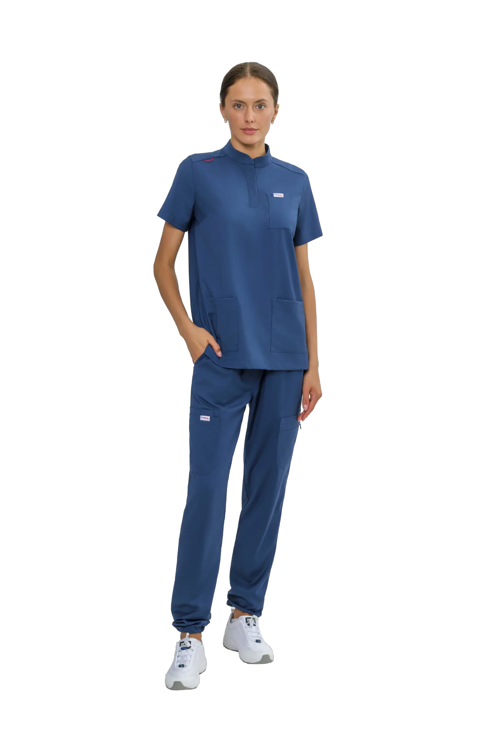 - Задняя половинка с накладным карманом фигурной формы.