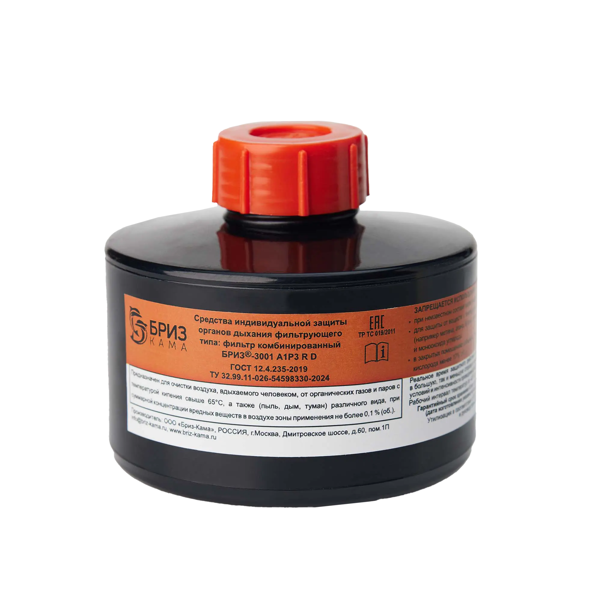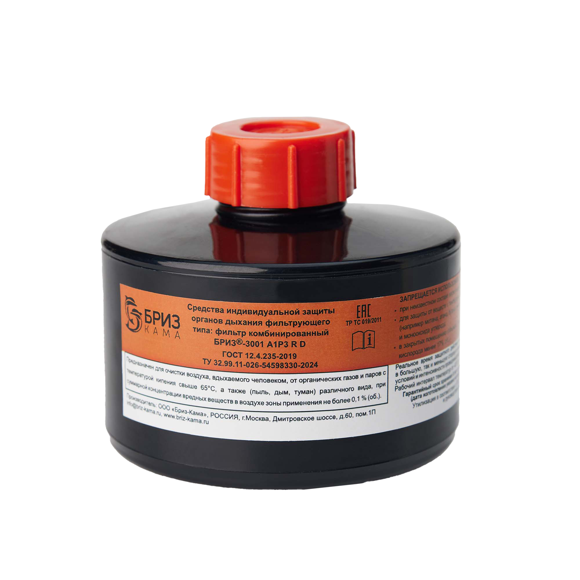 Фильтр комбинированный серии «Бриз-3001» A1P3 R D применяется для очистки выдыхаемого загрязненного воздуха от: