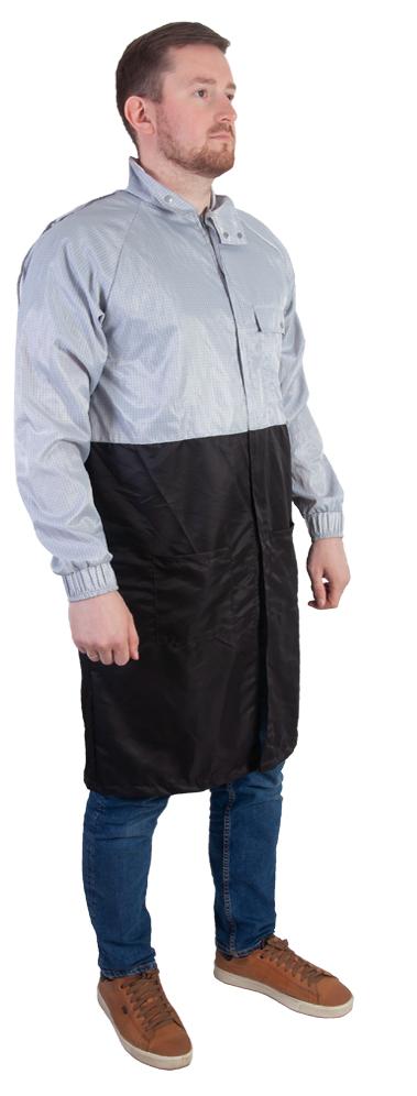 Защитный халат с антистатическими свойствами из полиэфирной ткани с карбоновой нитью (2%).