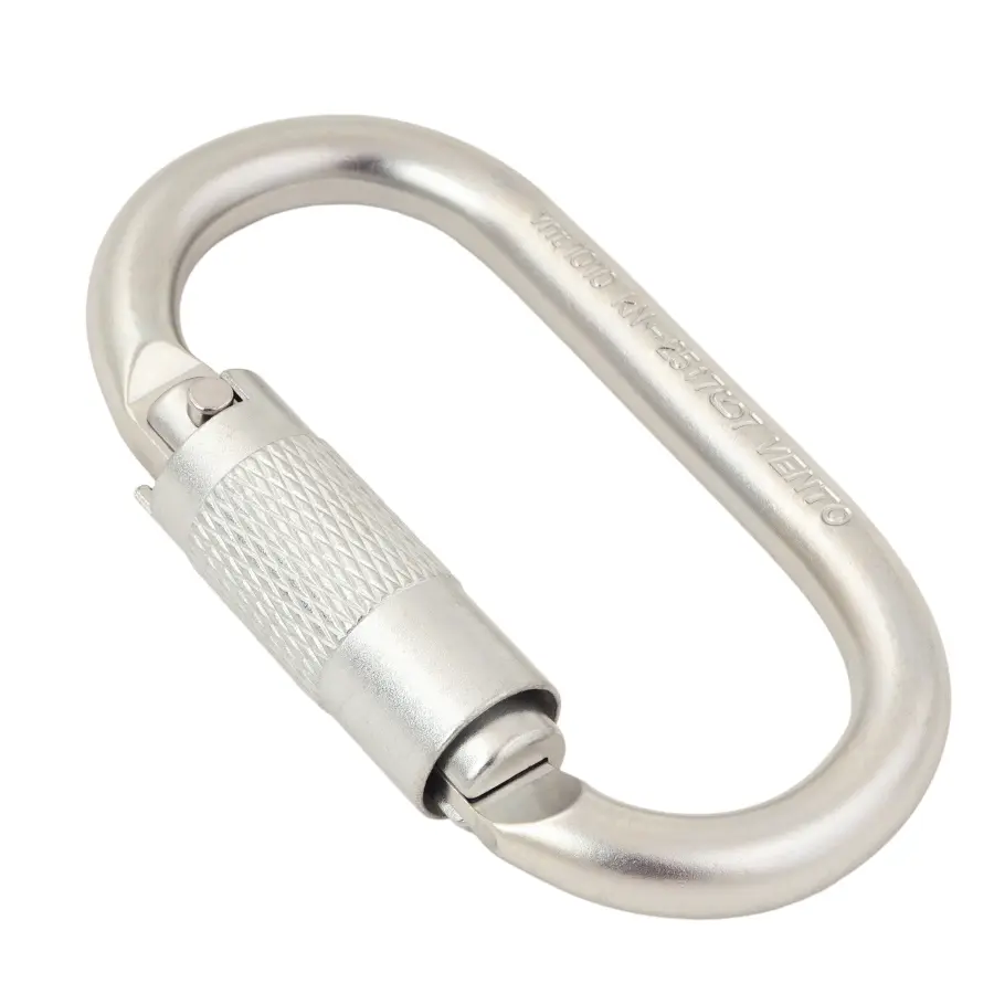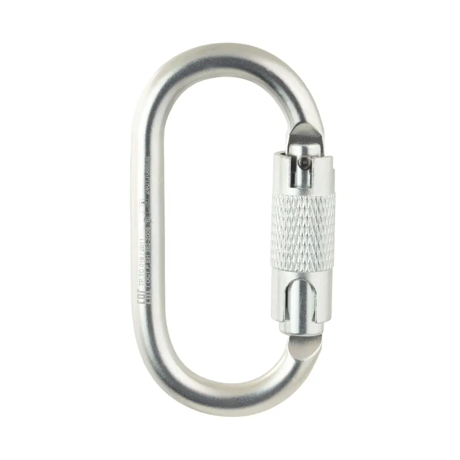- Симметричная овальная форма позволяет равномерно нагружать карабин и удобно поворачивать при соединении с другими составляющими страховочной цепи. Карабин применяют, когда важно отсутствие перекосов или заклинивания.