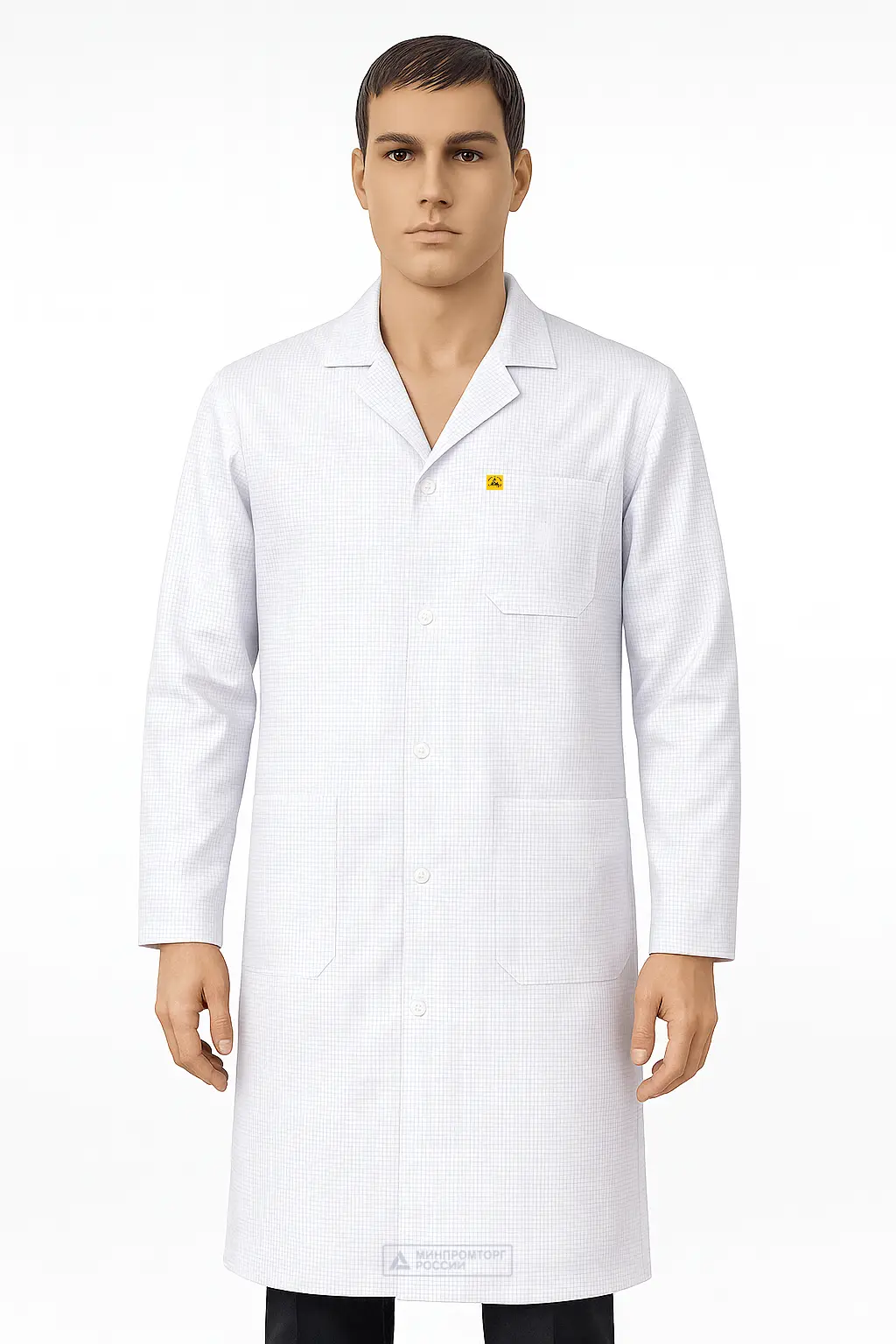 - Халаты маркируются значком ESD( на желтом фоне, черный треугольник с рукой)