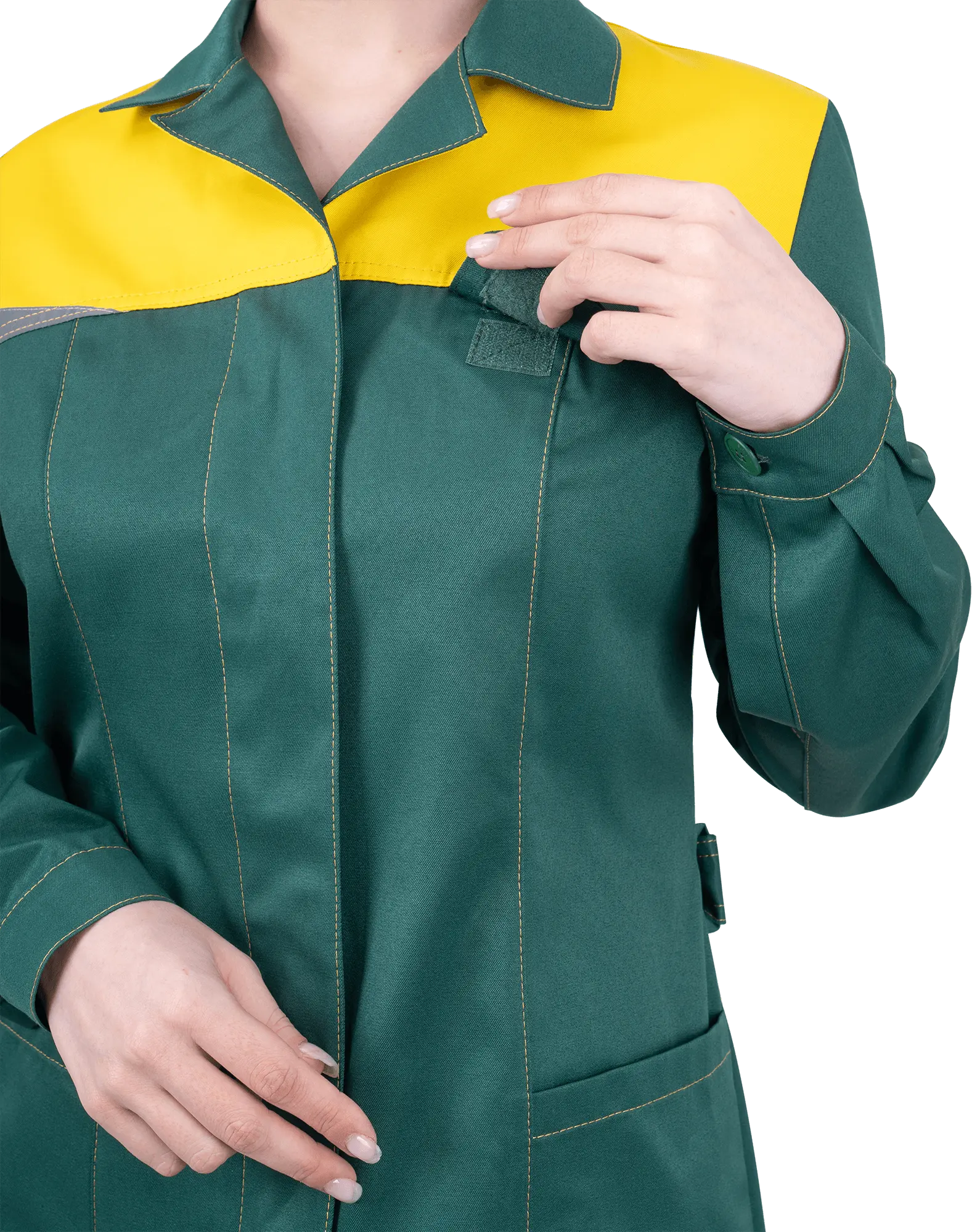 - нагрудный карман с клапаном с текстильной застёжкой в шве кокетке;