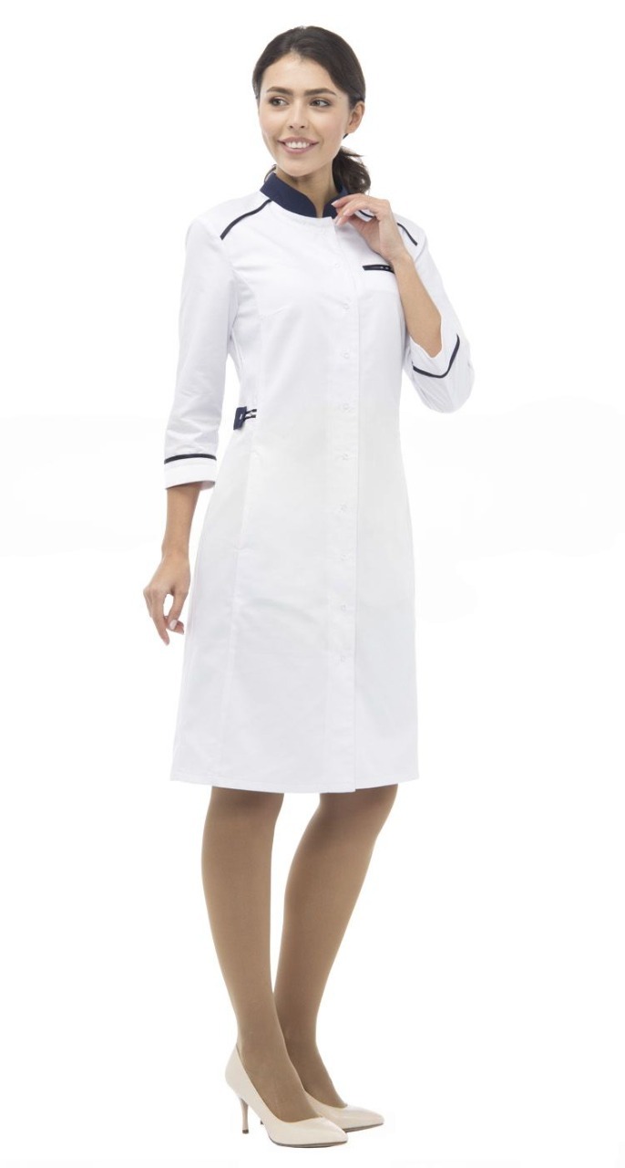 - Прилегающего силуэта, с центральной застежкой на кнопки, длиной до середины колена.