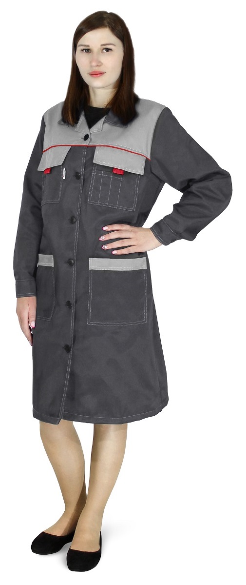 - Халат рабочий женский с центральной застежкой на пуговицы.