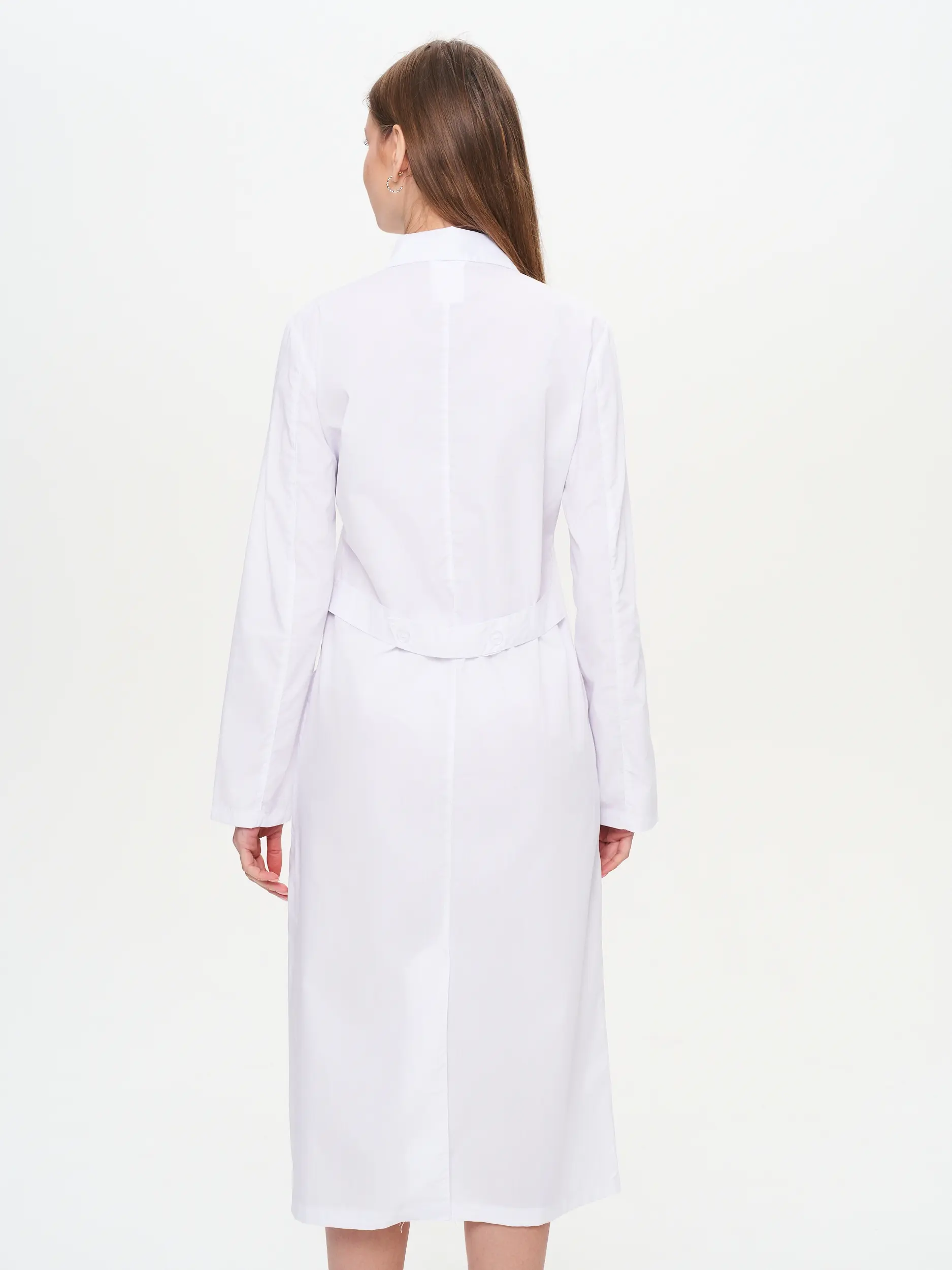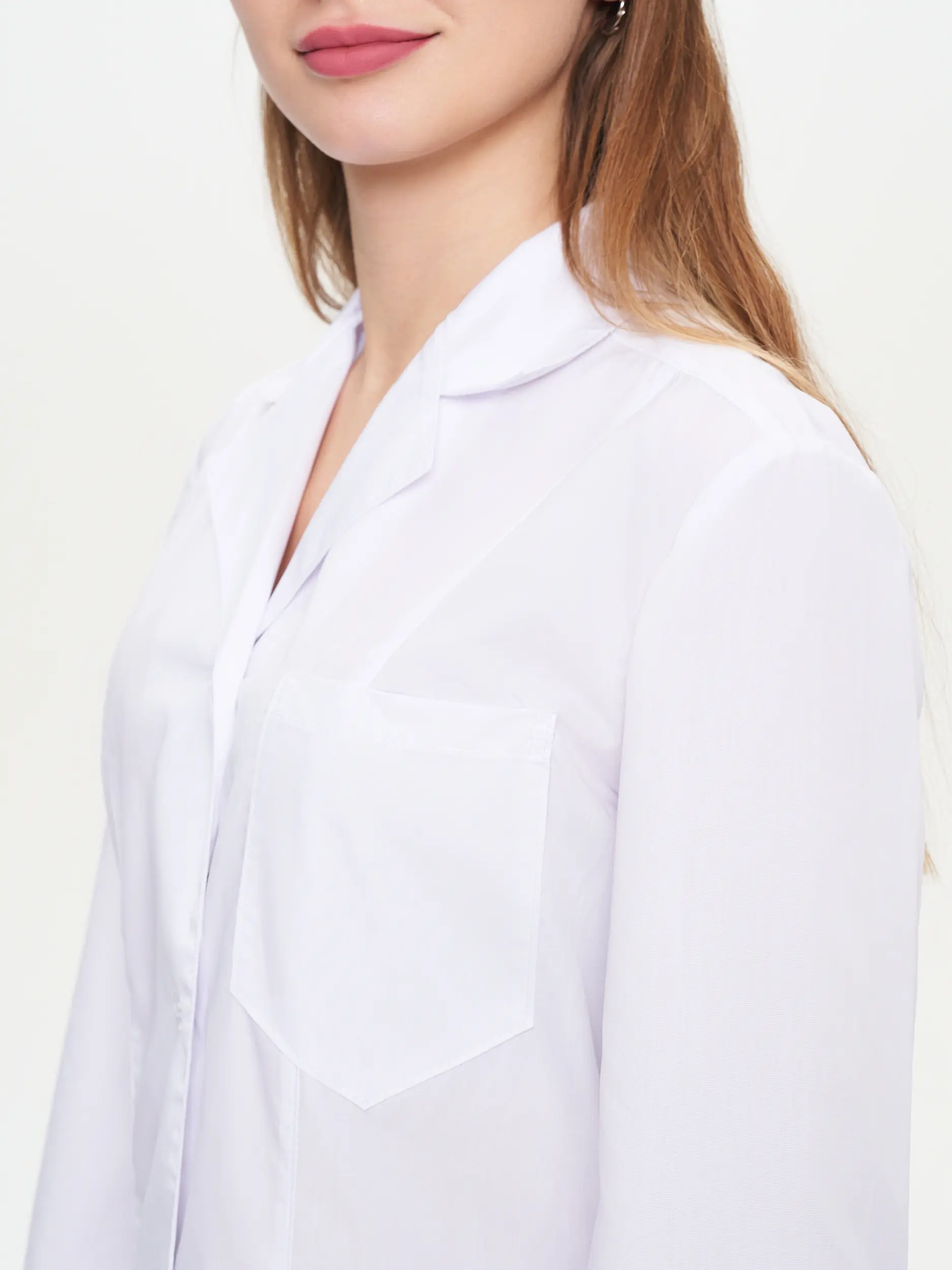 - Силуэт: полуприлегающий, с центральной застежкой на пуговицы.
