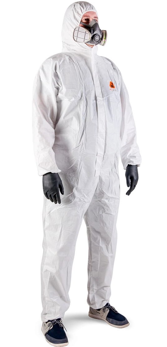 Особая конструкция комбинезона: капюшон из 3х частей, вставленные рукава, двойная молния, обметанный шов, эластичная резинка на поясе создают дополнительный комфорт. Предполагаемое использование: химическая и нефтехимическая промышленность, грязные и малярные работы, очистка помещений, переноска и ликвидация асбеста, работа в стерильных помещениях, пищевая промышленность, ремонт оборудования.