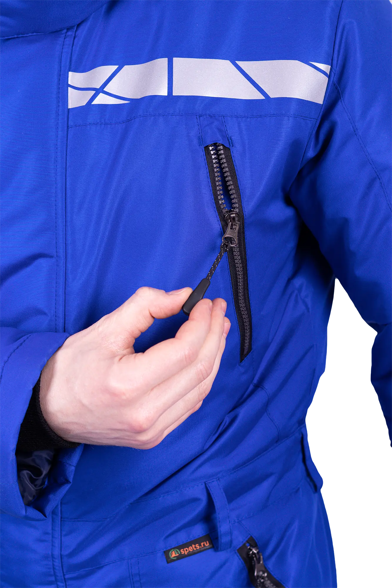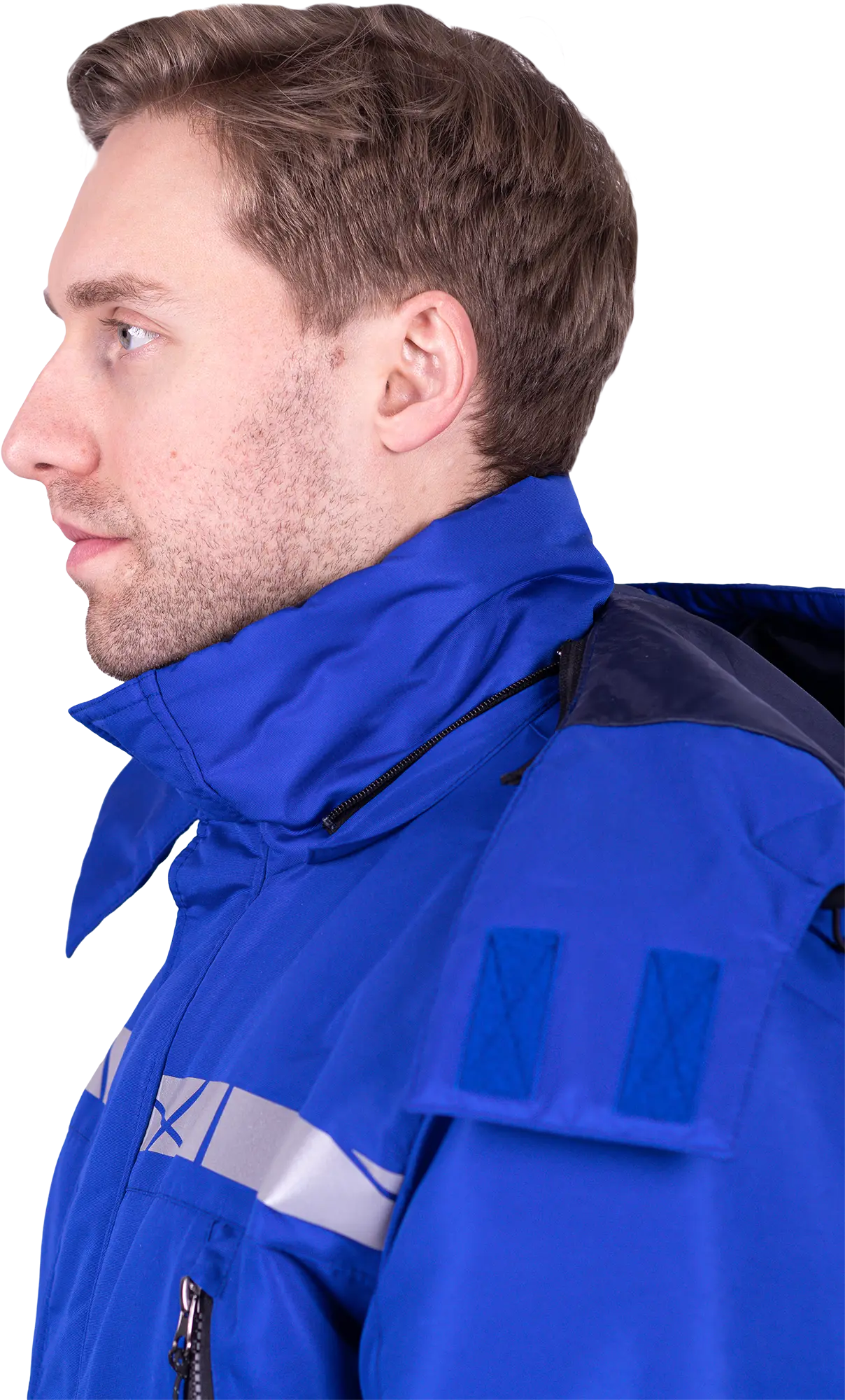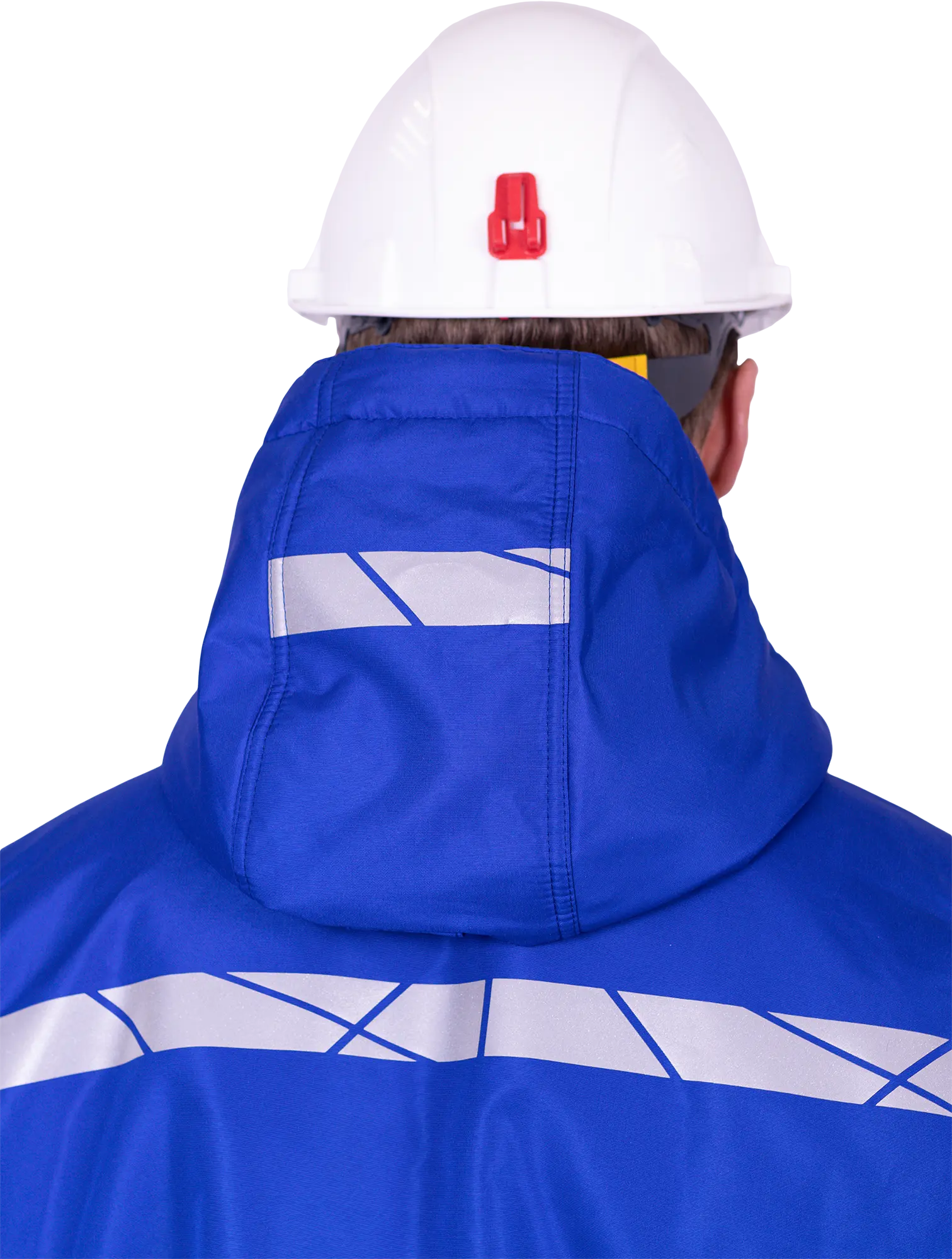 - термоклеевые световозвращающие полосы шириной 30 мм на кокетках полочки и спинки, внизу рукавов, брюк, на центральной части капюшона.