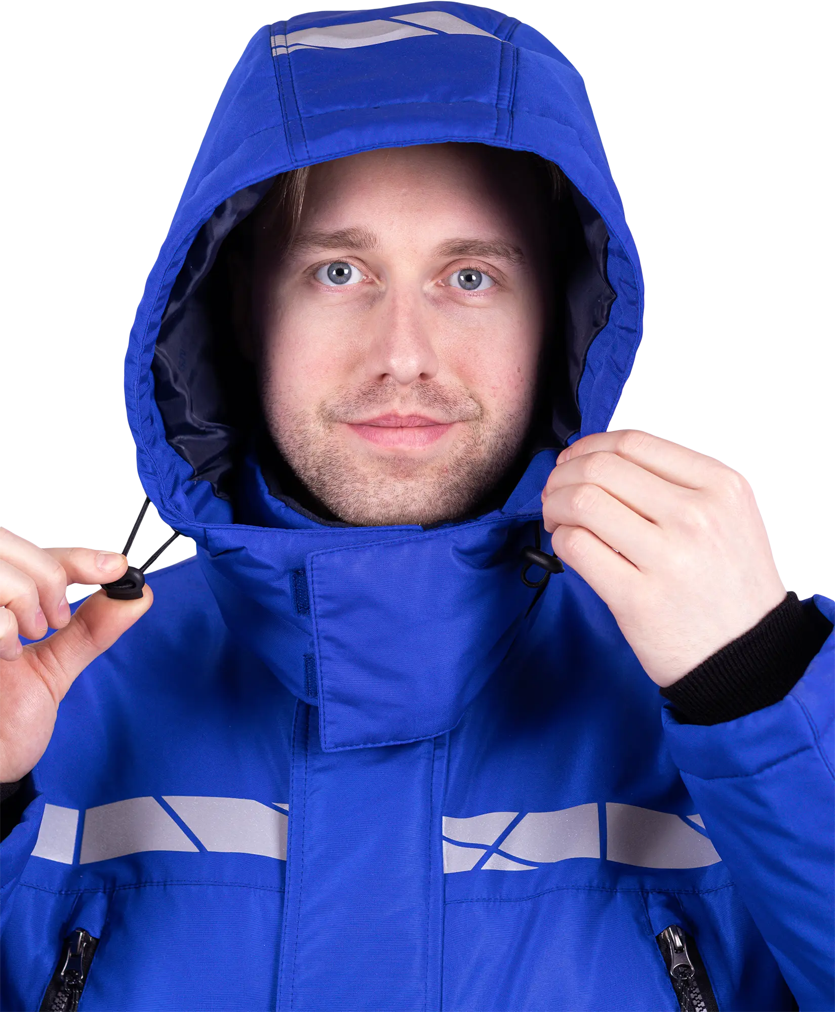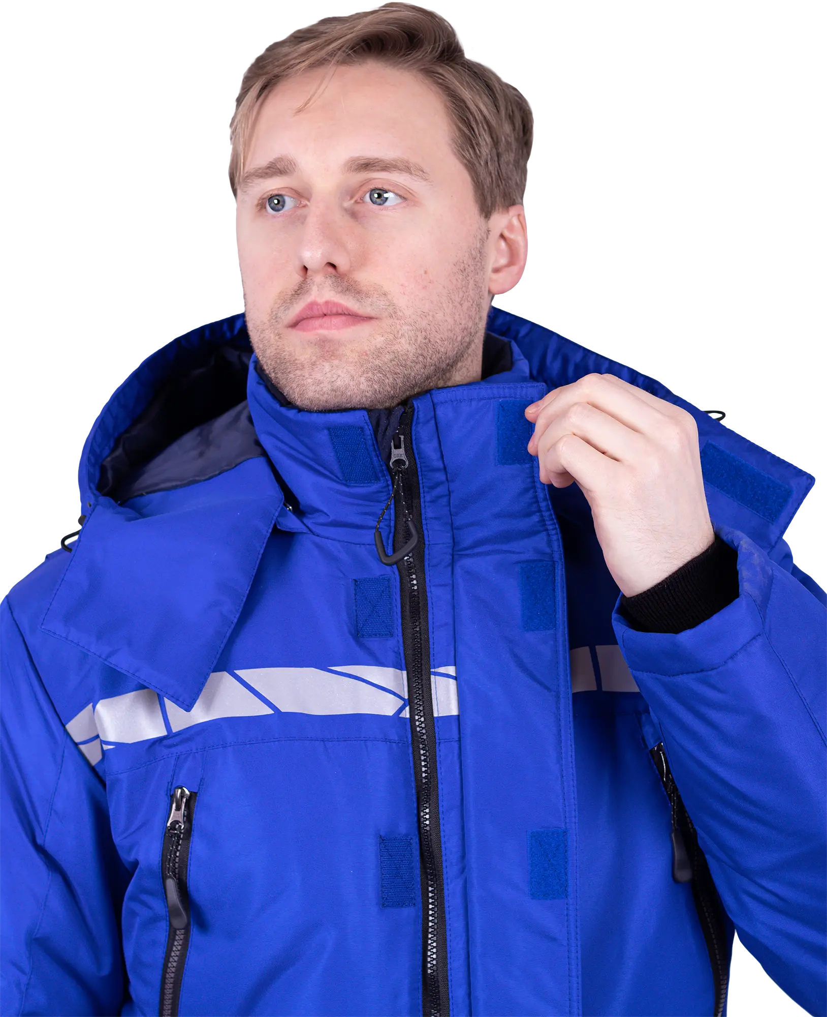 - съемный утеплённый капюшон с эластичным шнуром по лицевому вырезу;