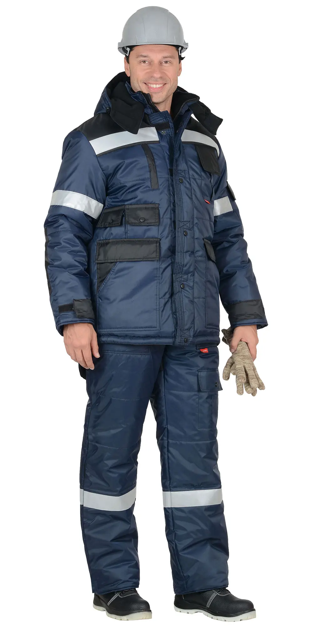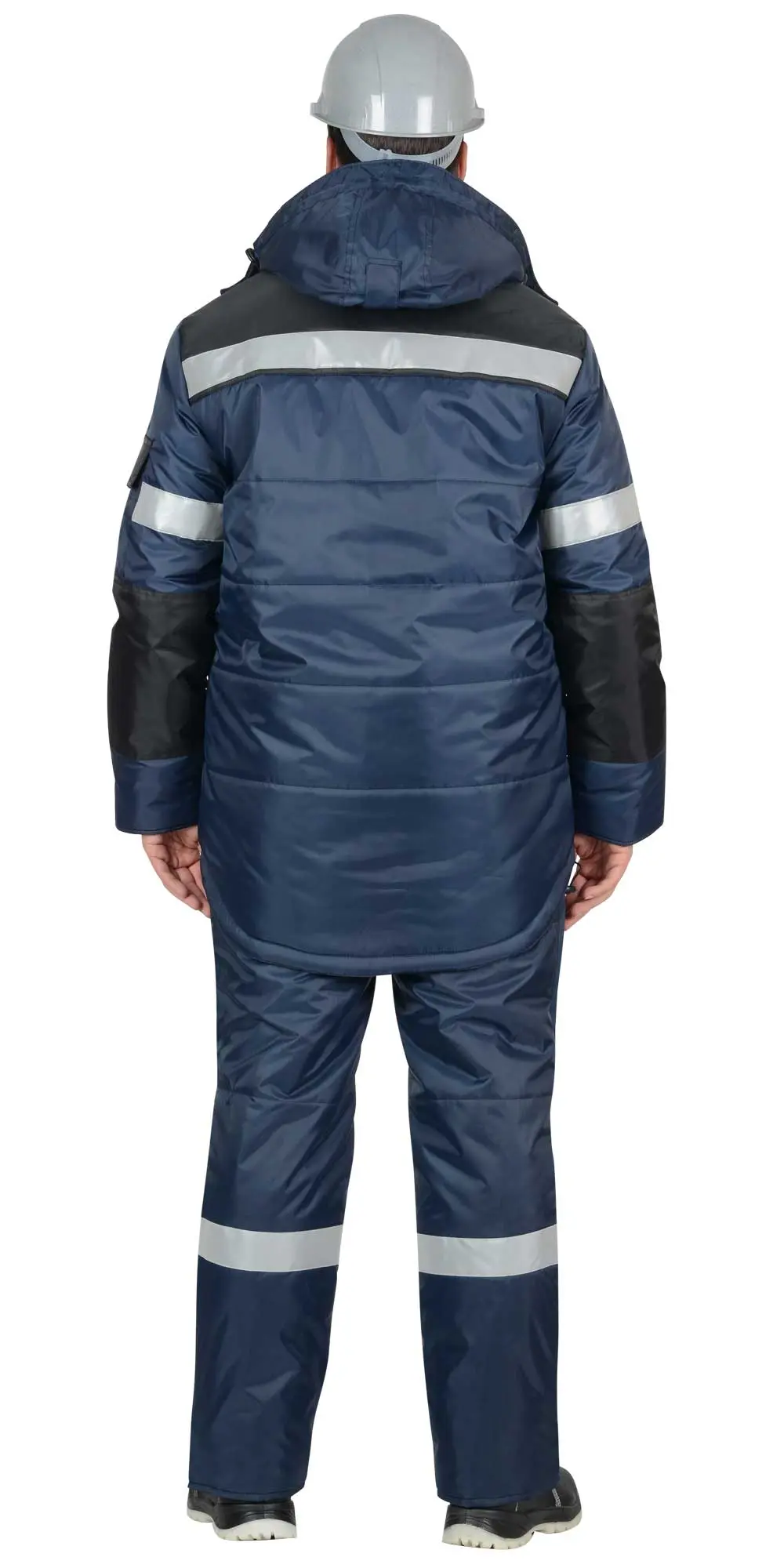 Костюм зимний состоит из удлинённой куртки и полукомбинезона. В костюме предусмотрена светоотражающая лента для обеспечения видимости работающего в тёмное время суток.