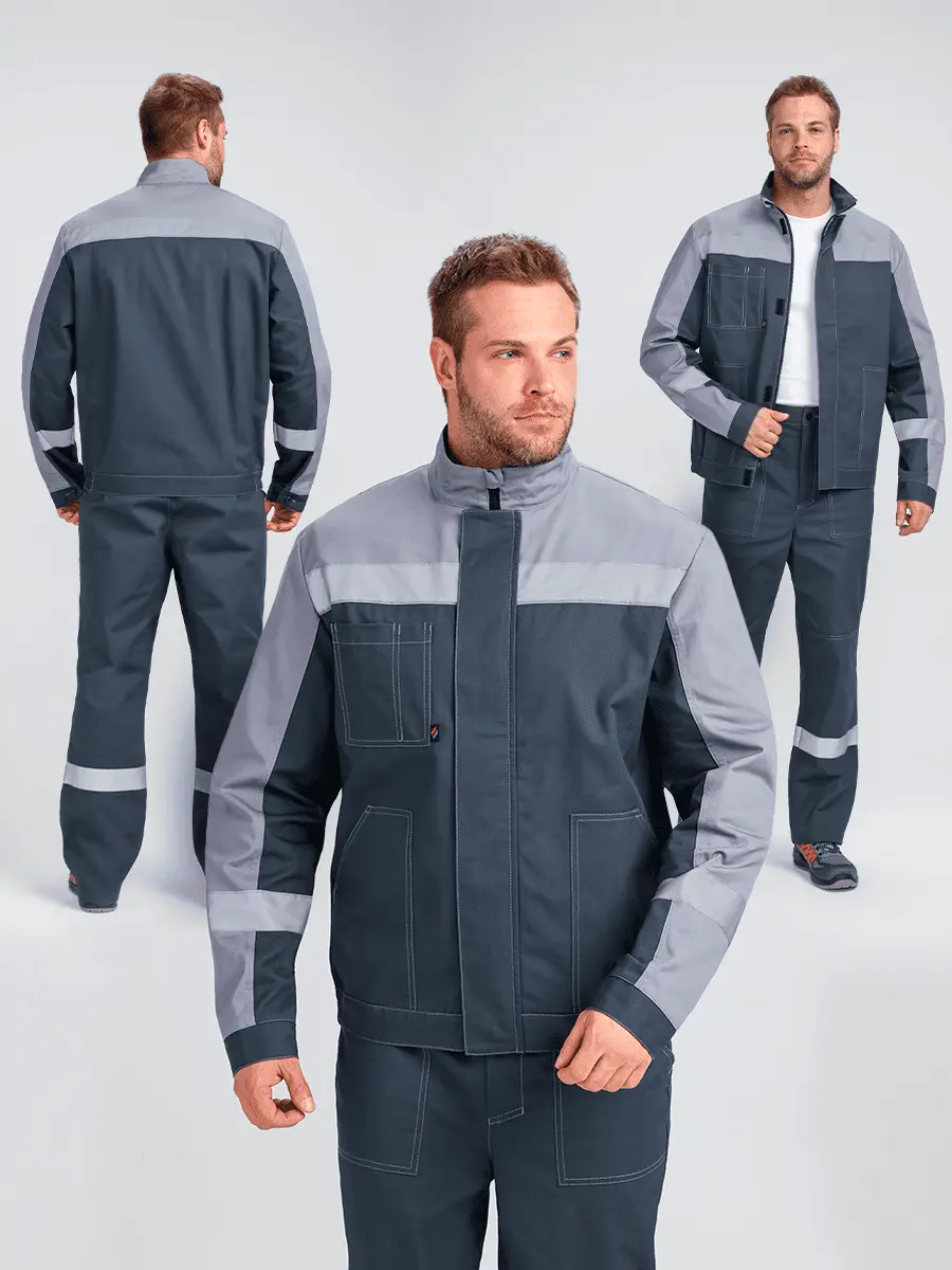 - Широкая светоотражающая полоса по низу кокеток и на рукавах для безопасности