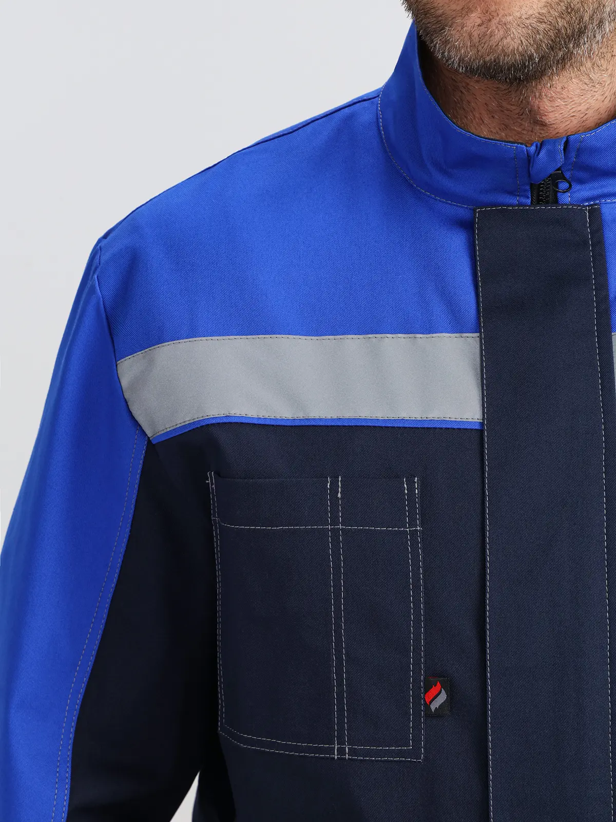 - Широкая светоотражающая полоса по низу кокеток и на рукавах для безопасности;