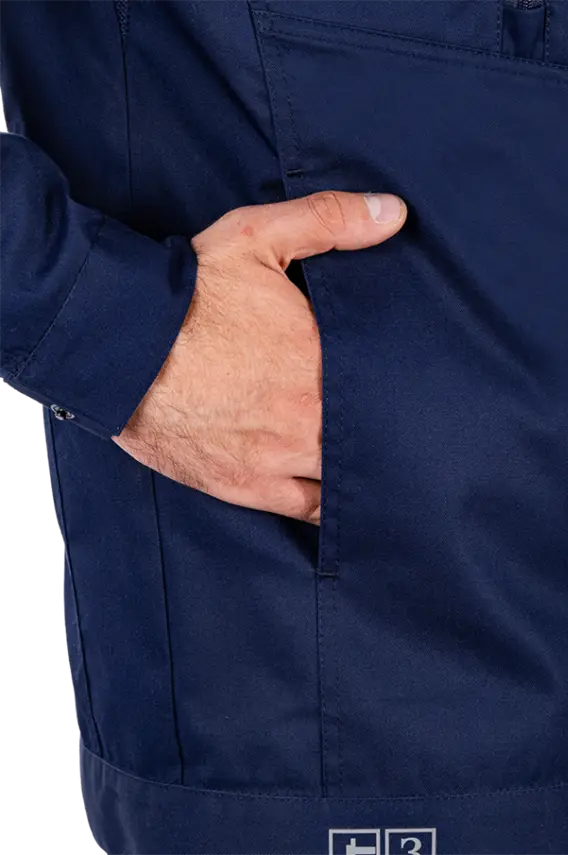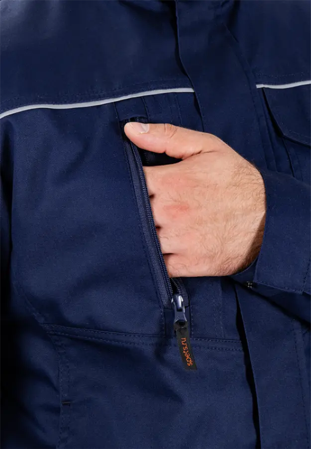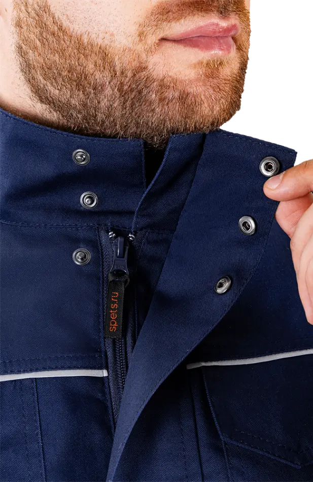 - центральная застежка на молнию с ветрозащитным клапаном на потайных кнопках. Ветрозащитный клапан исключает контакт молнии с оборудованием.