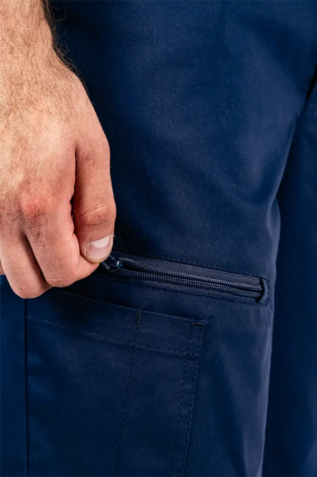 - карманы: два боковых с наклонным входом, один карман на молнии на правой передней половинке с горизонтальным входом, на кармане с молнией дополнительный накладной карман с отделением для маркера на, два задних накладных кармана.
