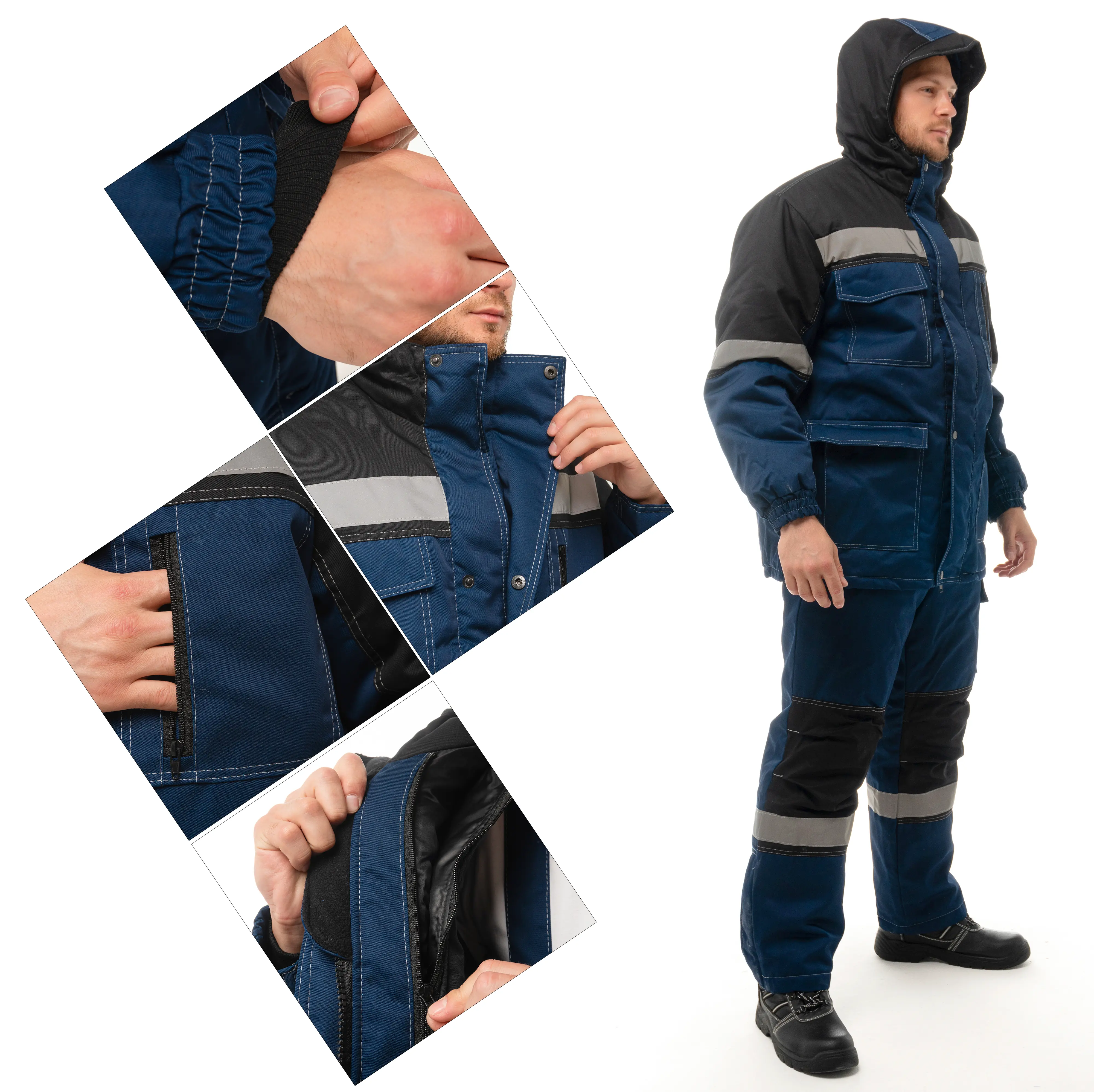 - Контрастная отстрочка, съемный утеплитель подстежки куртки и брюк.