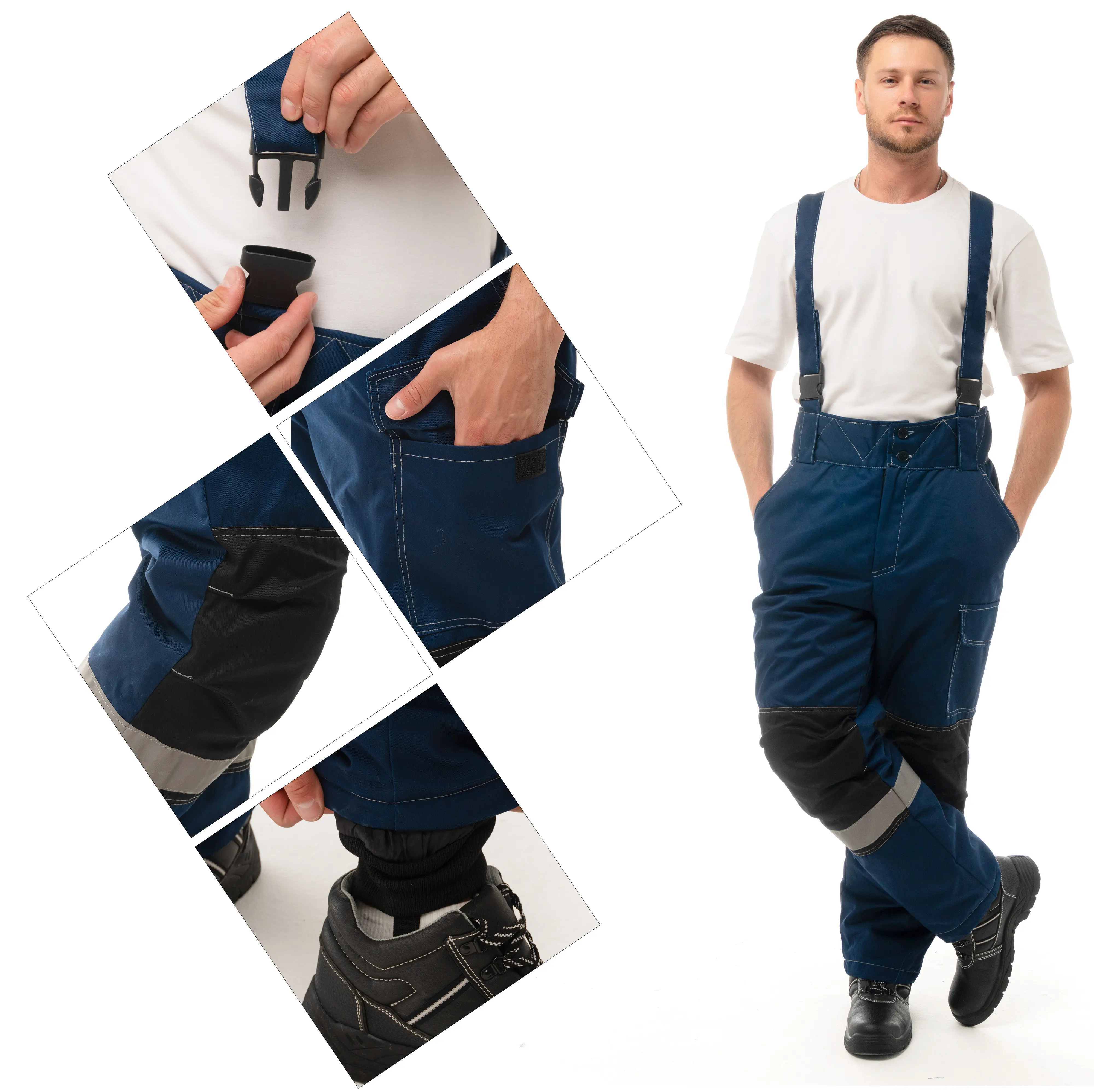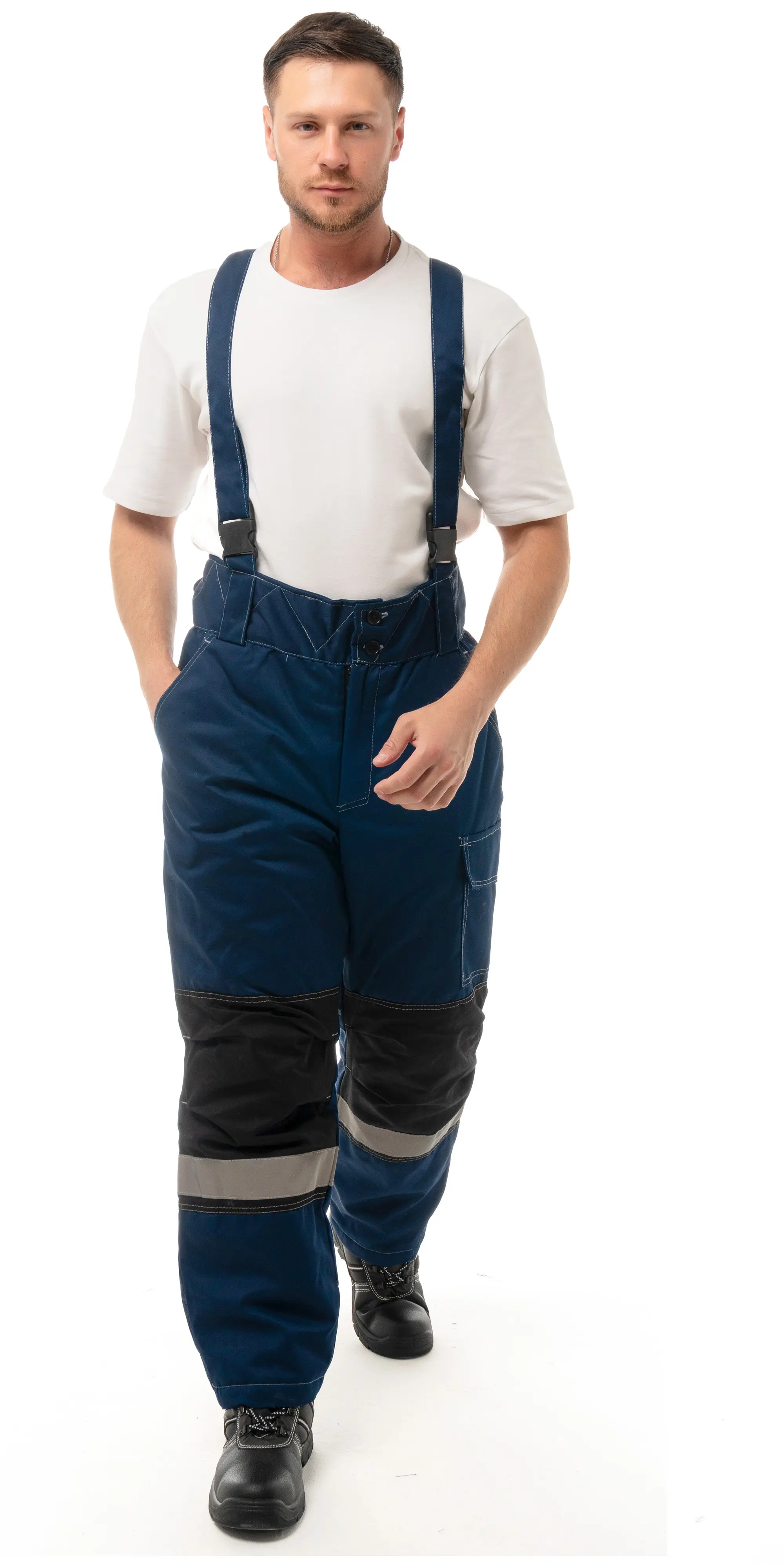 - Брюки с застежкой гульфика на молнию, с высокой спинкой и съемными бретелями на пуговицах.