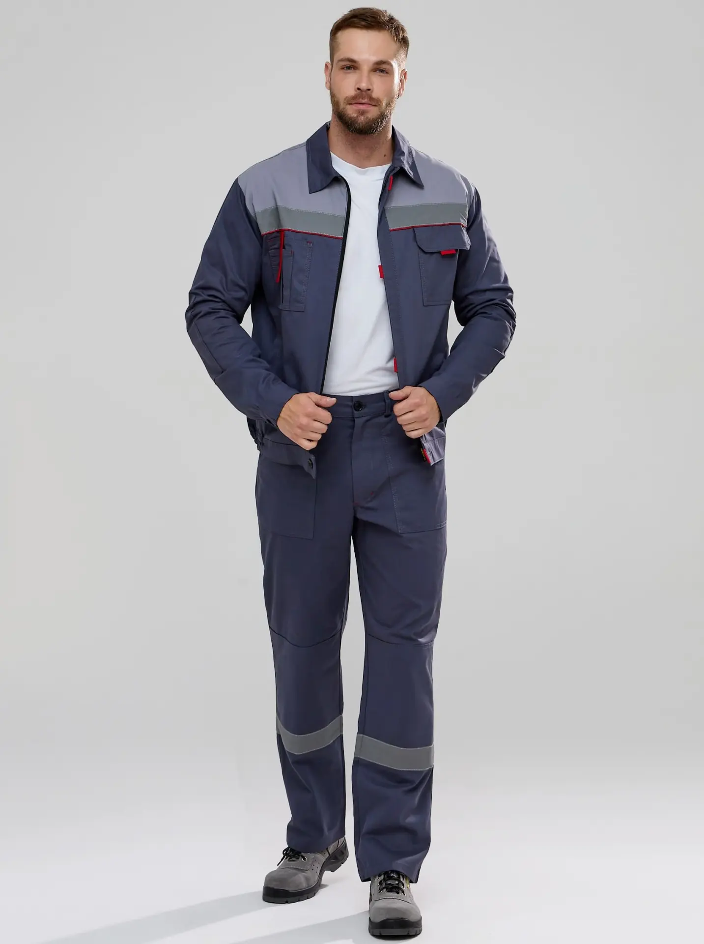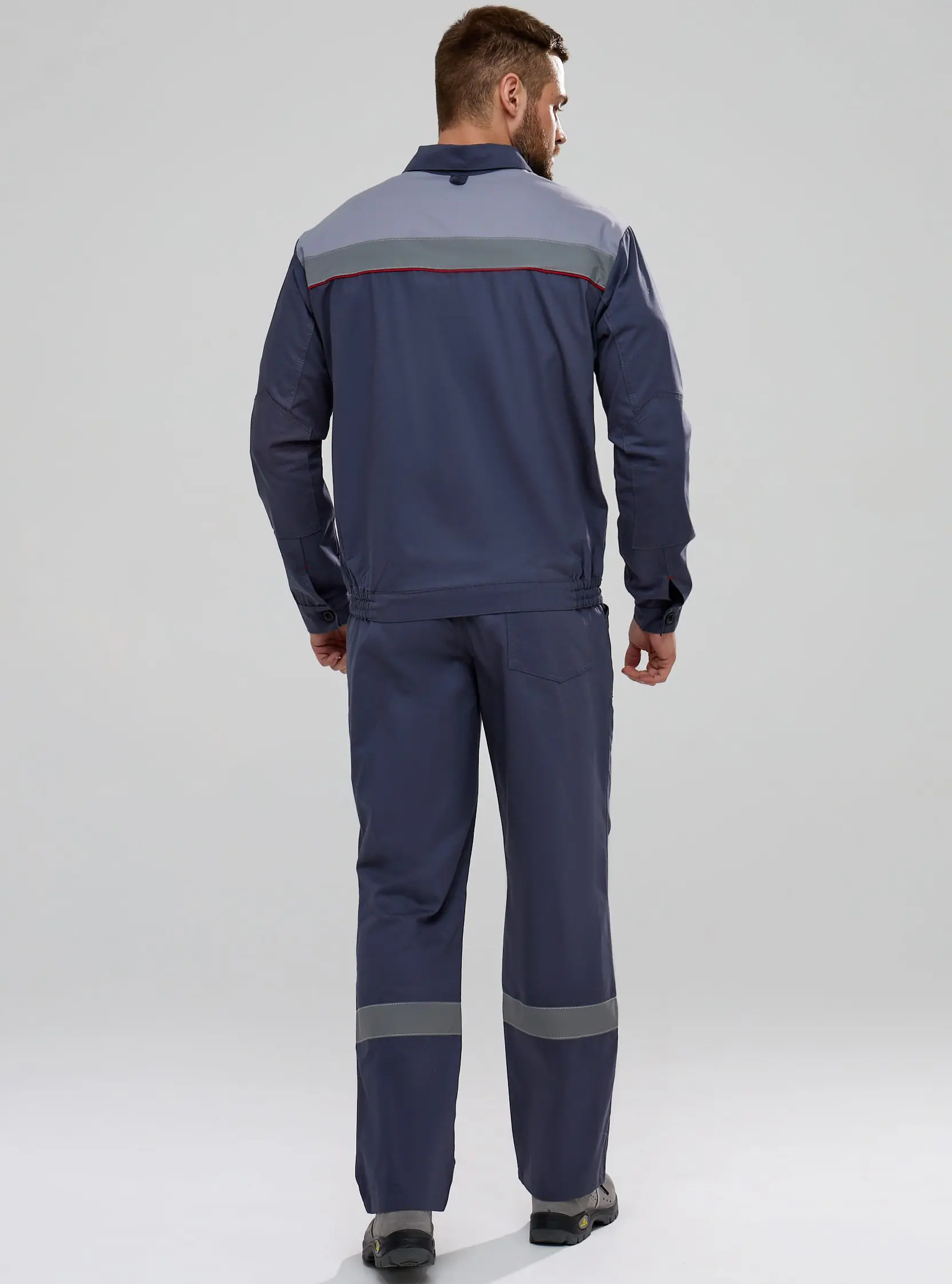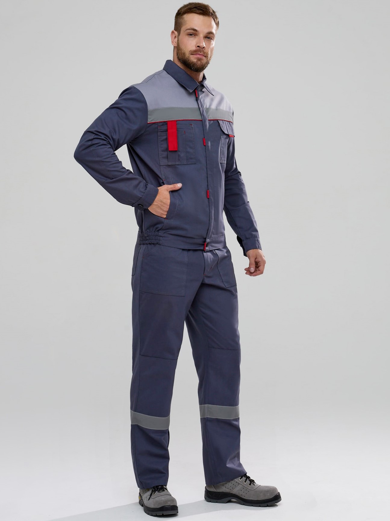 Костюм Флофт-1 СОП (тк.Саржа,250) брюки, т.серый/св.серый/красный.
