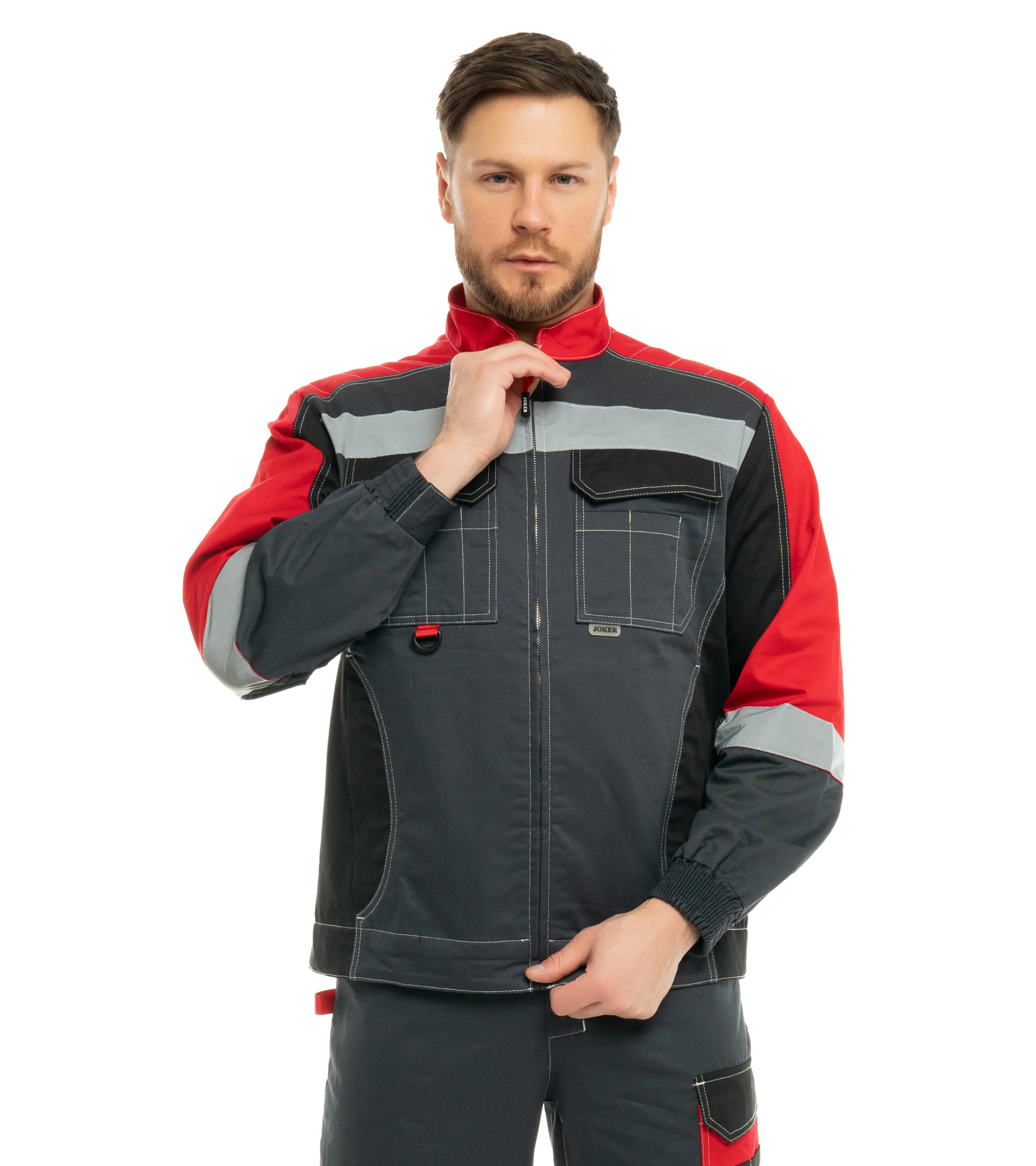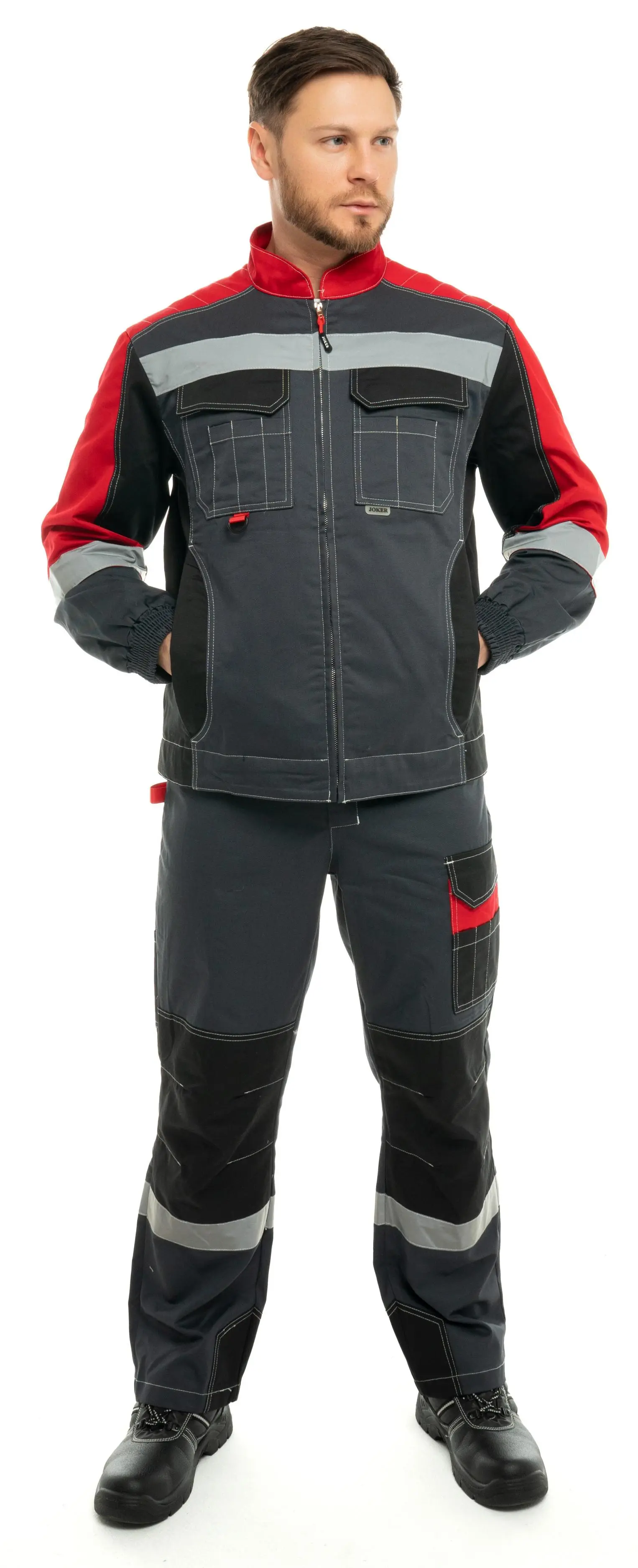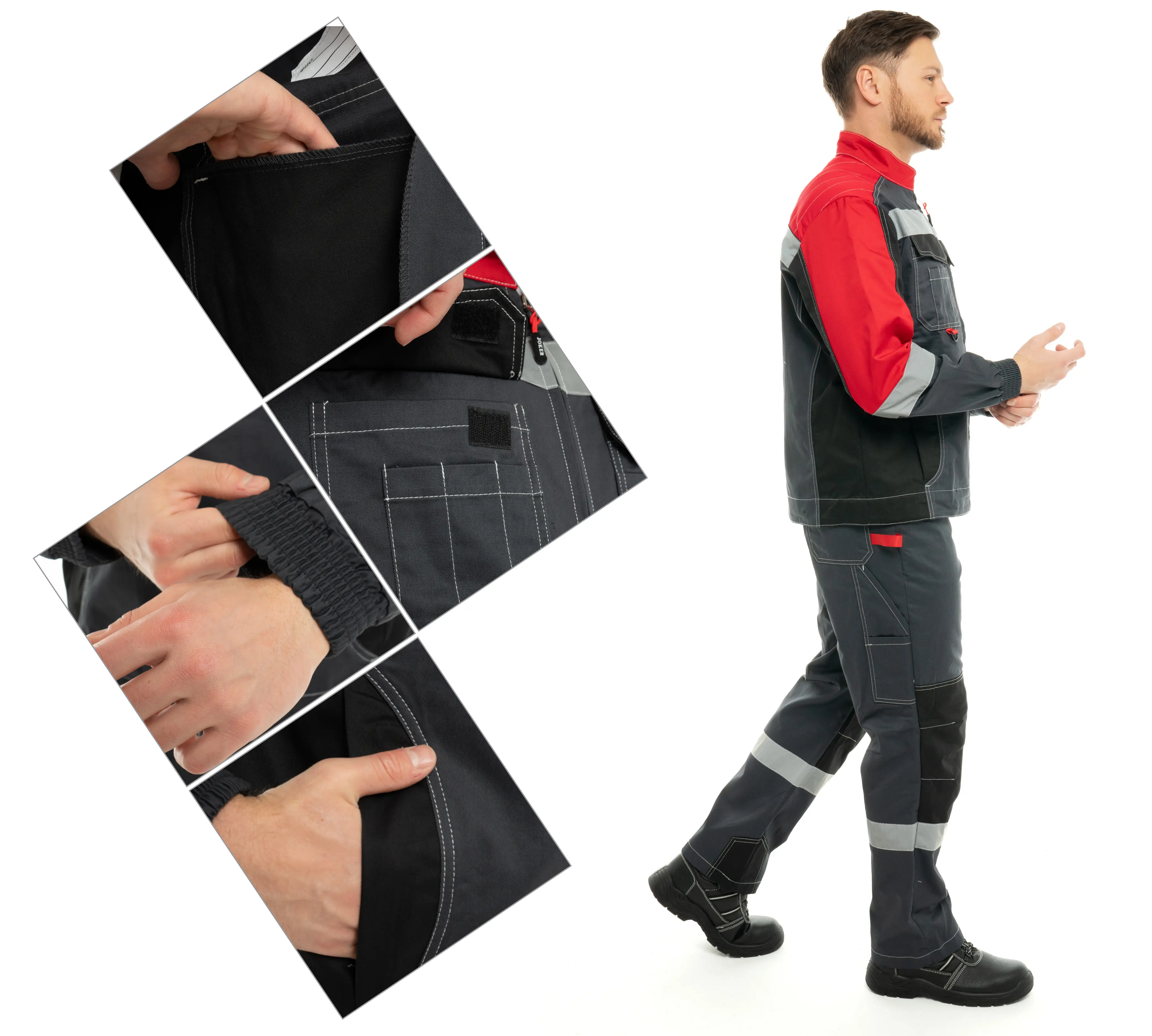 Костюм из ткани с масловодоотталкивающей отделкой, малоусадочной, дышащей, износостойкой.