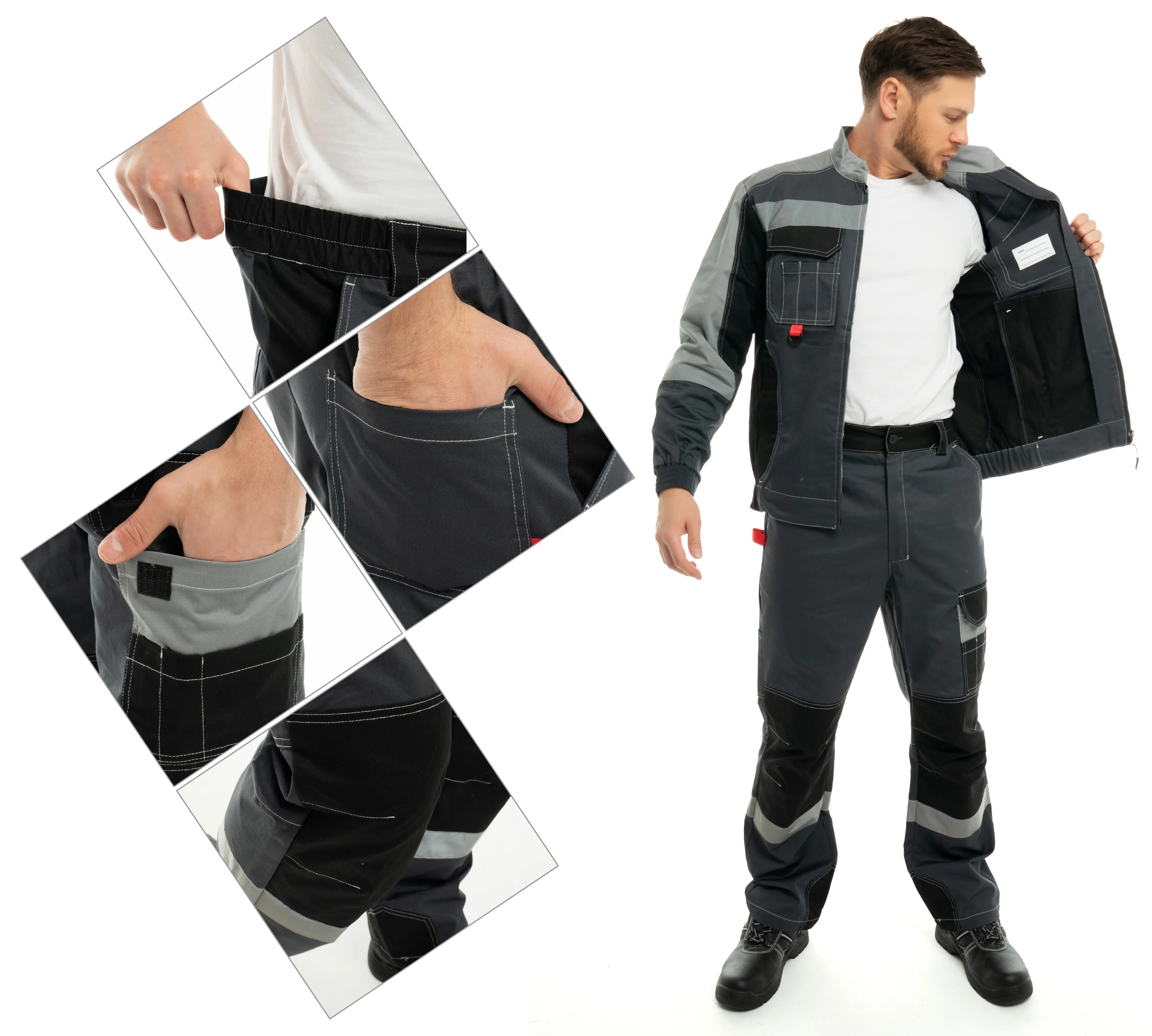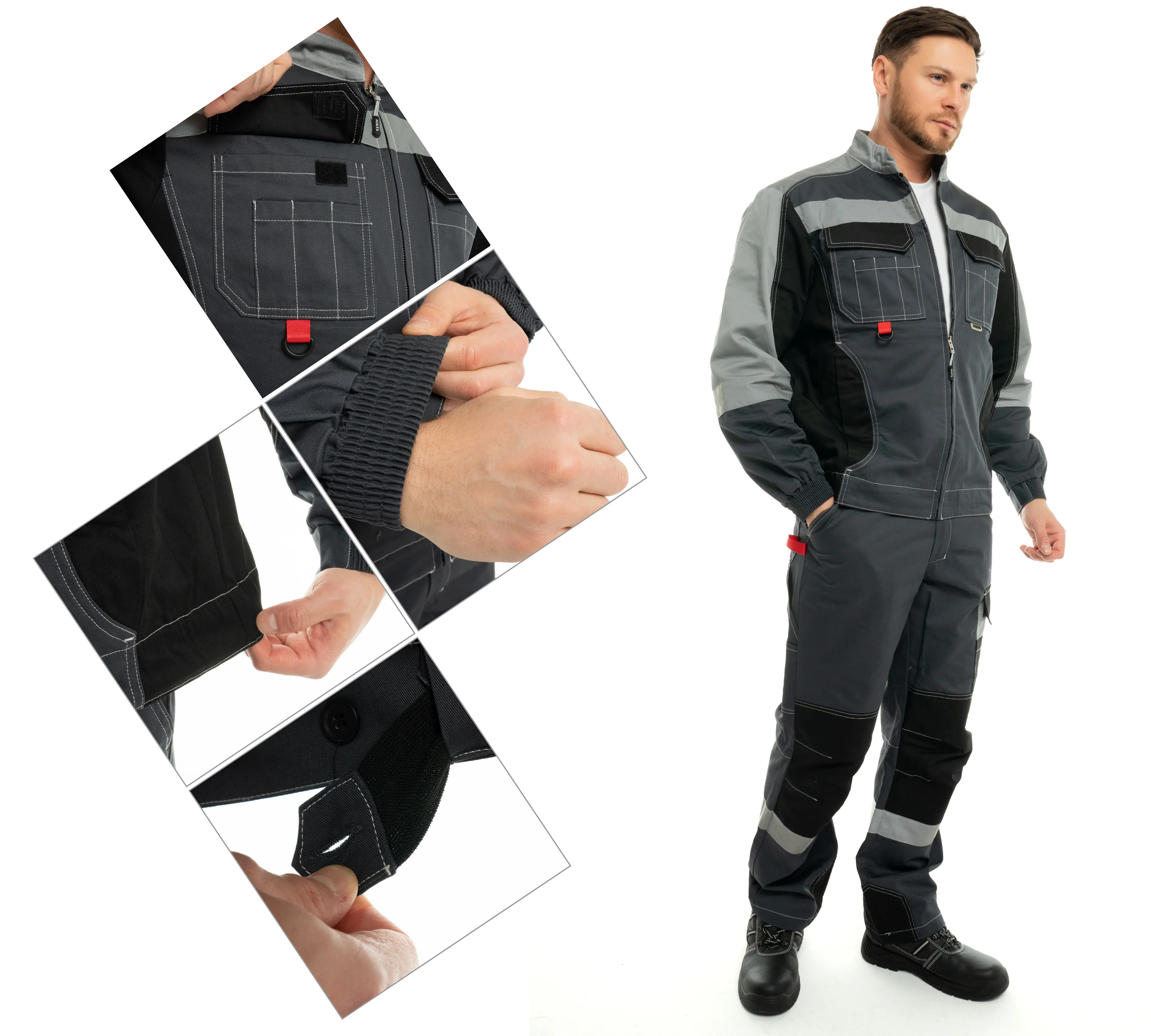 Костюм из ткани с масловодоотталкивающей отделкой, малоусадочной, дышащей, износостойкой.