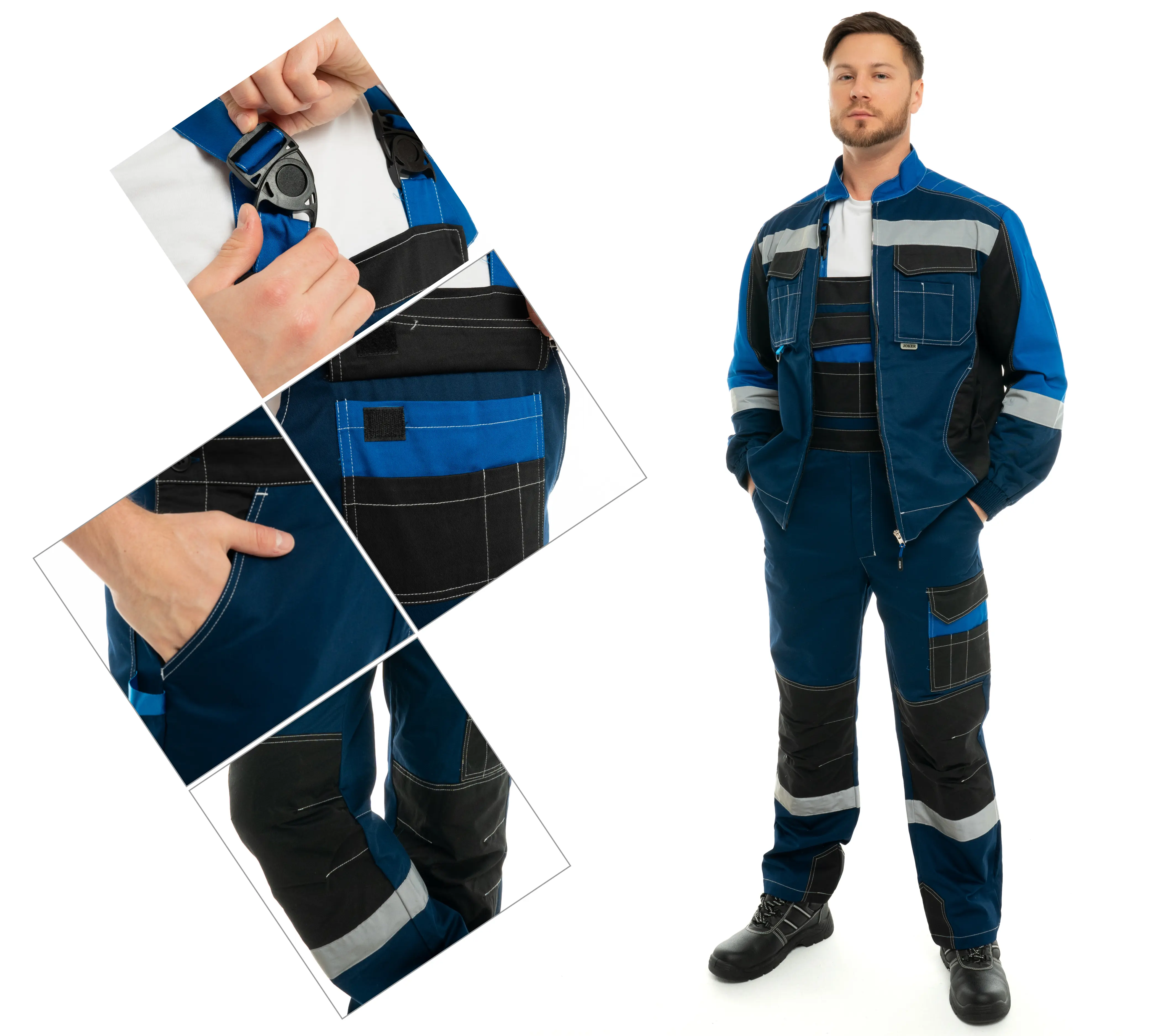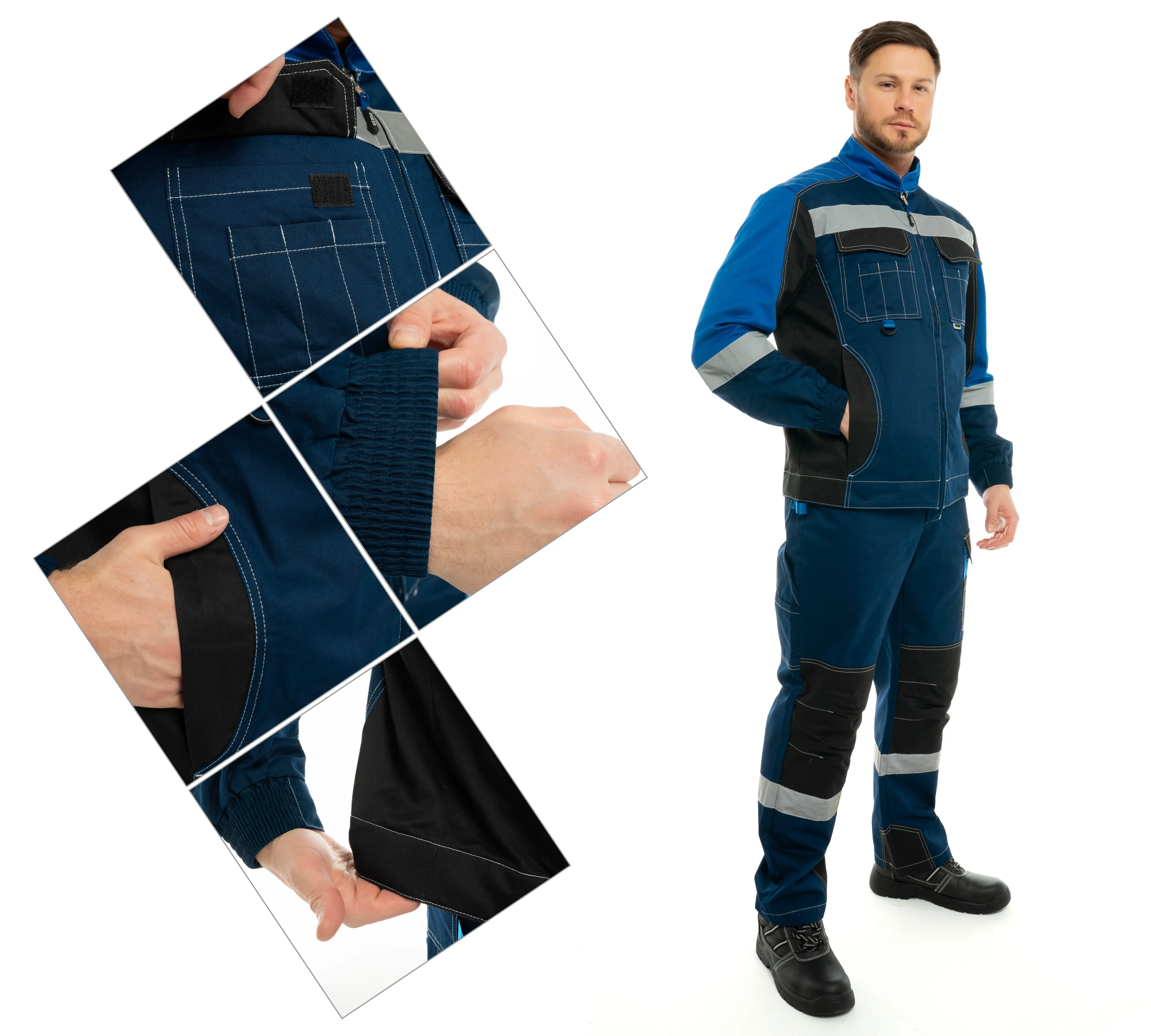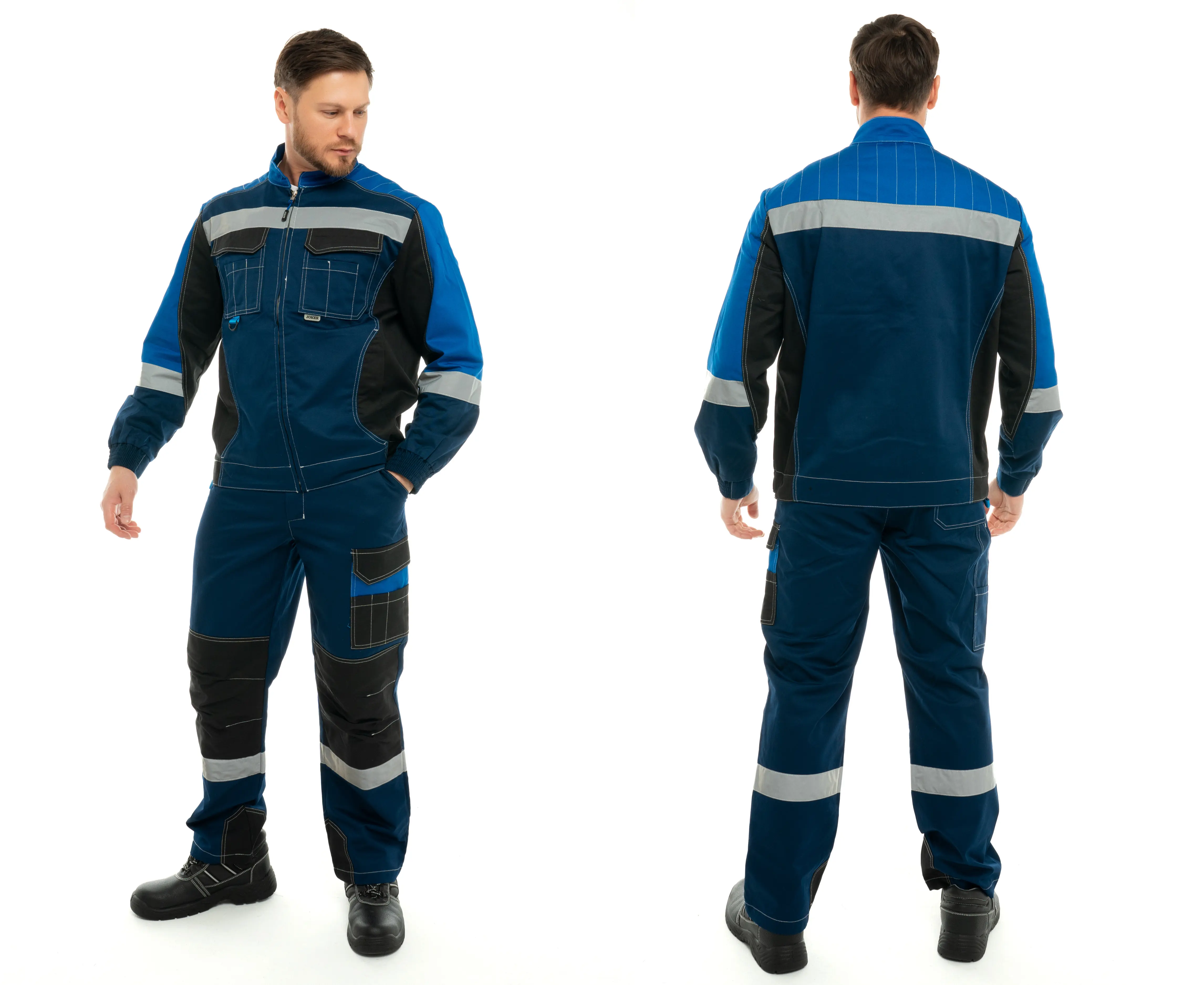 Костюм из ткани с масловодоотталкивающей отделкой, малоусадочной, дышащей, износостойкой.