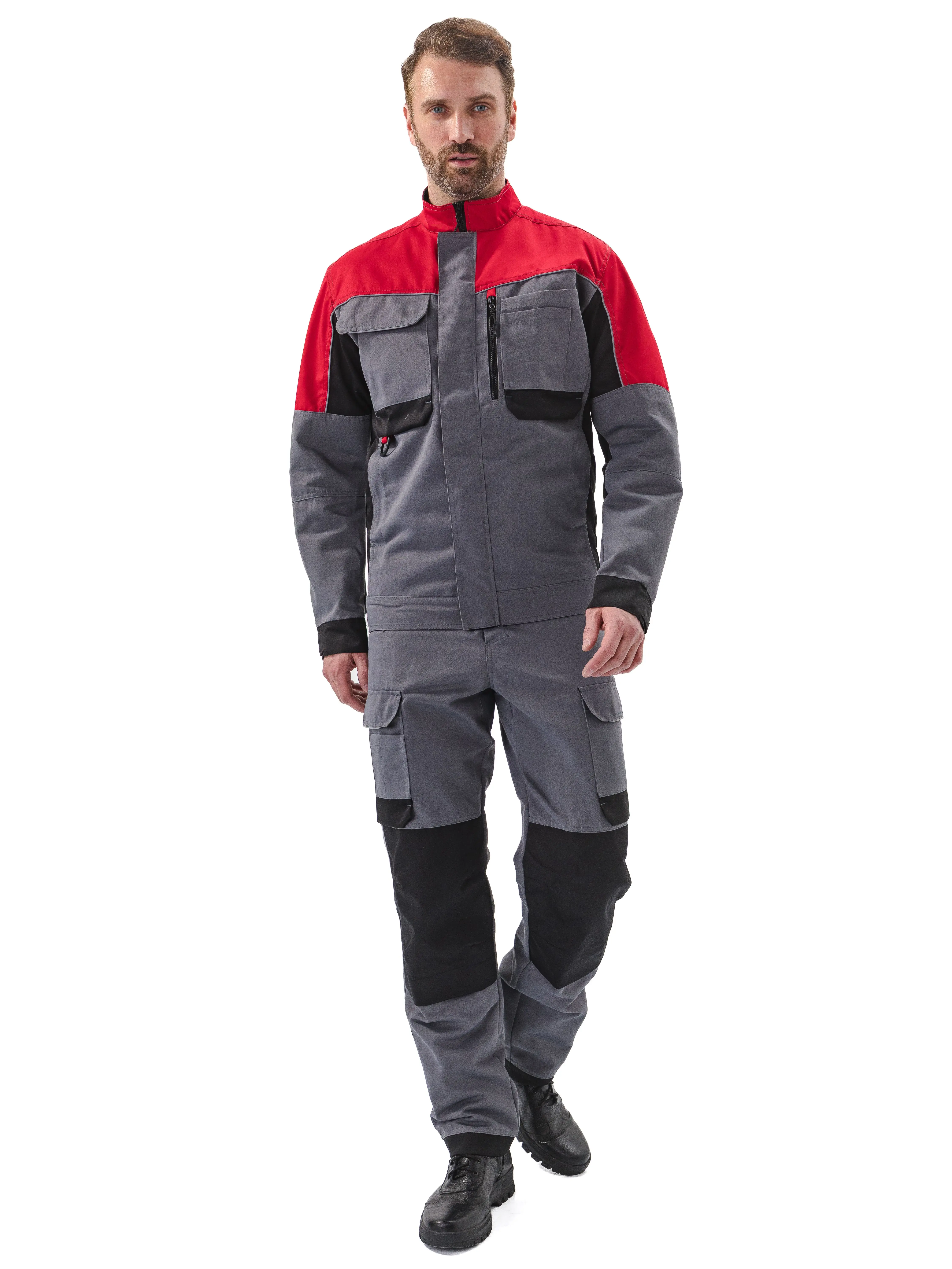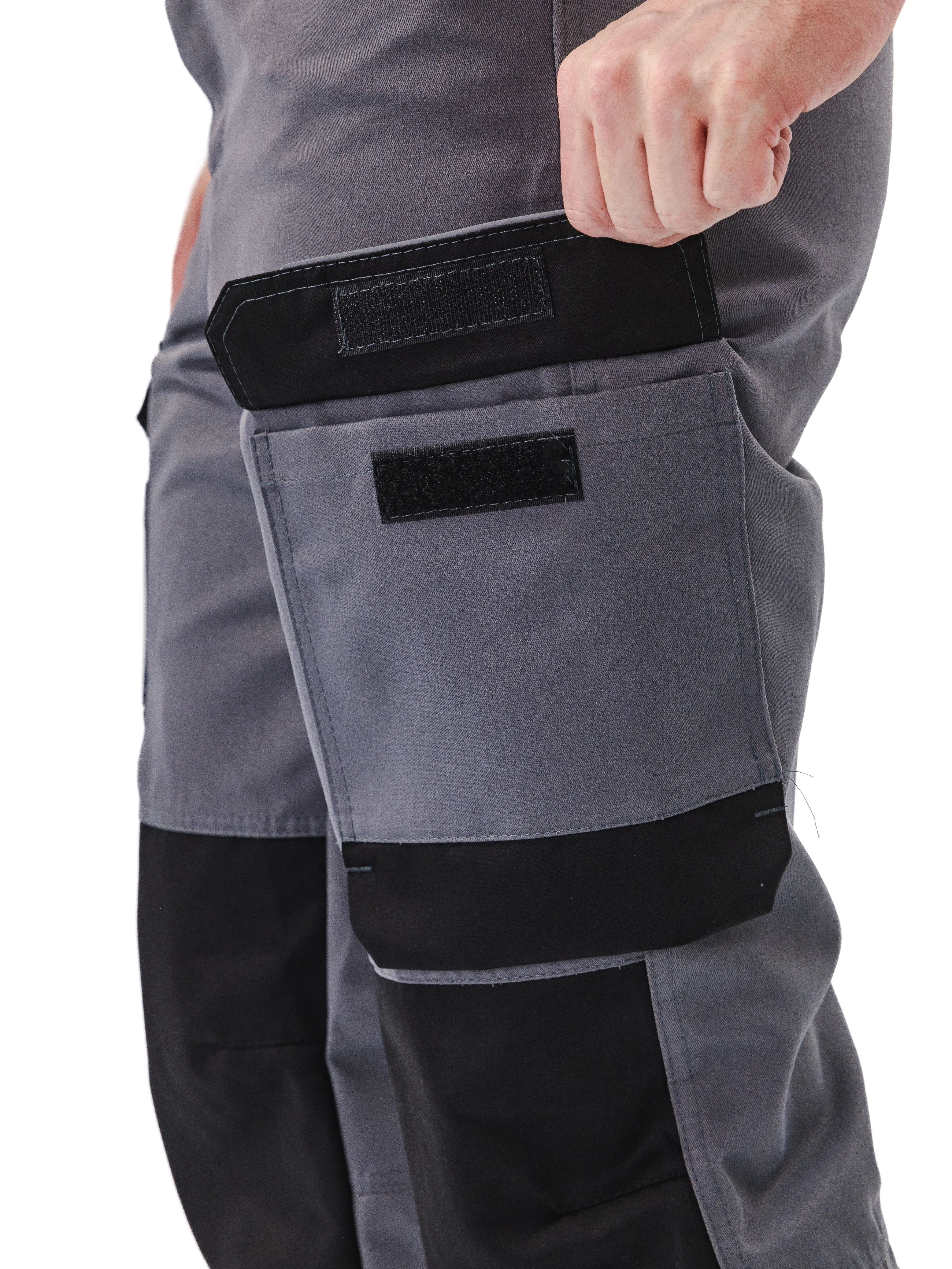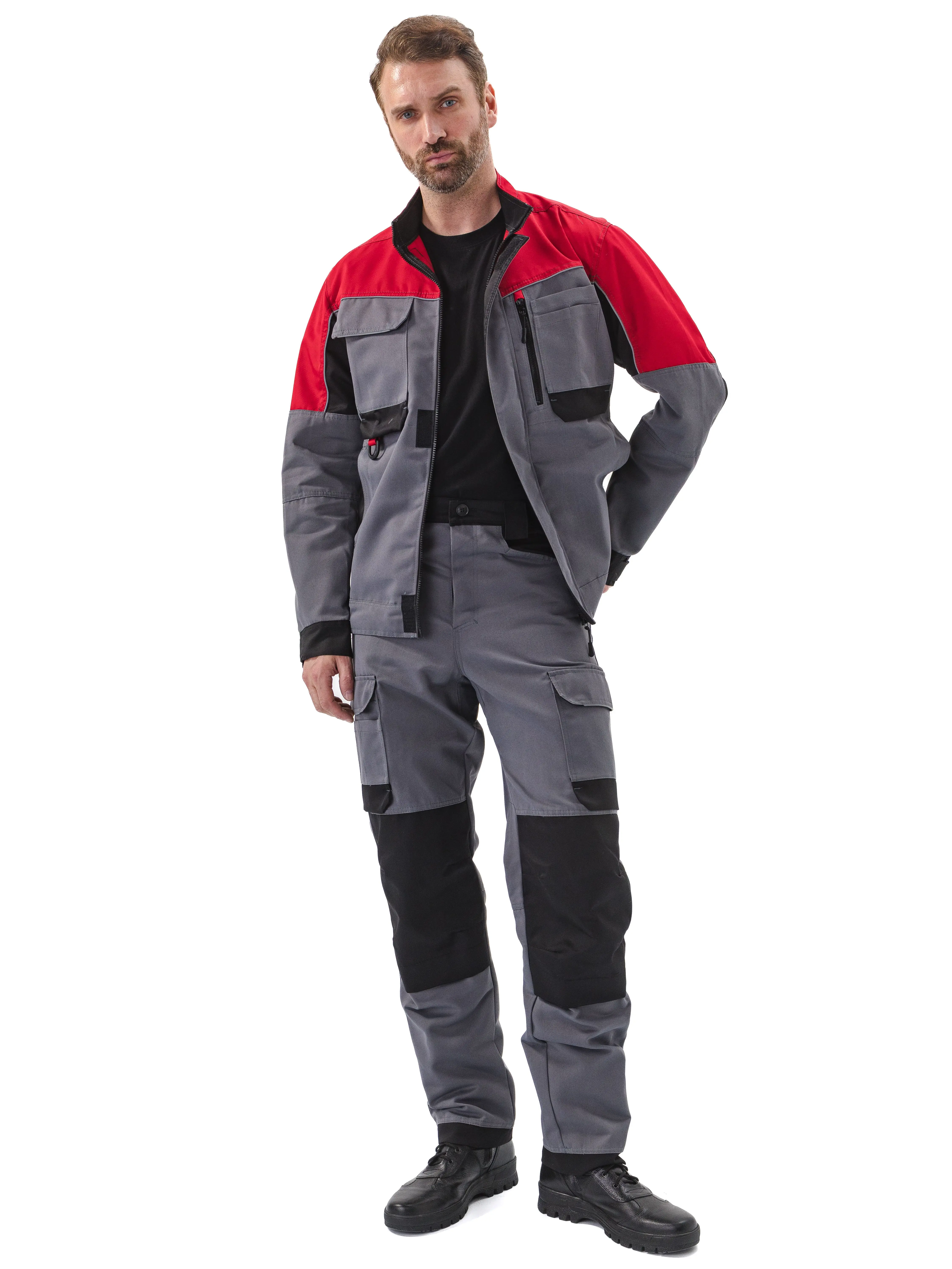 - Наколенники из отделочной ткани для установки амортизационных вкладышей (вкладыши приобретаются отдельно). Вход в карман застегивается на потайную липучку;