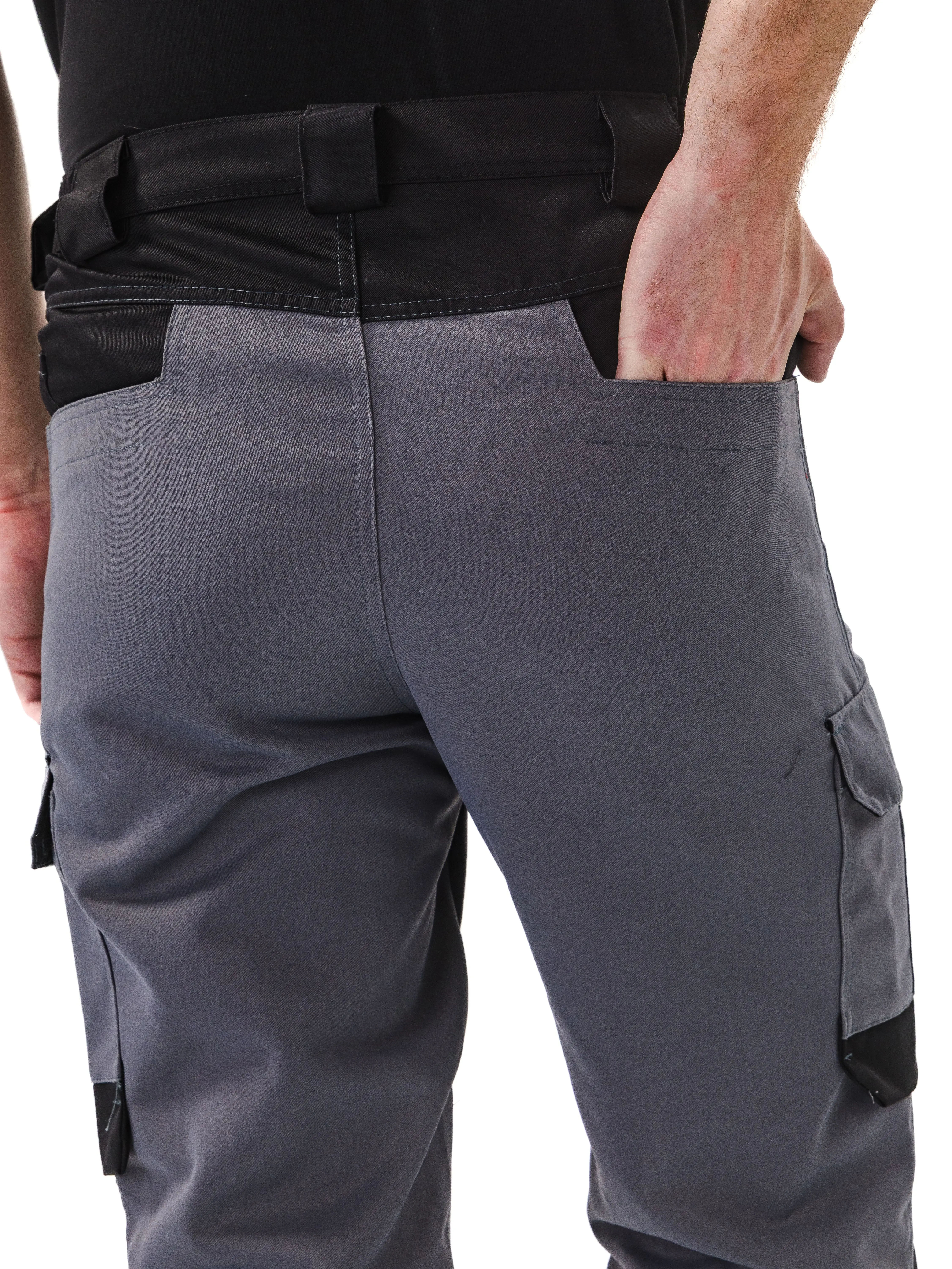 - Прямые, эргономичного кроя, с дополнительным объемом в области колена с применением вытачек и фигурной кокетки в области пояса задних половинок брюк, способствует повышенному комфорту и снижению утомляемости при работе в положении сидя;