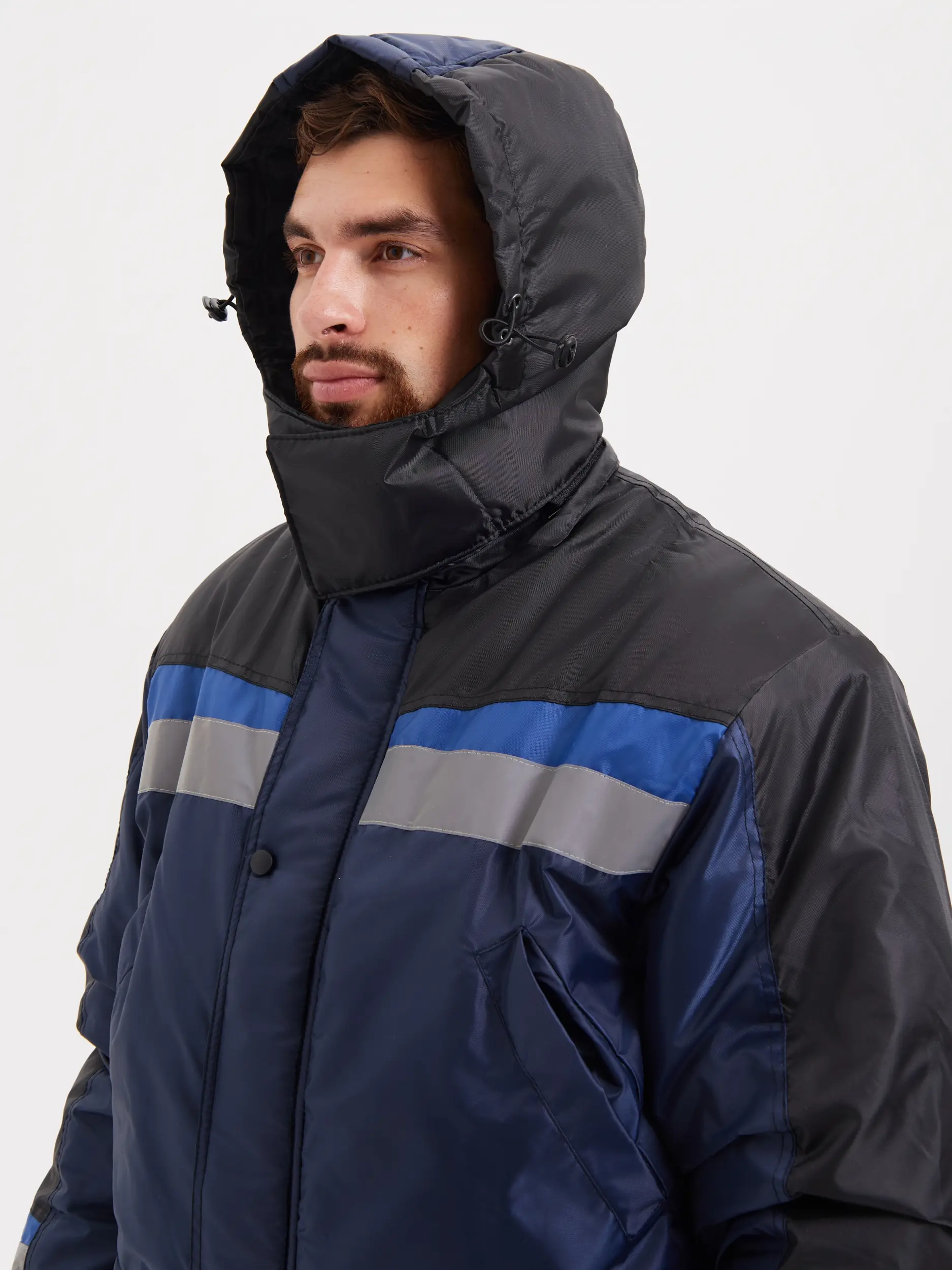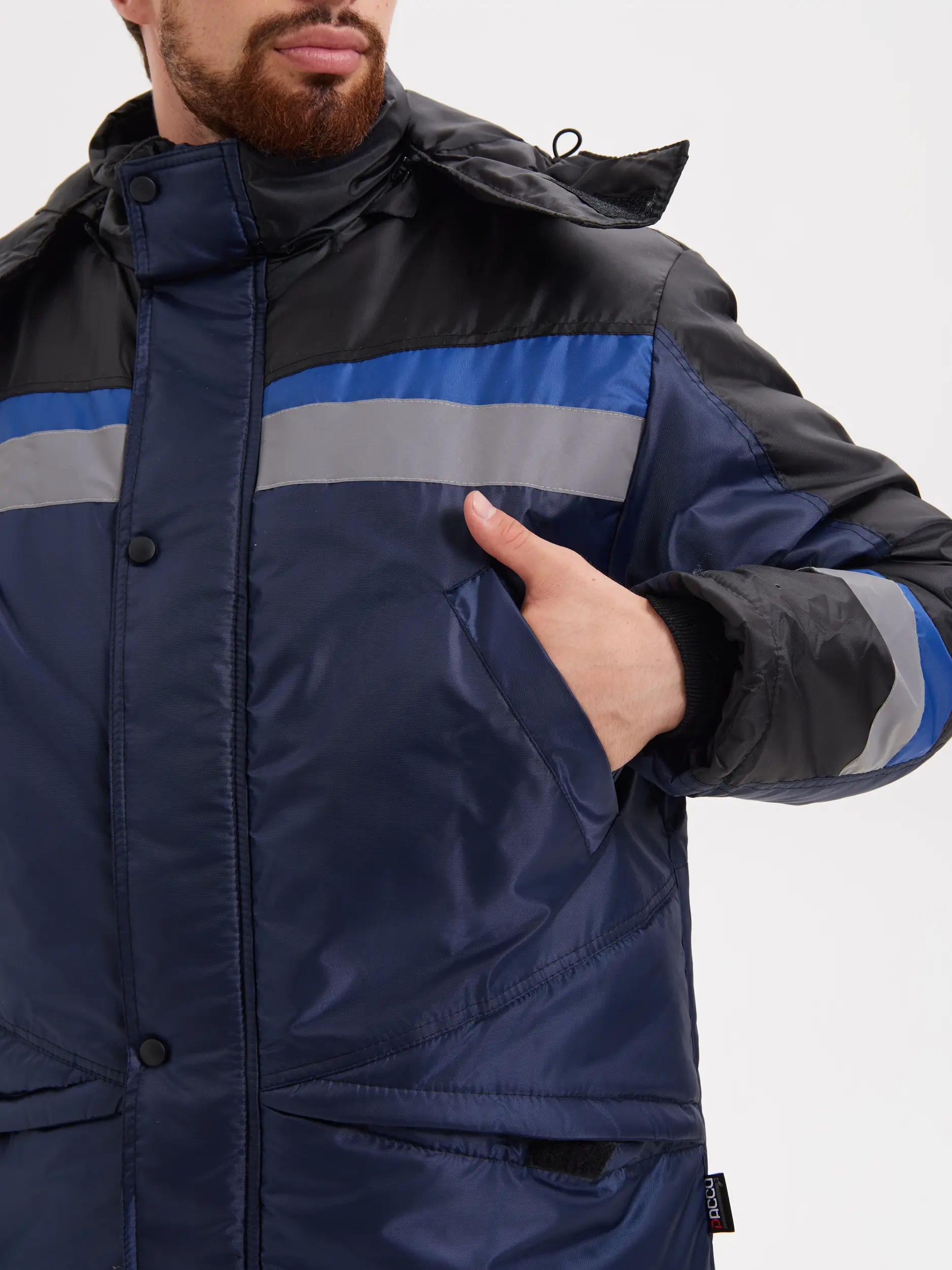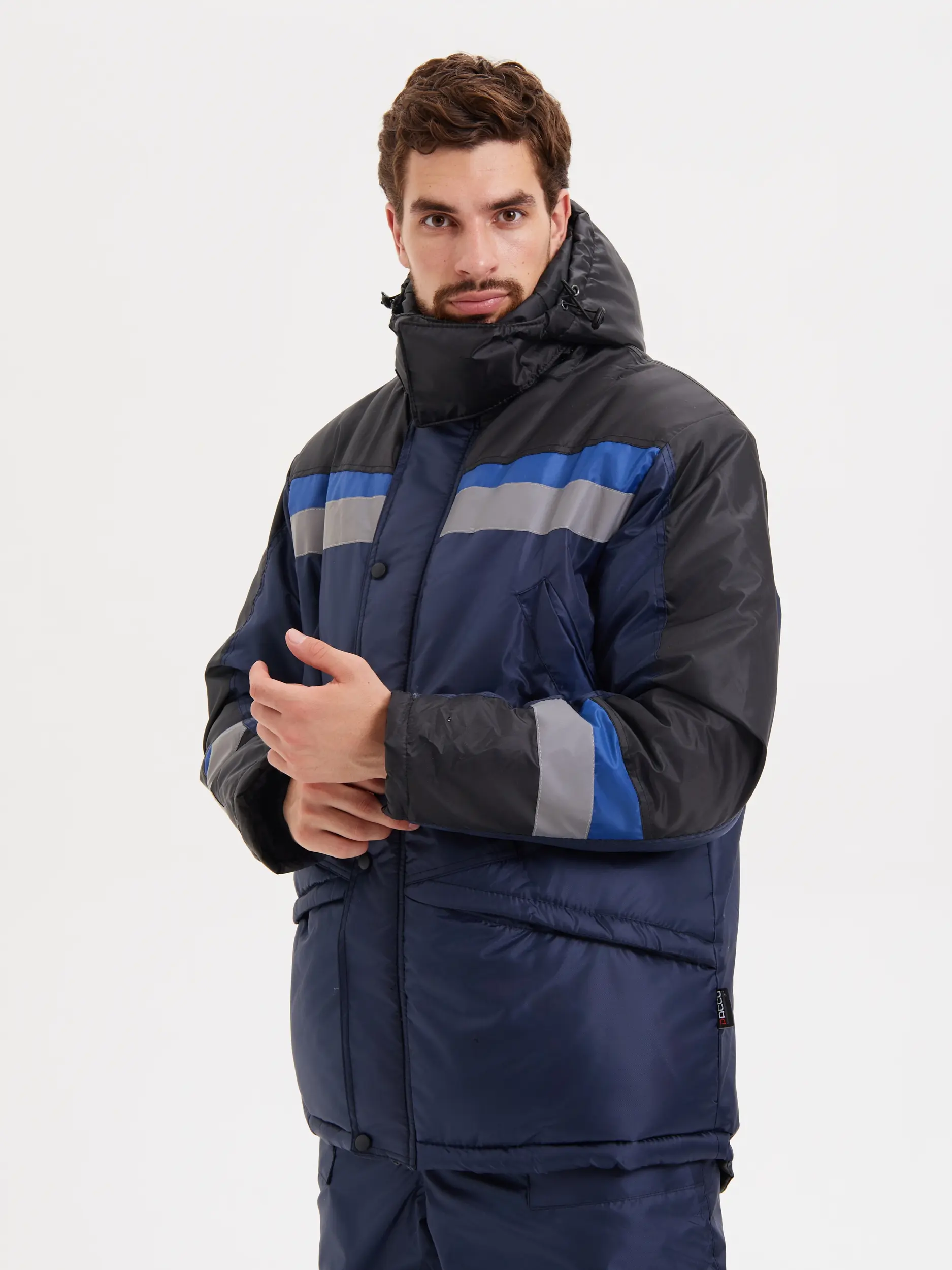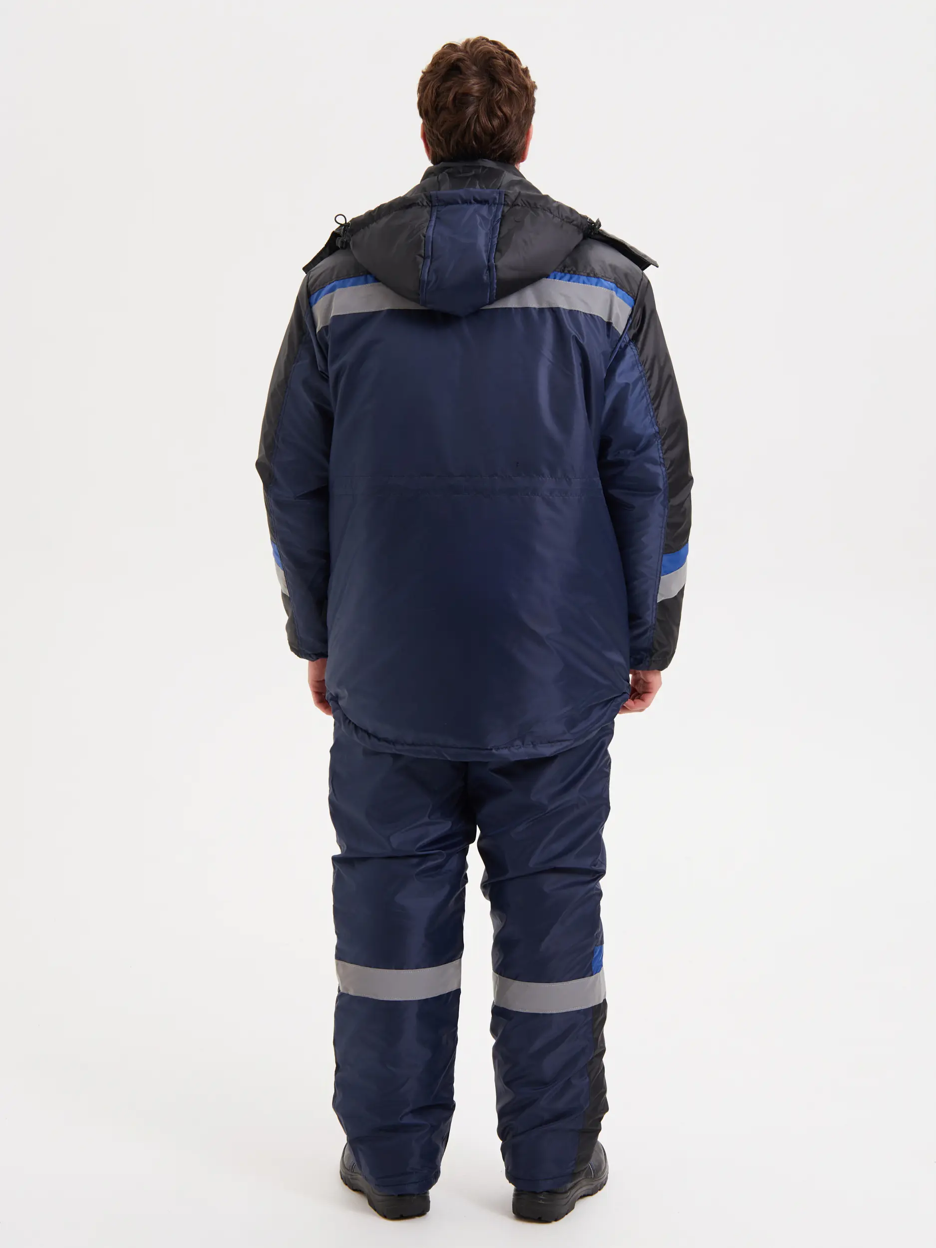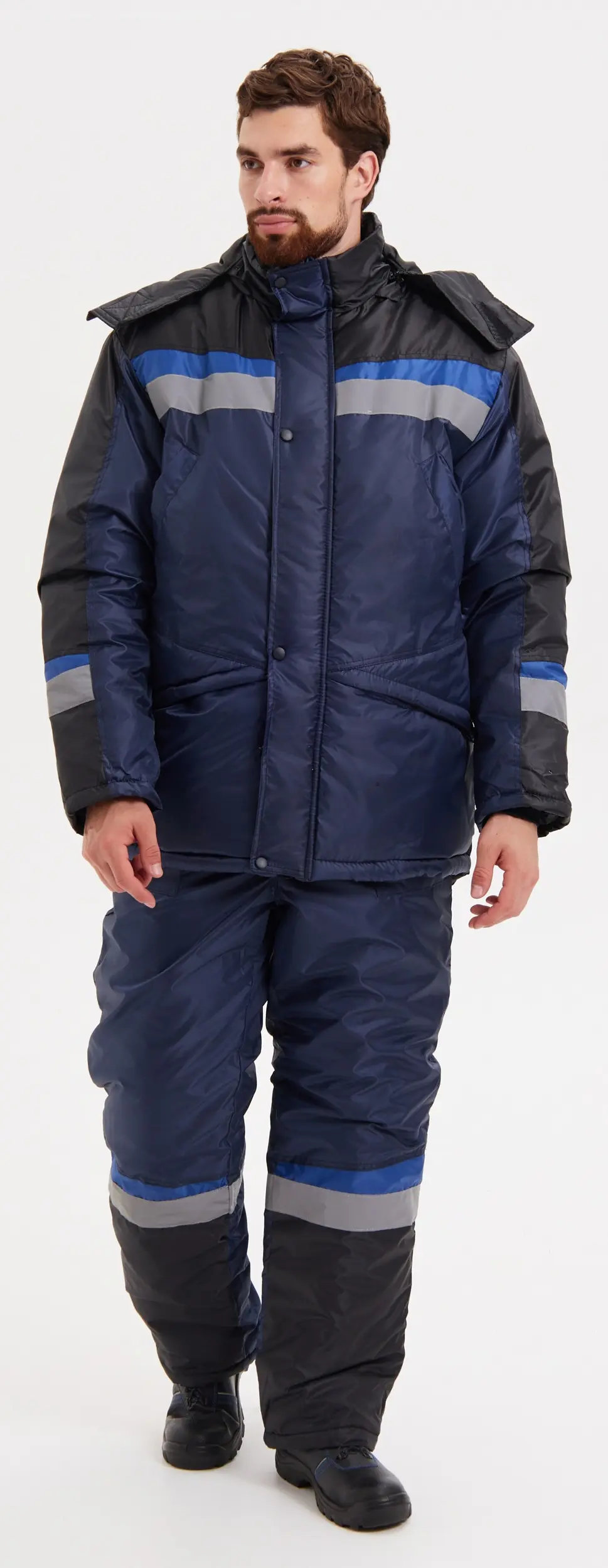 - Световозвращающие полосы 50 мм расположены на груди, спине и рукавах куртки и по низу полукомбинезона; а так же контрастные отделочные элементы.