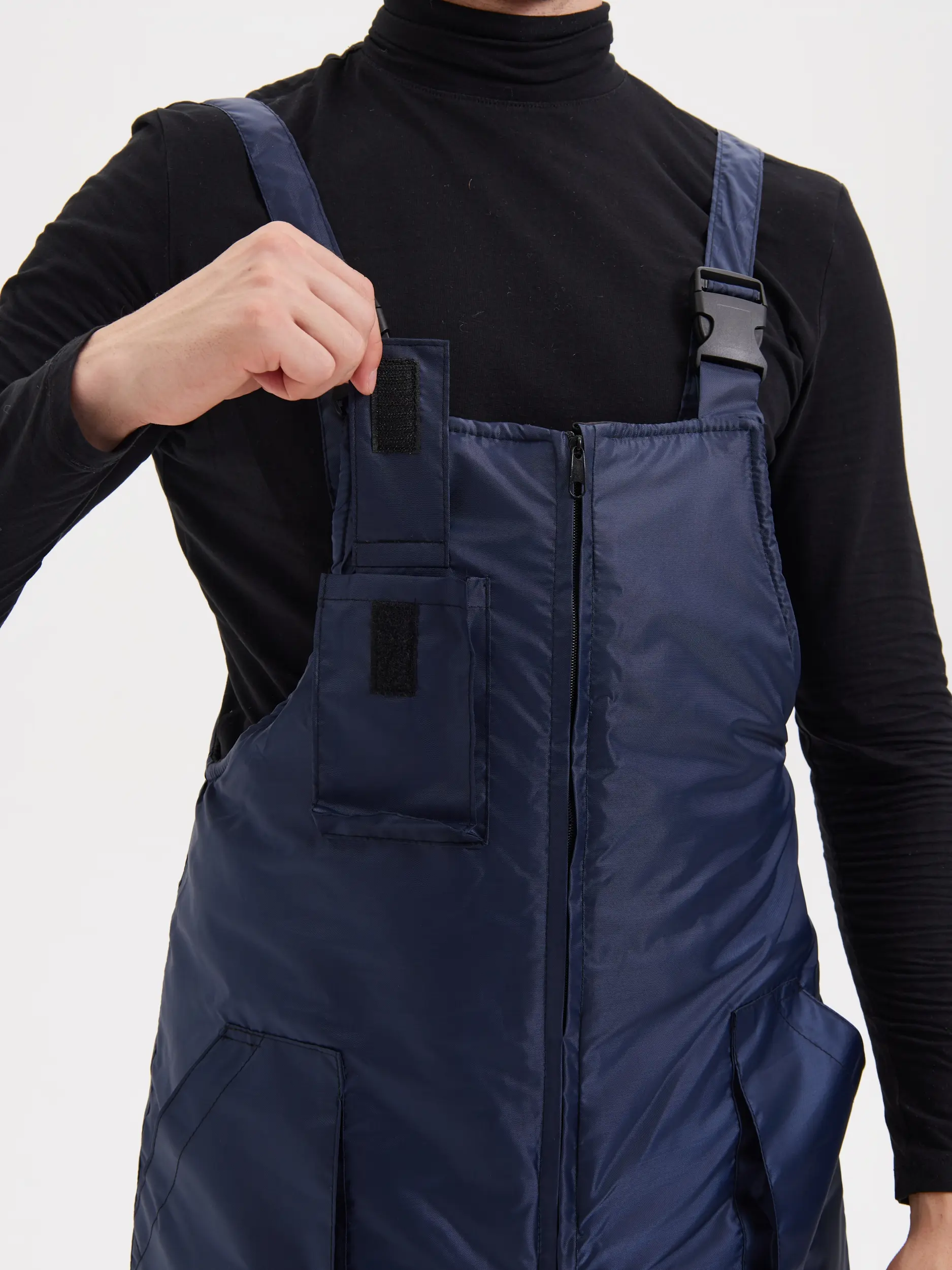 - Полукомбинезон имеет два боковых кармана и один нагрудный карман под телефон.