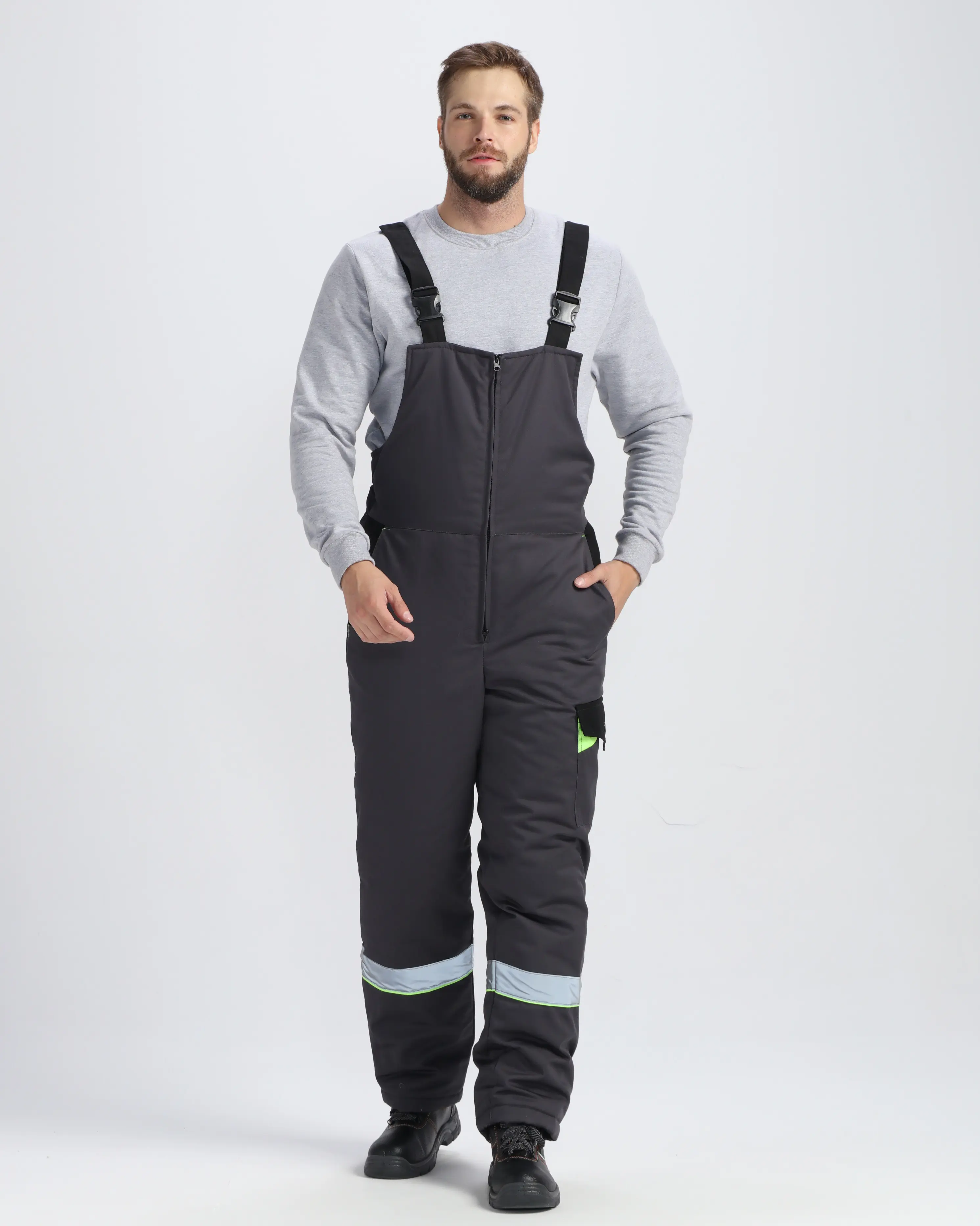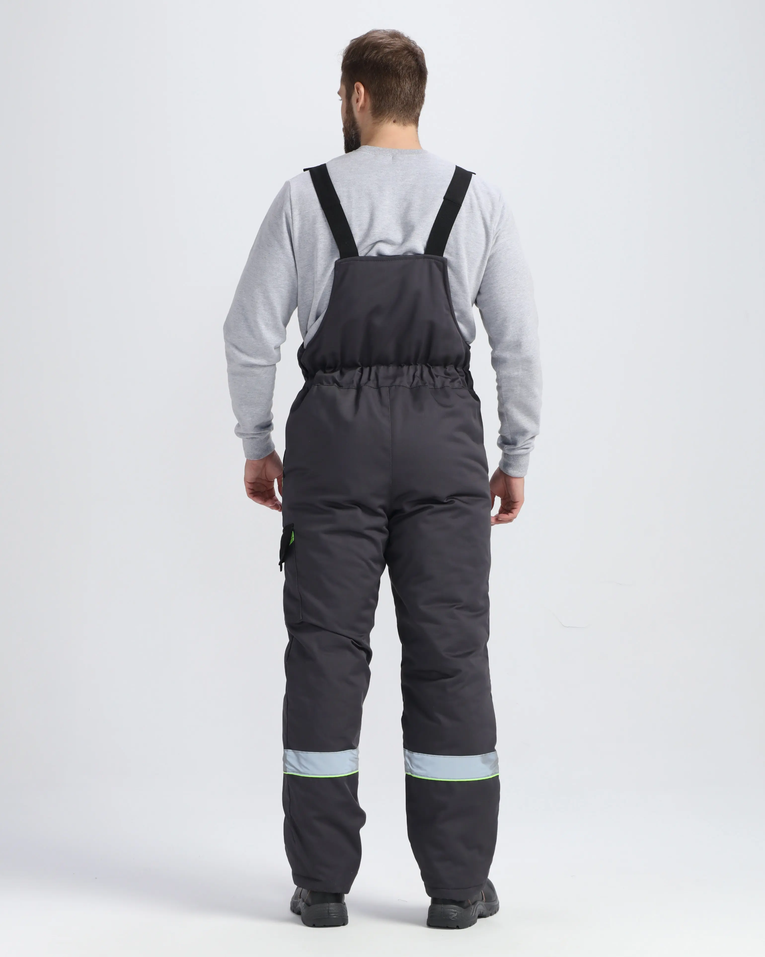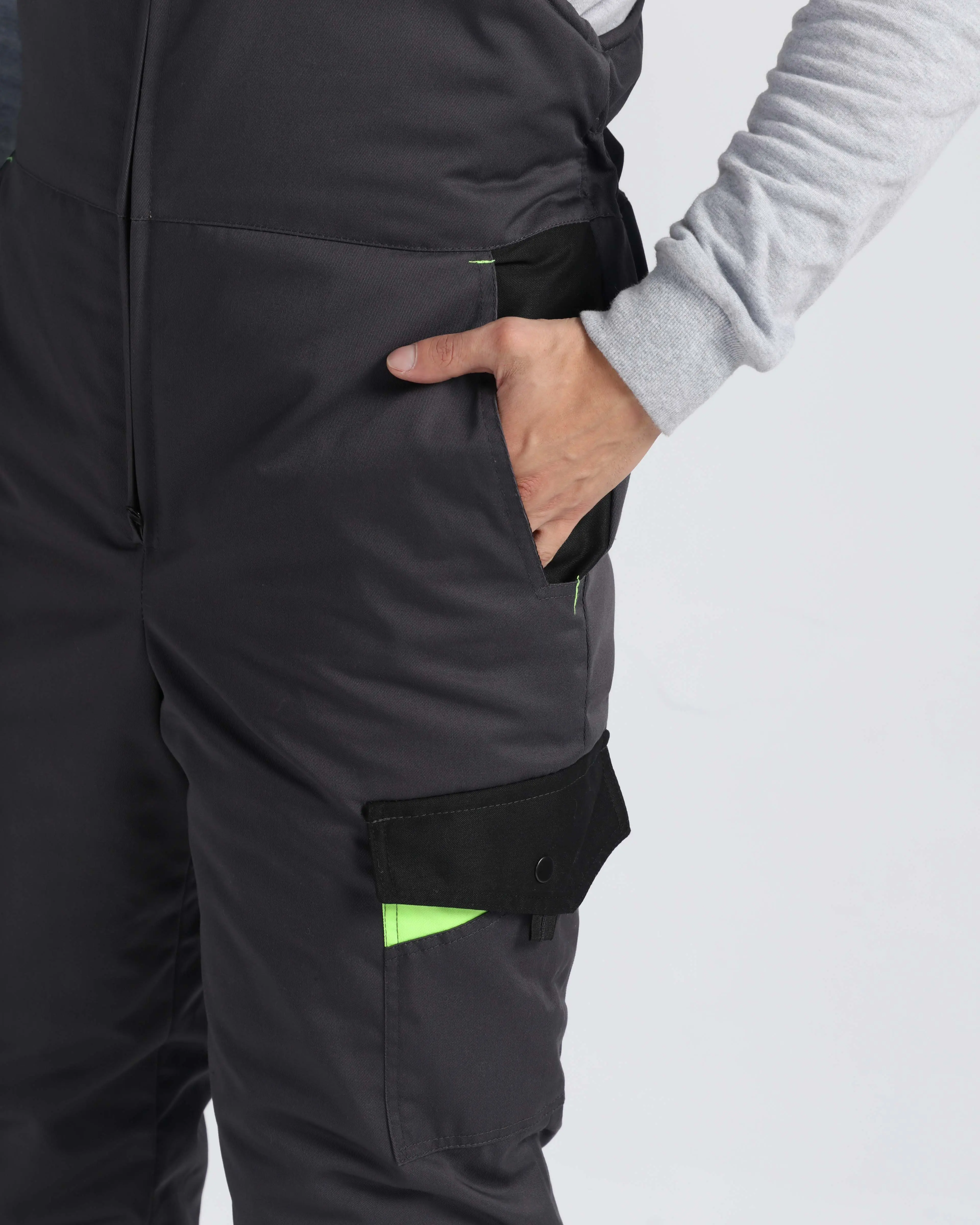 - прямого кроя, с нагрудником, с застёжкой в среднем шве передних половинок на 2-х замковую молнию;