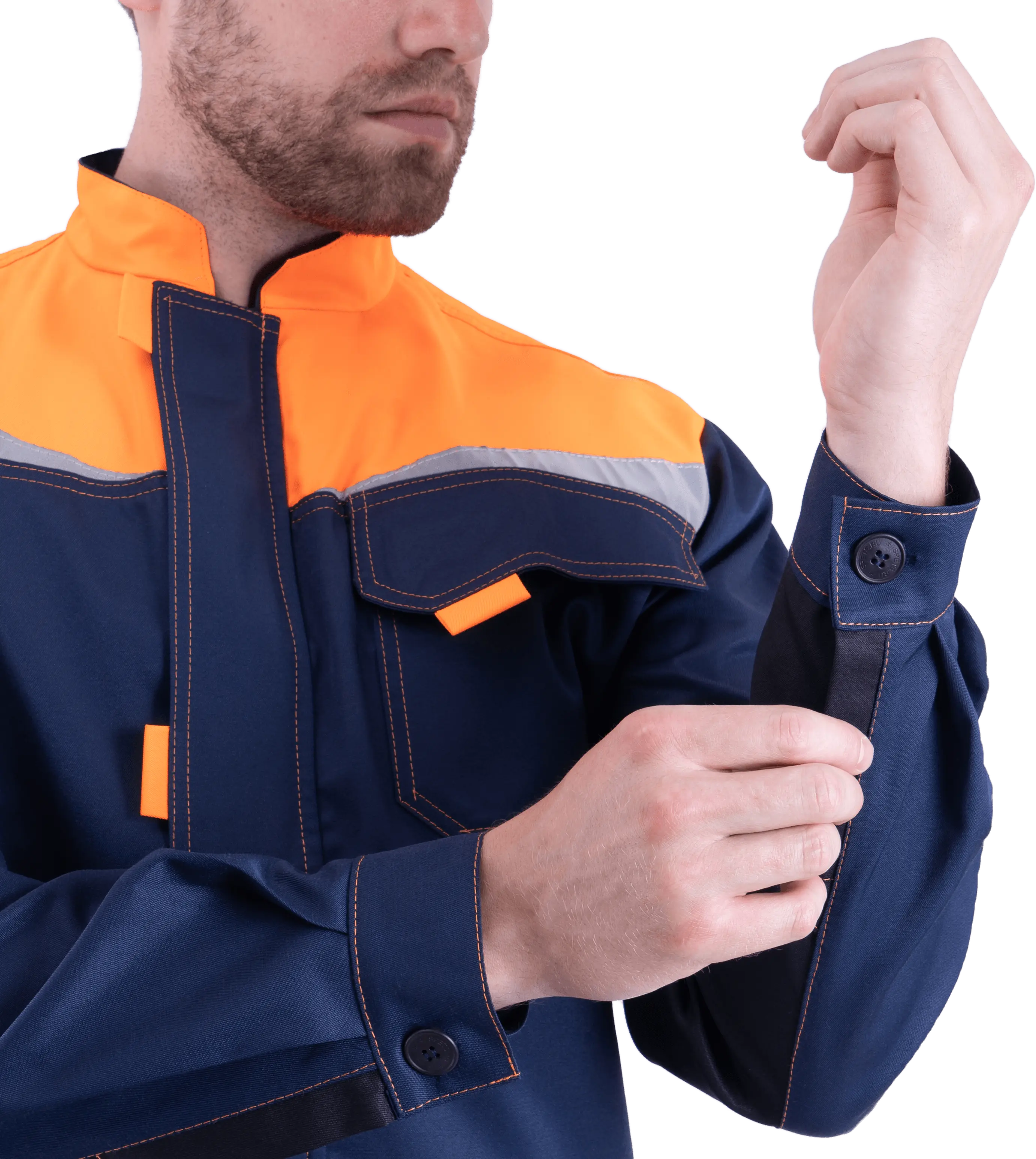 - Рукава двухшовные с вертикальными шлицами и с манжетами, застёгивающимися на пуговицы