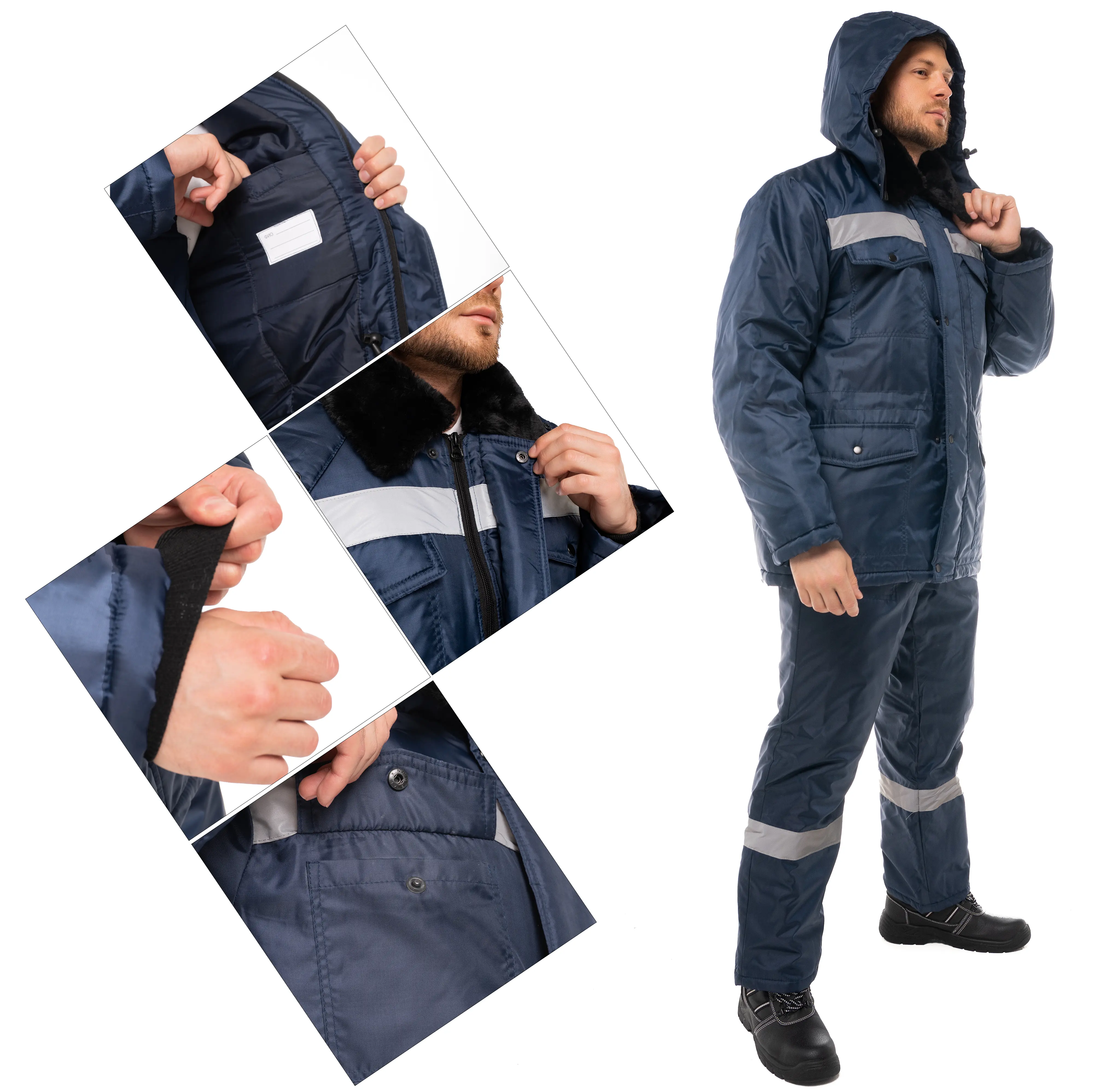 - Для безопасной работы сотрудника в местах с плохим освещением на костюме «МАСТЕР ОКСФОРД» предусмотрена световозвращающая полоса шириной 50 мм.