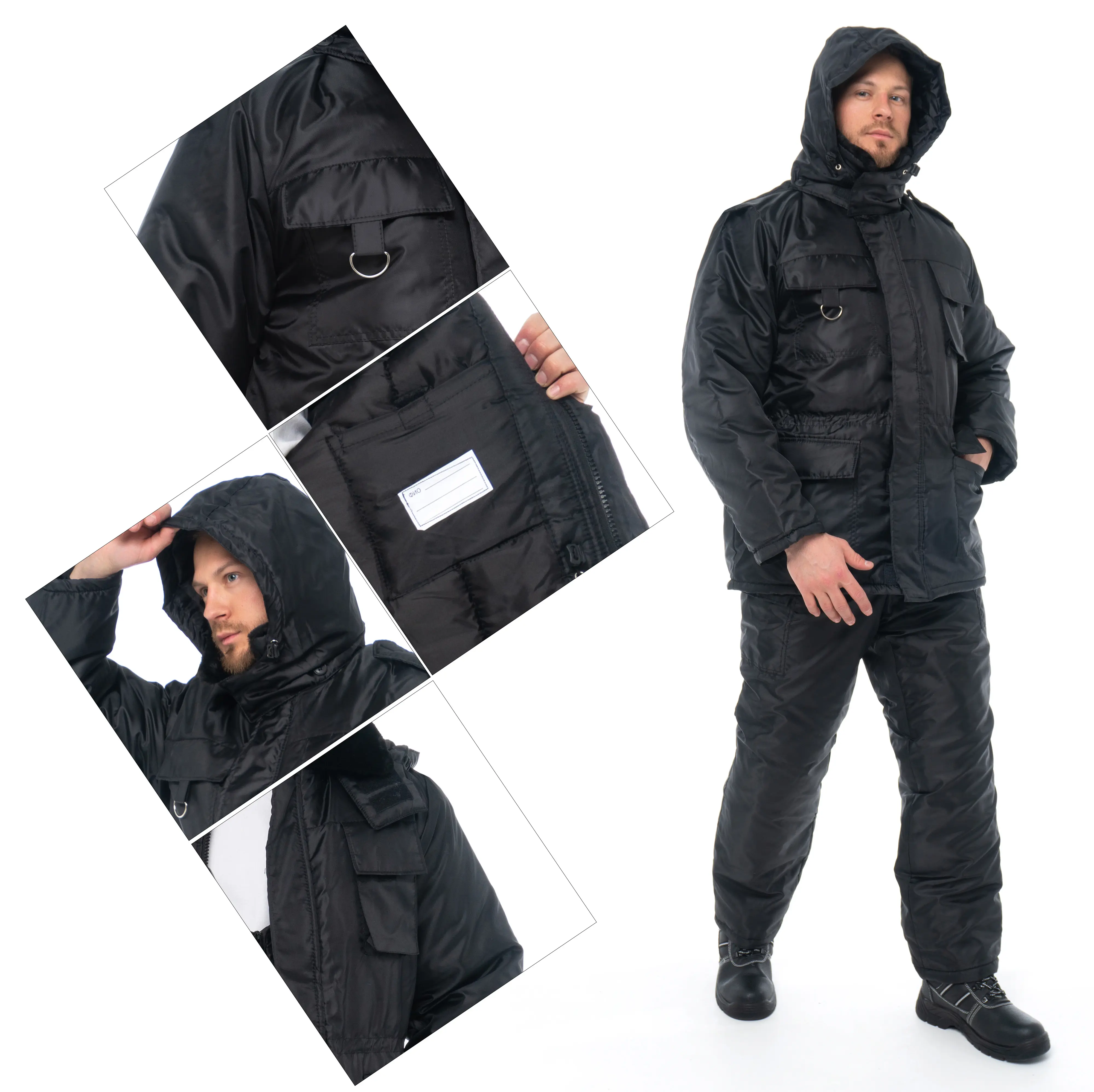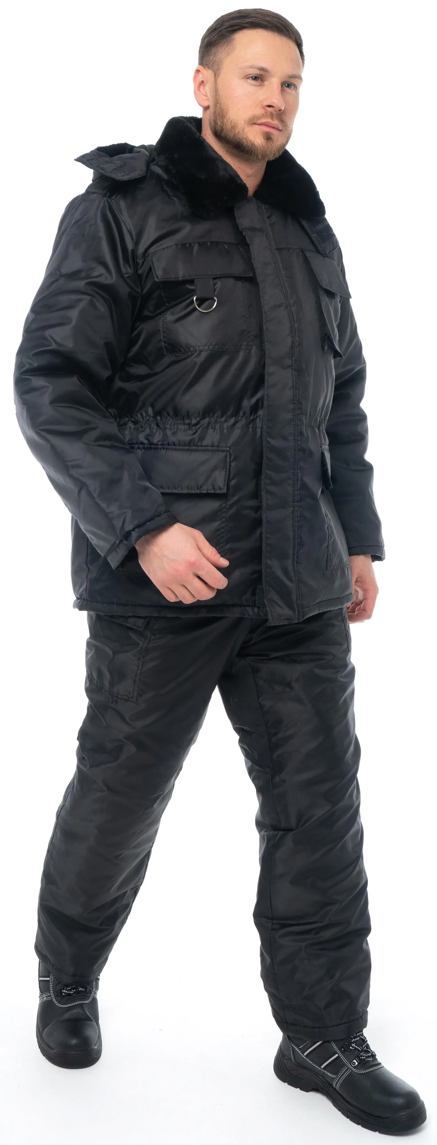 Костюм утепленный "ОХРАННИК" черного цвета - это надежная и комфортная защита от холода и ветра во время работы на улице. Этот костюм идеально подходит для охранников, строителей, рабочих и др. профессионалов
