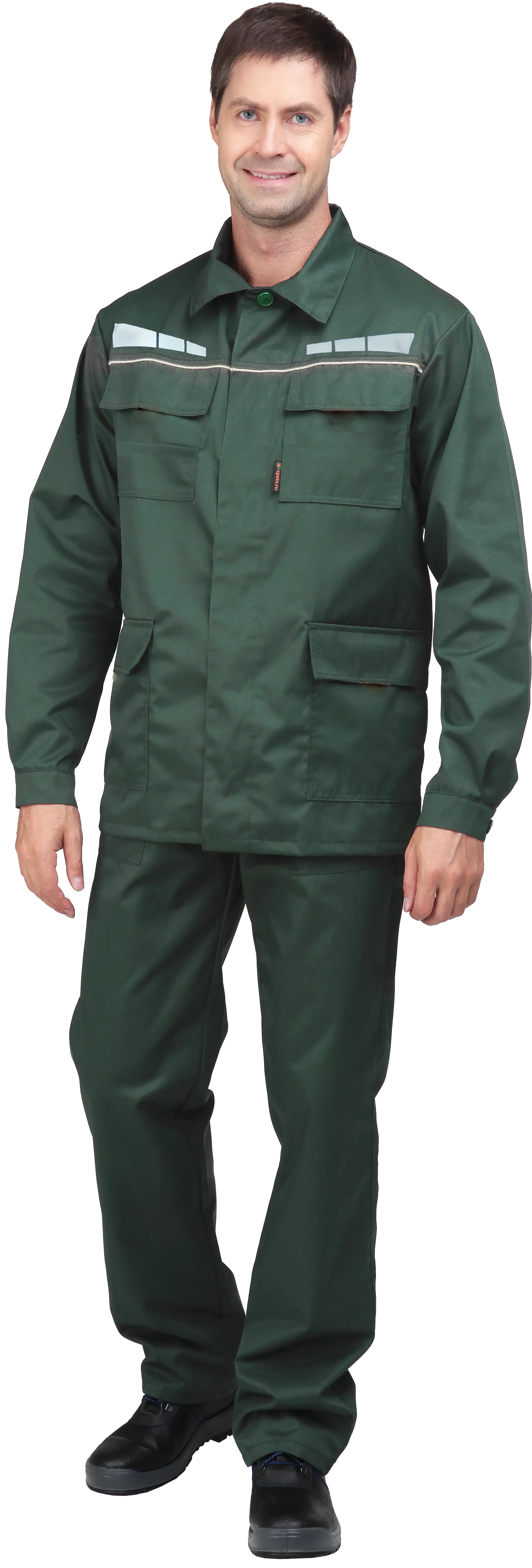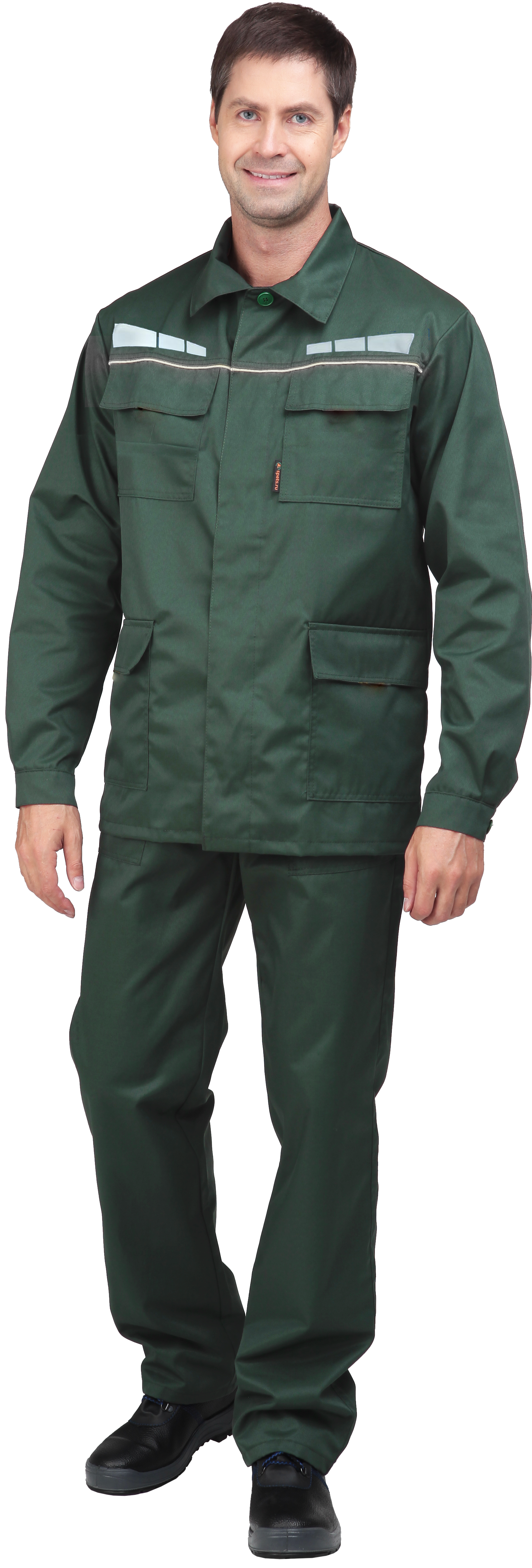 - боковые накладные карманы с наклонным входом, задний накладной карман на правой половинке брюк