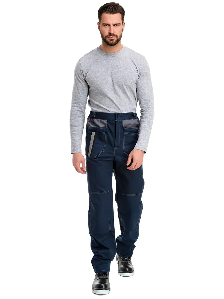 - Брюки на поясе с передними боковыми карманами, задним накладным карманом и карманом под инструменты.