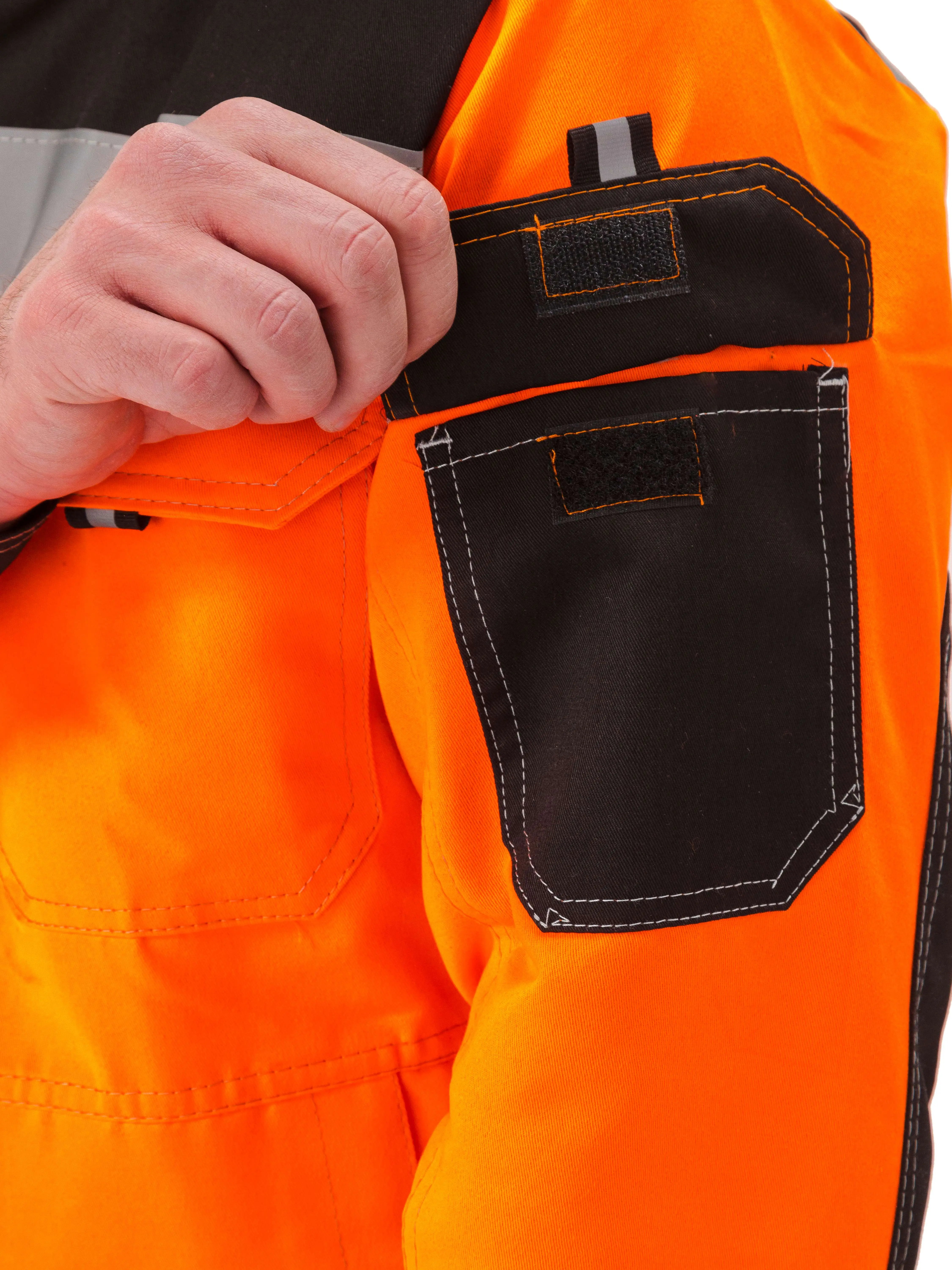 - Рукава с манжетами, застёгивающимися на липучки, на левом рукаве накладной карман с клапаном на липучке;