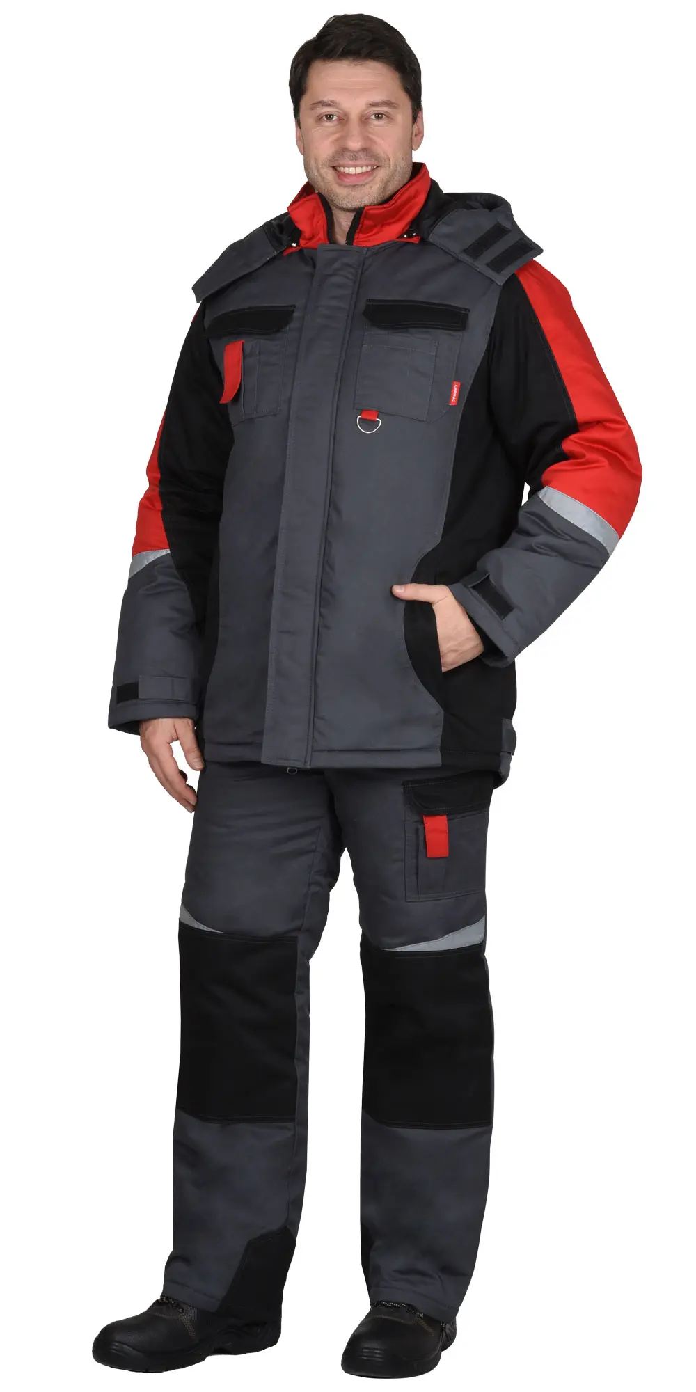 - Ткань верха: полиэфирнохлопковая (смешанная) водоотталкивающая (ВО) пл.215 г/кв.м состав 65% п/э 35% х/б, цвет темно-серый