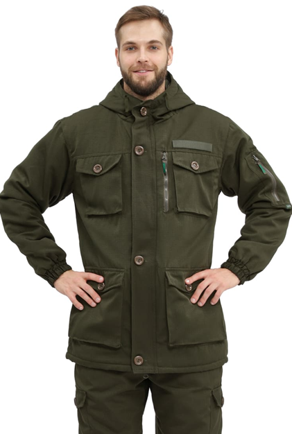 - Верхние и нижние накладные объёмные карманы с клапанами, застёгивающиеся на пуговицах канадках