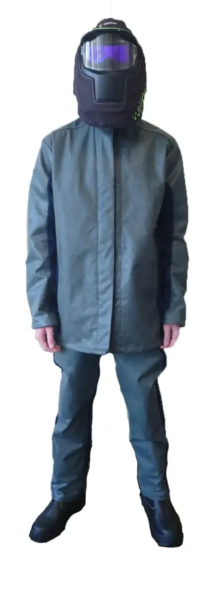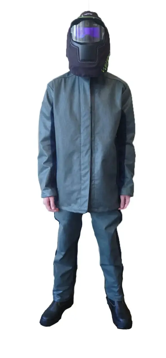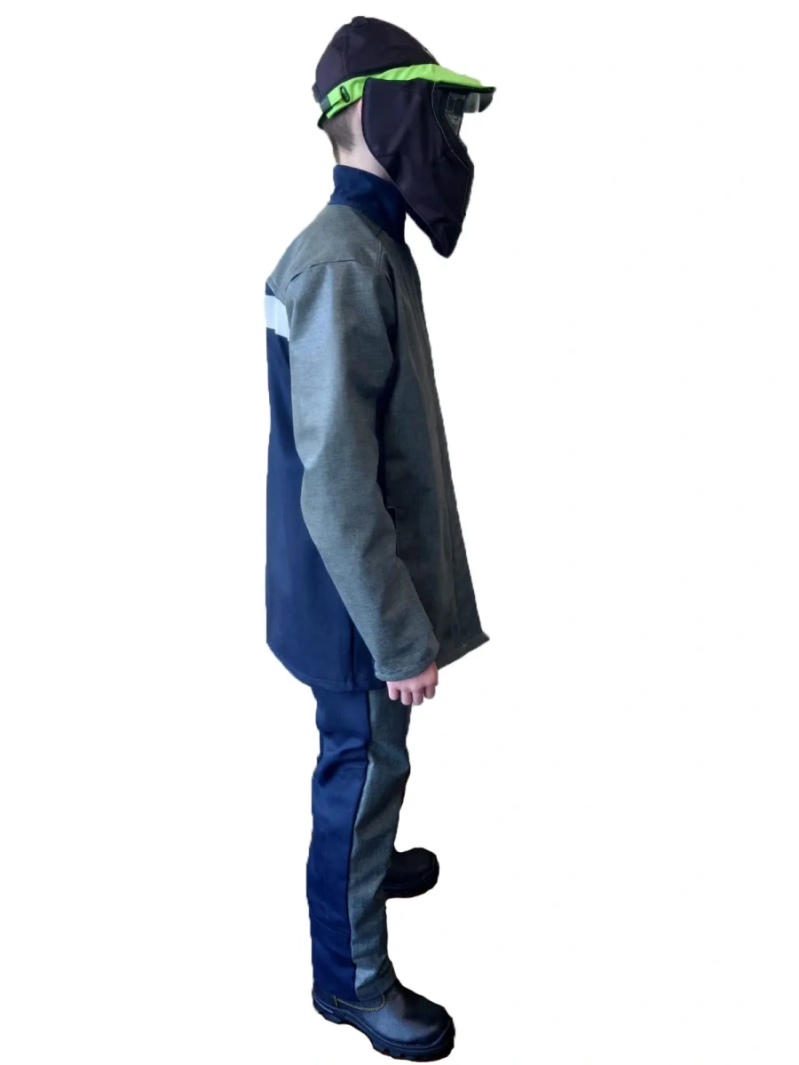Костюм сварщика х/б с огнестойкой отделкой и с силиконизированными накладками ,тип защитной одежды – класс 3. Весь костюм, включая внутренние швы прошит огнеупорными нитками в цвет изделия. Накладки из ткани из огнестойких параарамидных волокон с силиниконизированным покрытием распологаются на передних половинках брюк от начала шаговых швов до низа брюк.