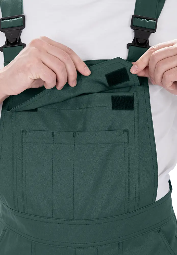 - накладной карман на нагруднике с дополнительным карманом, разделенным на секции, и клапаном