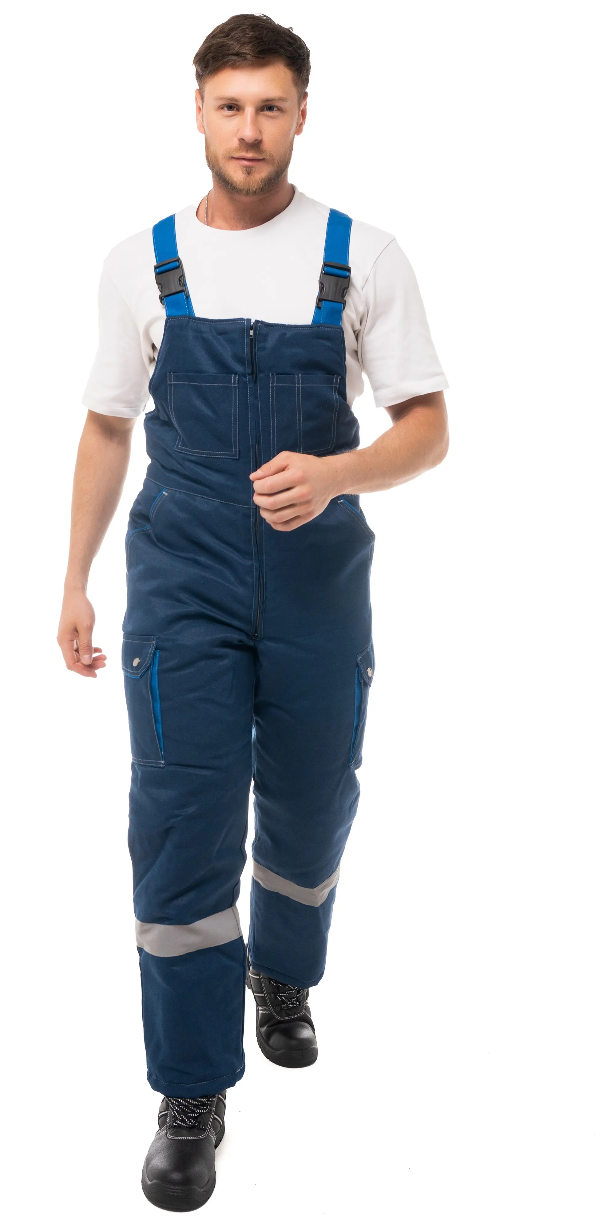 - Полукомбинезон с центральной застежкой на тесьму “молния”.