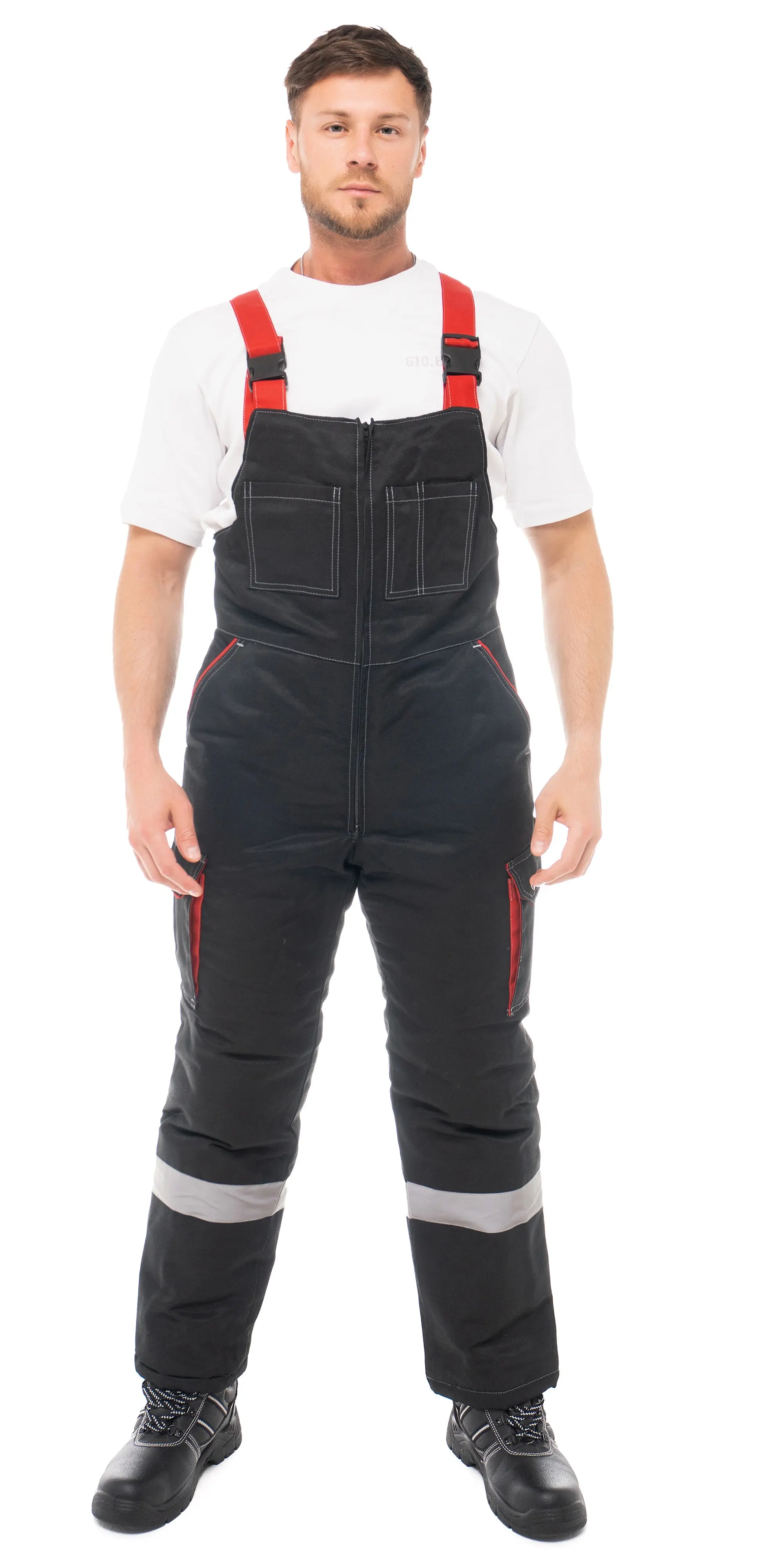 - Полукомбинезон с центральной застежкой на тесьму “молния”.