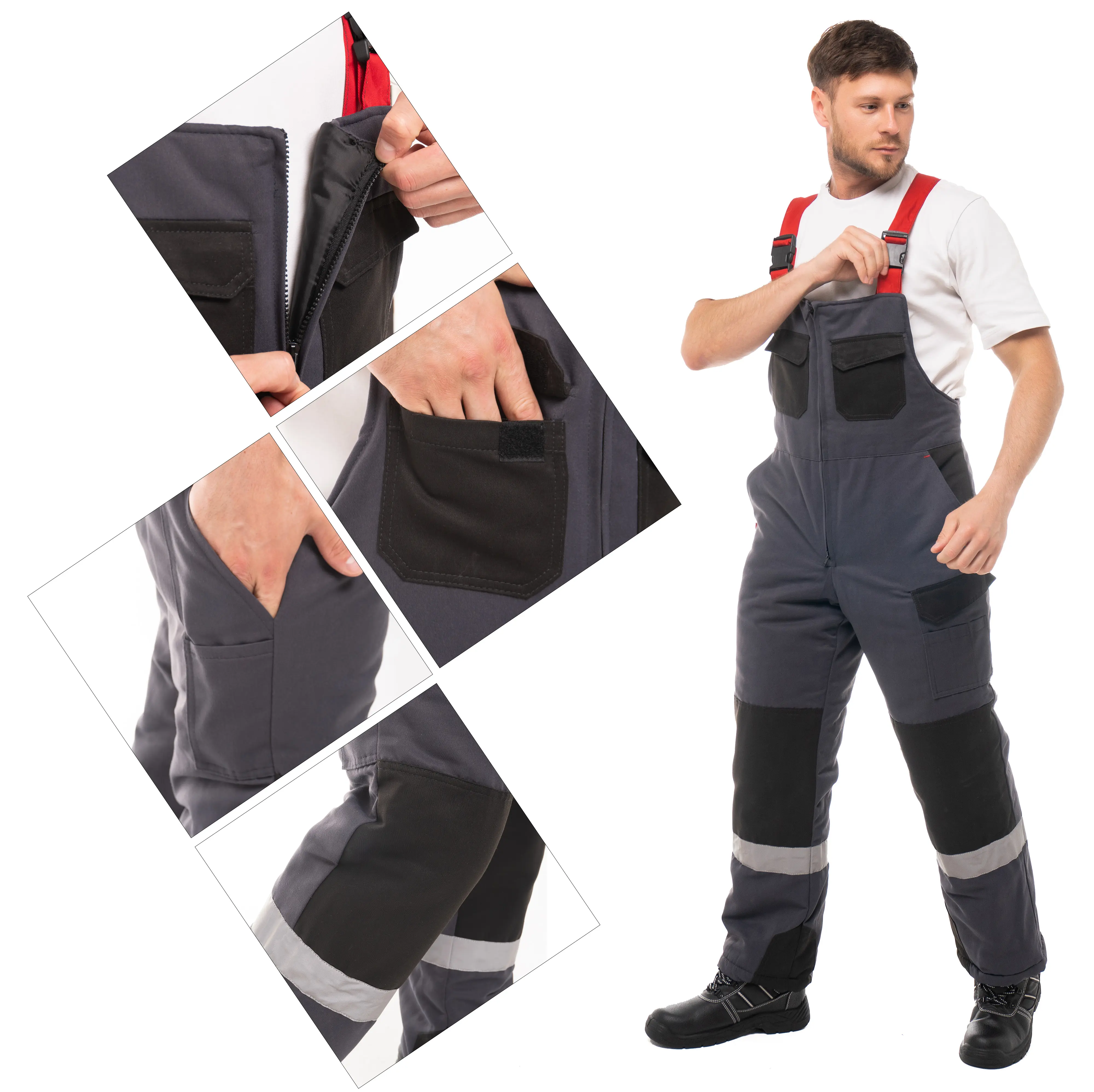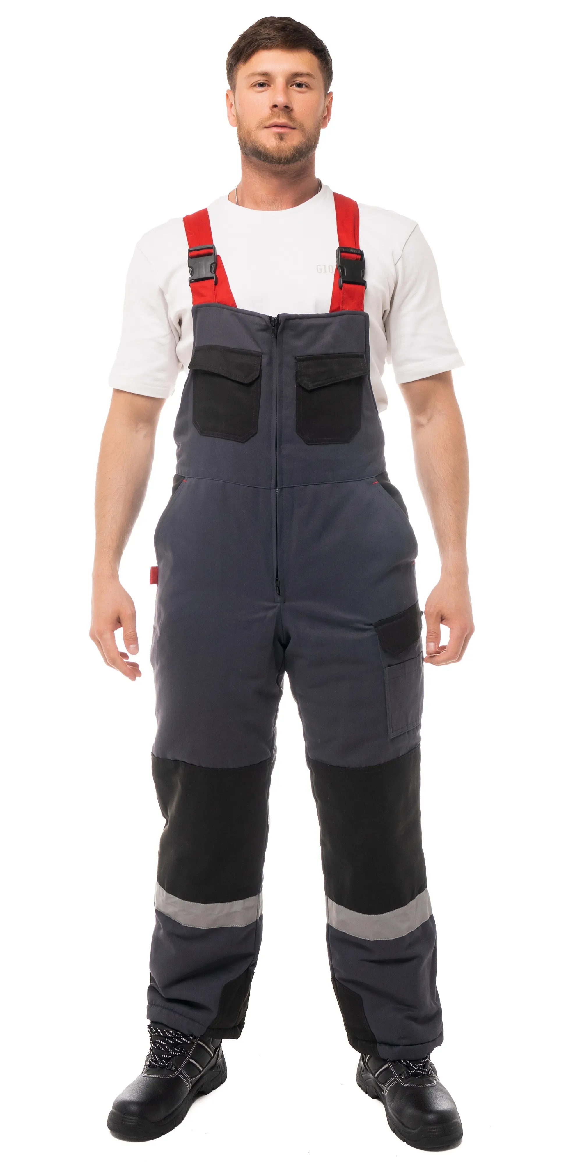 - Полукомбинезон утепленный, с центральной застежкой на тесьму “молния”.