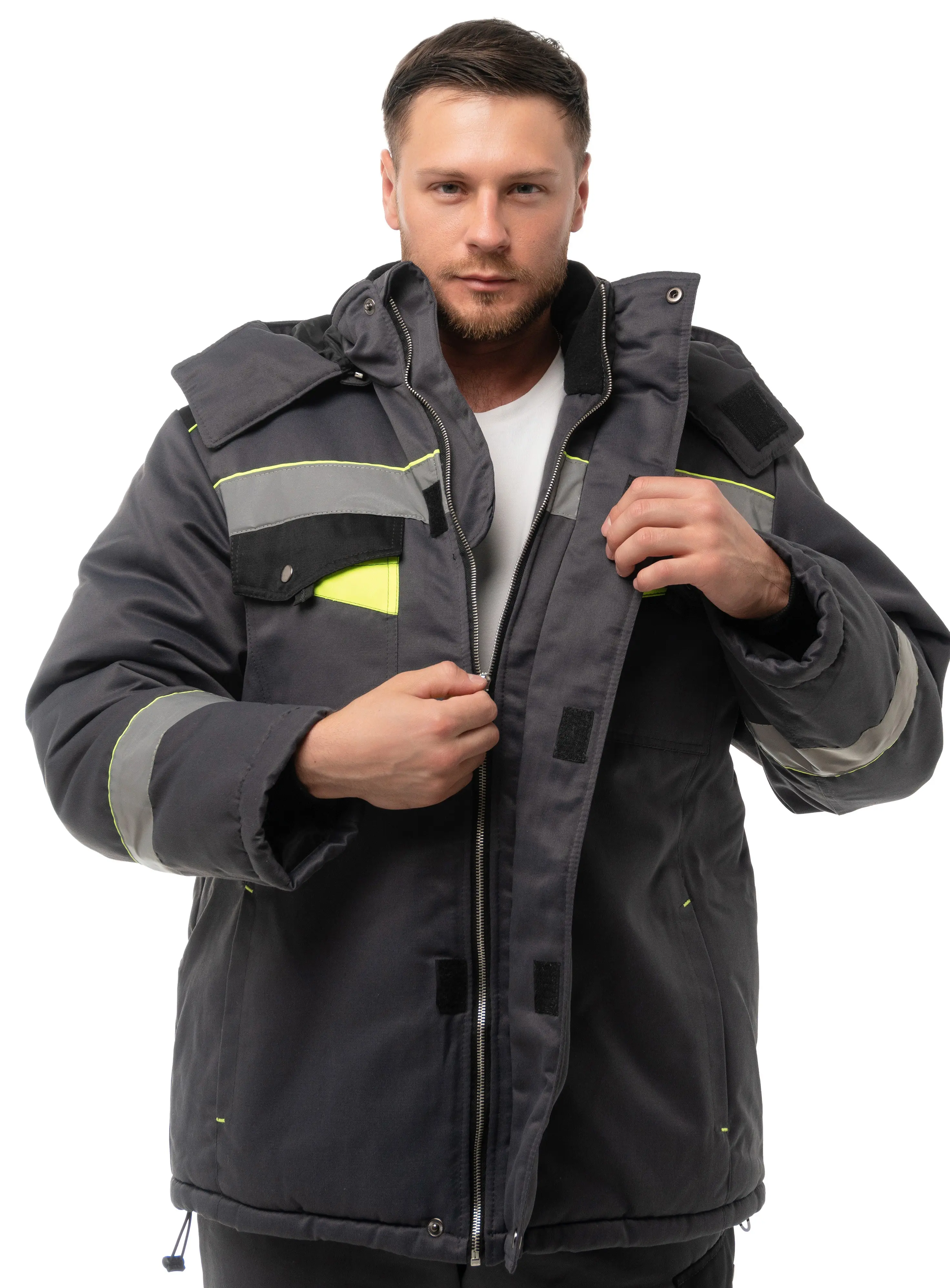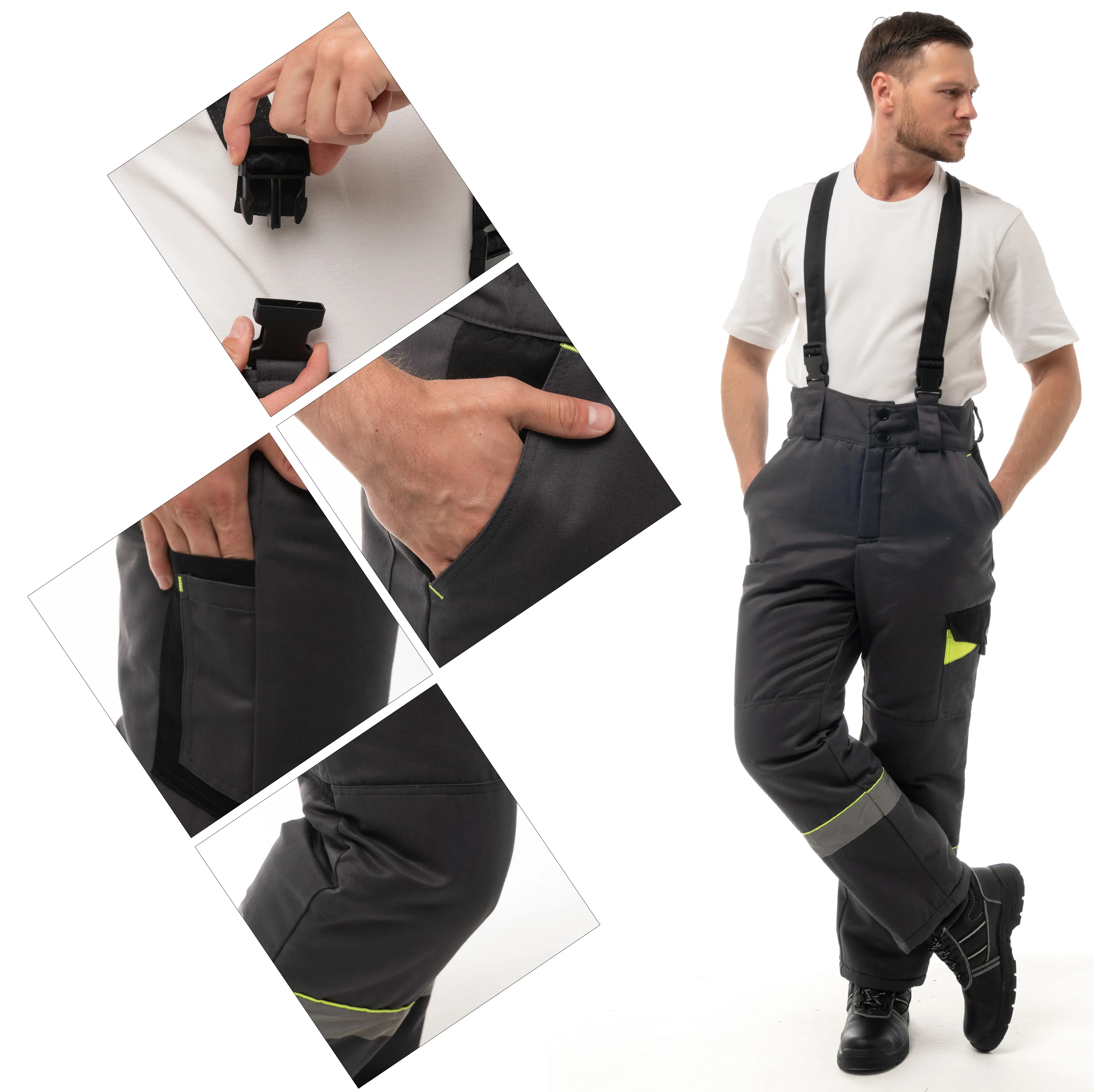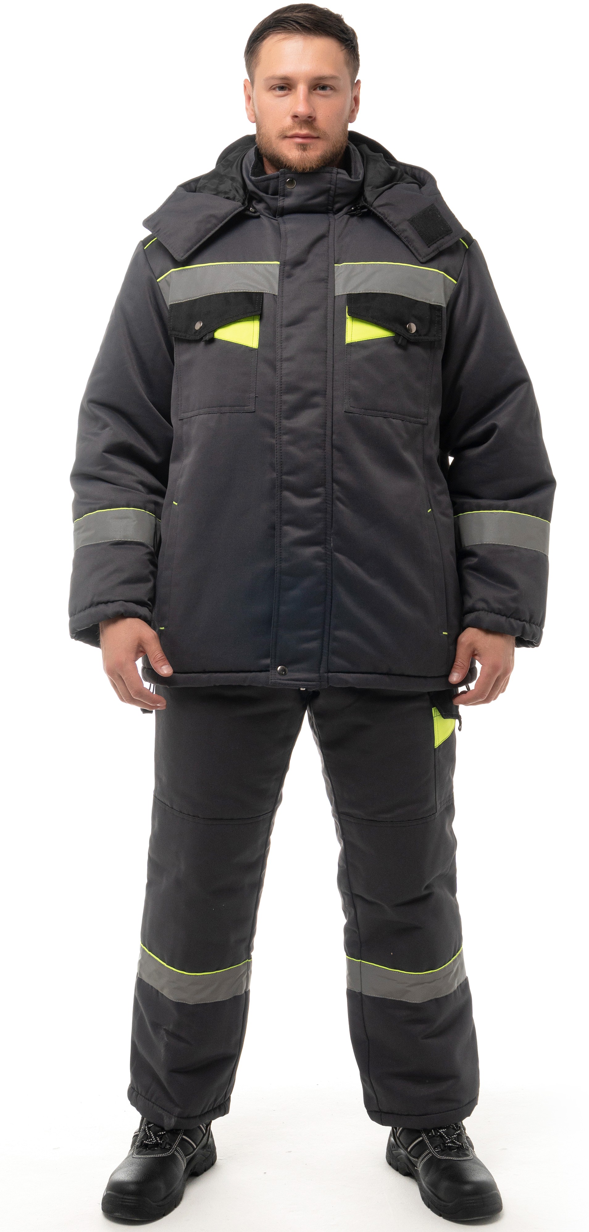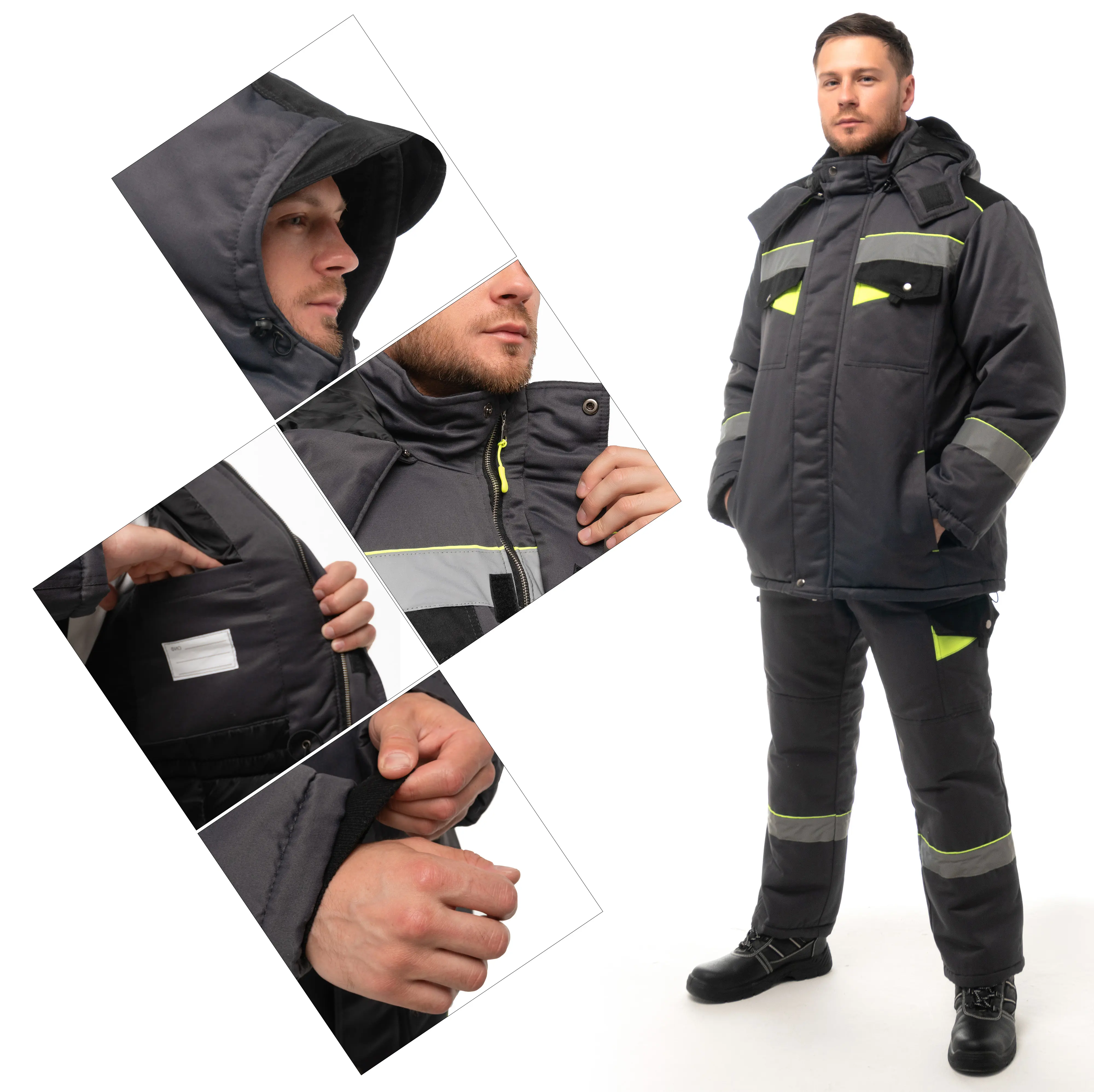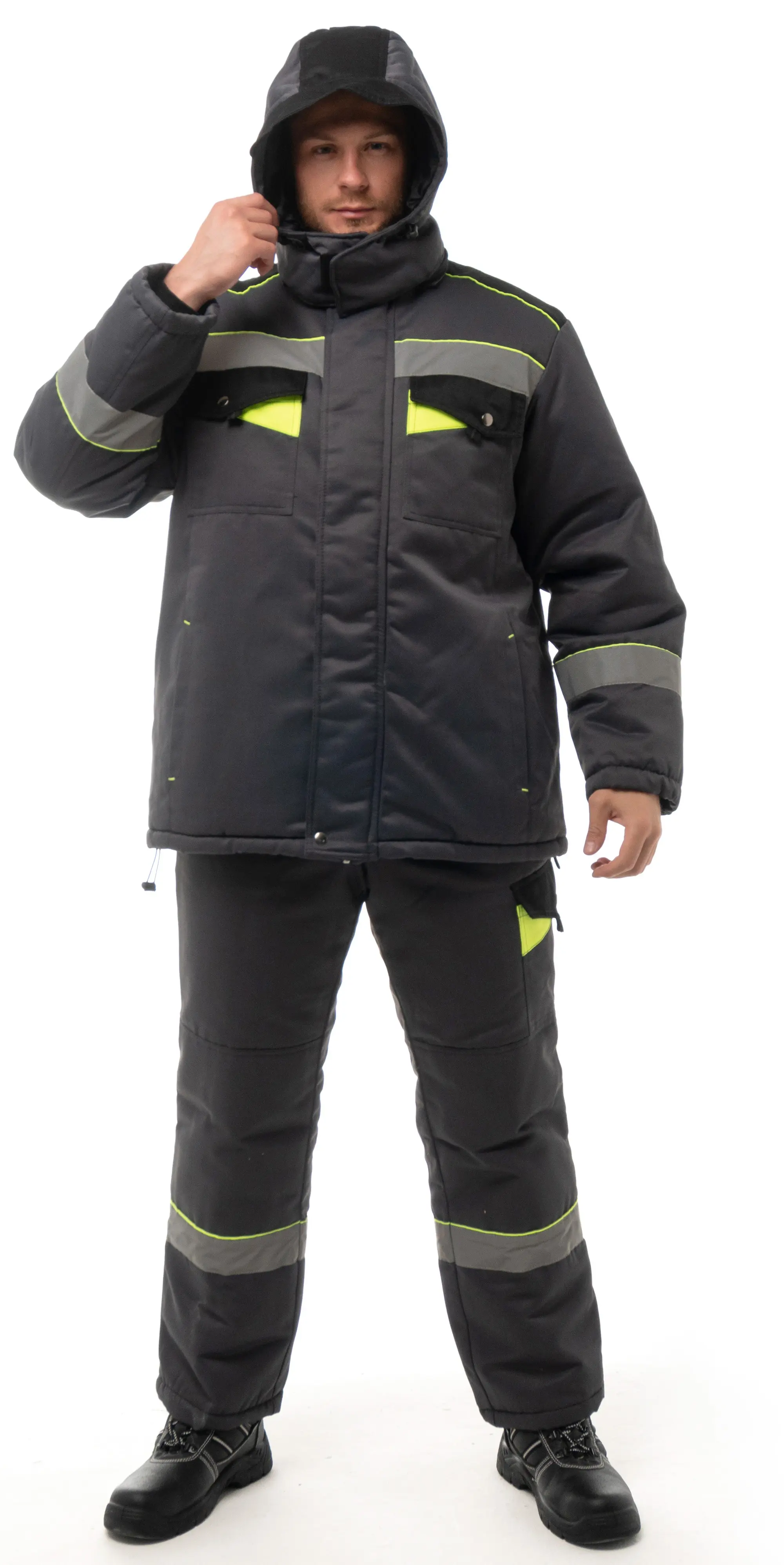 - В костюме используется светоотражающая полоса 50 мм.