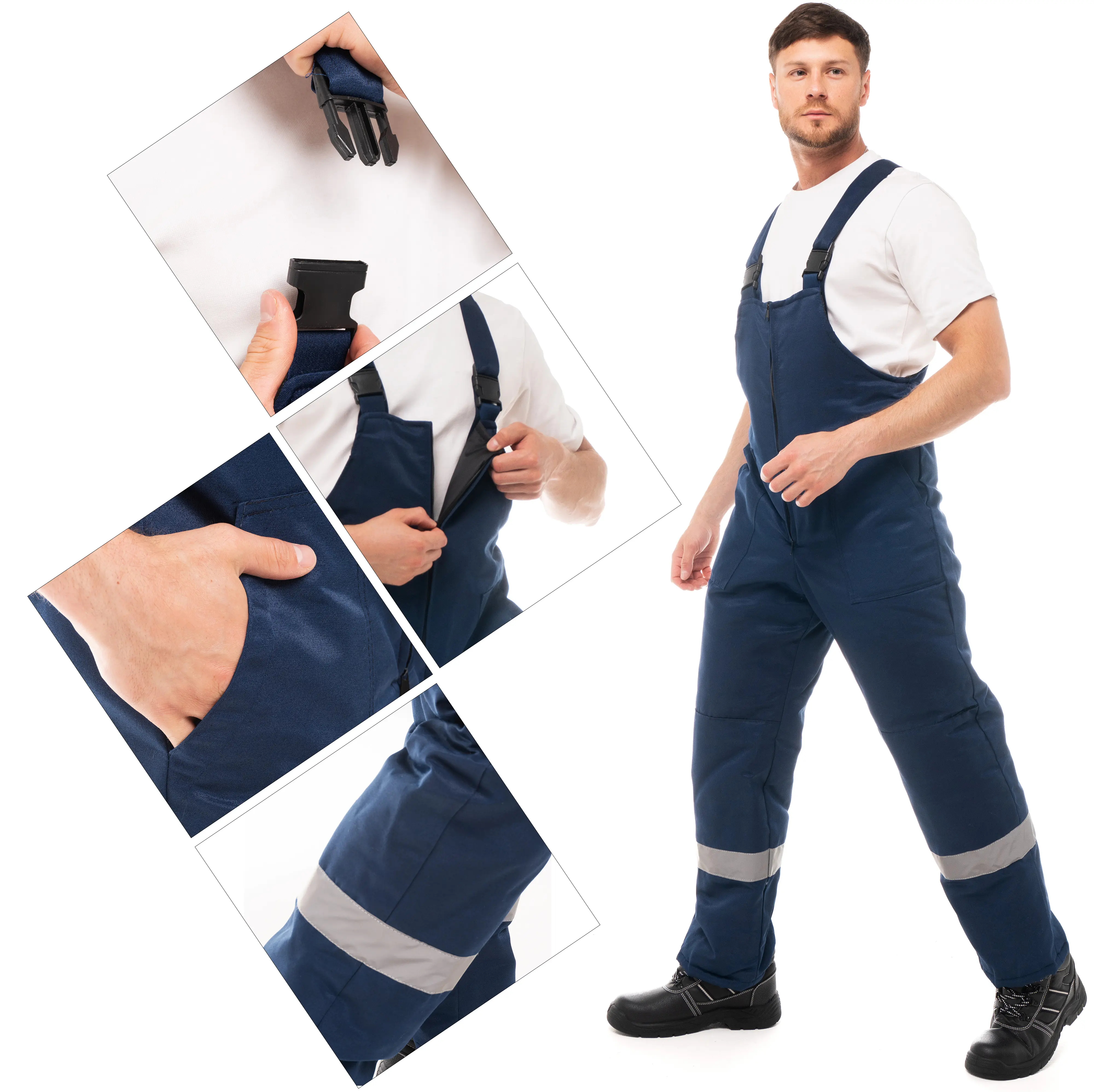 - Полукомбинезон утепленный, с центральной застежкой на тесьму “молния”.
