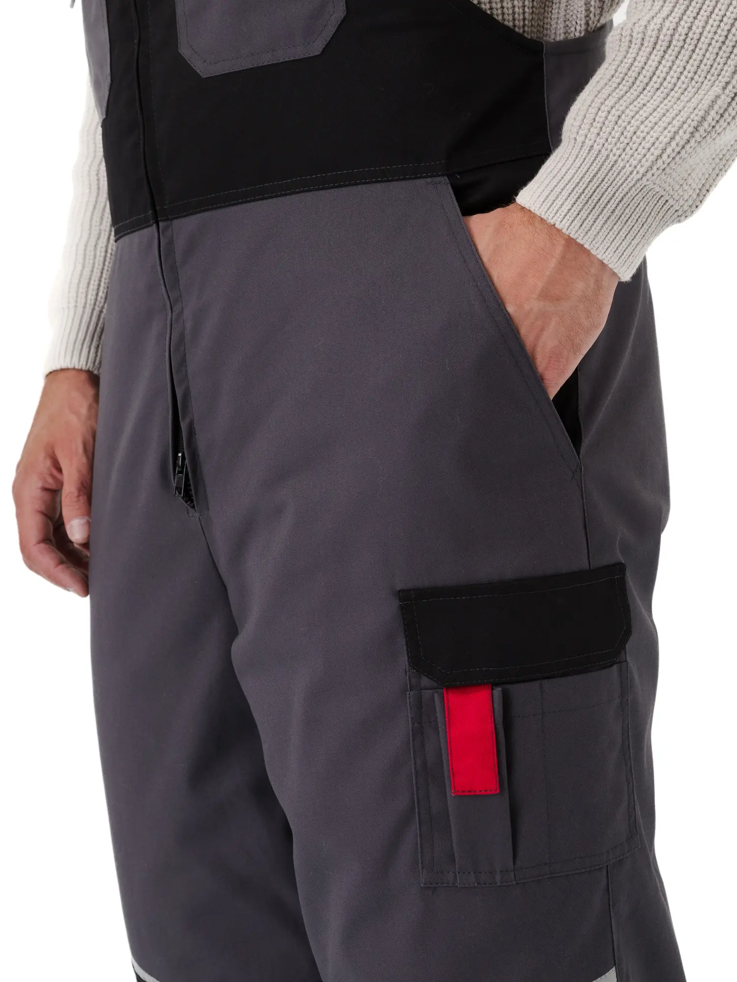 - Со стороны шагового шва низ полукомбинезона усилен накладкой;