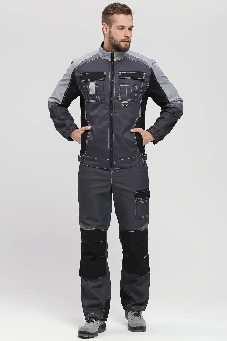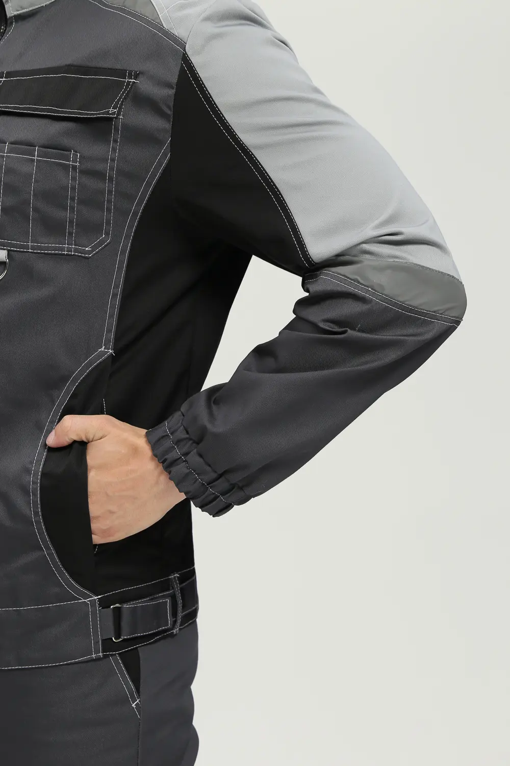 - светоотражающая полоса 50 мм по кокеткам полочек и спинки, по рукавам