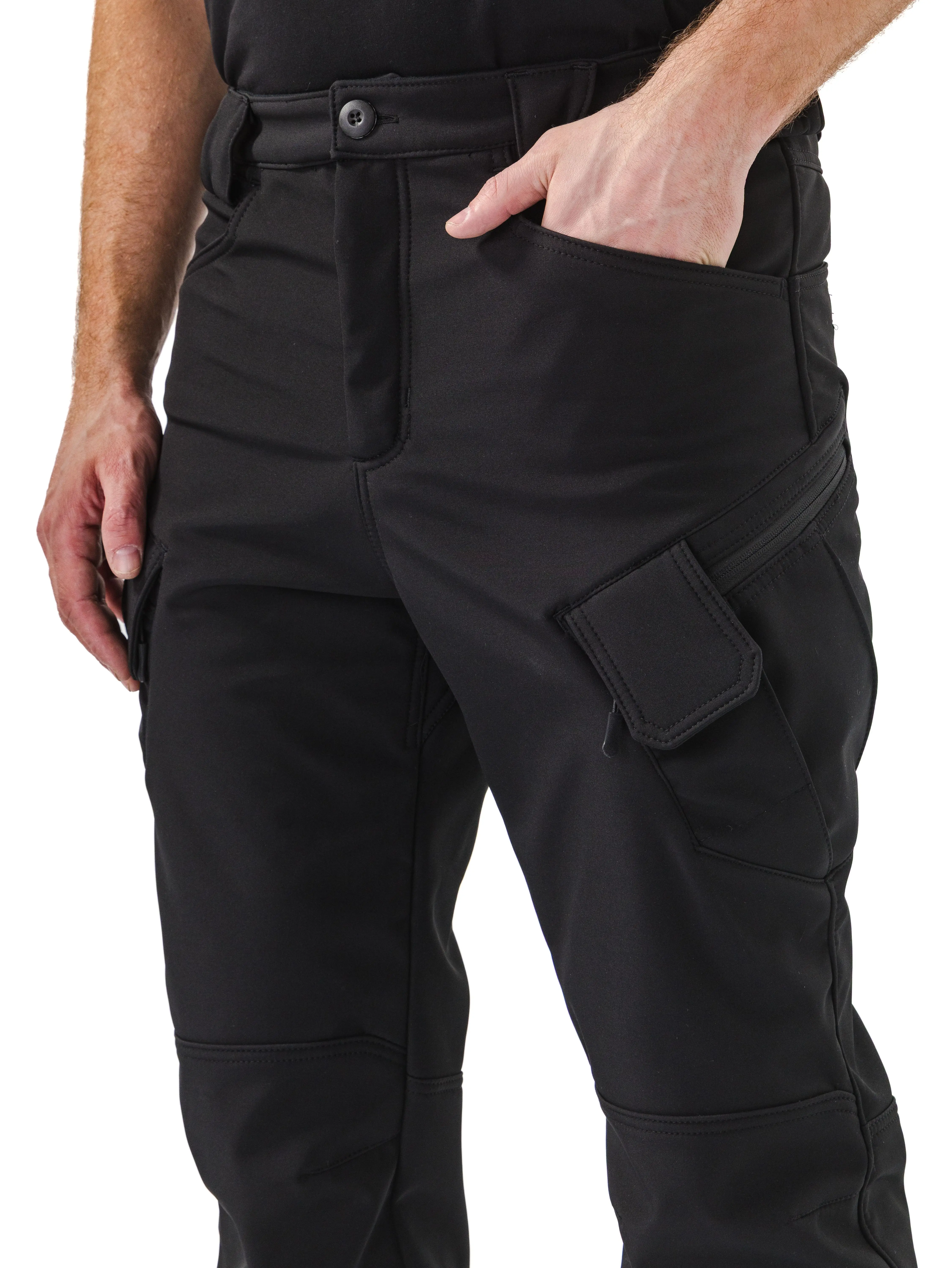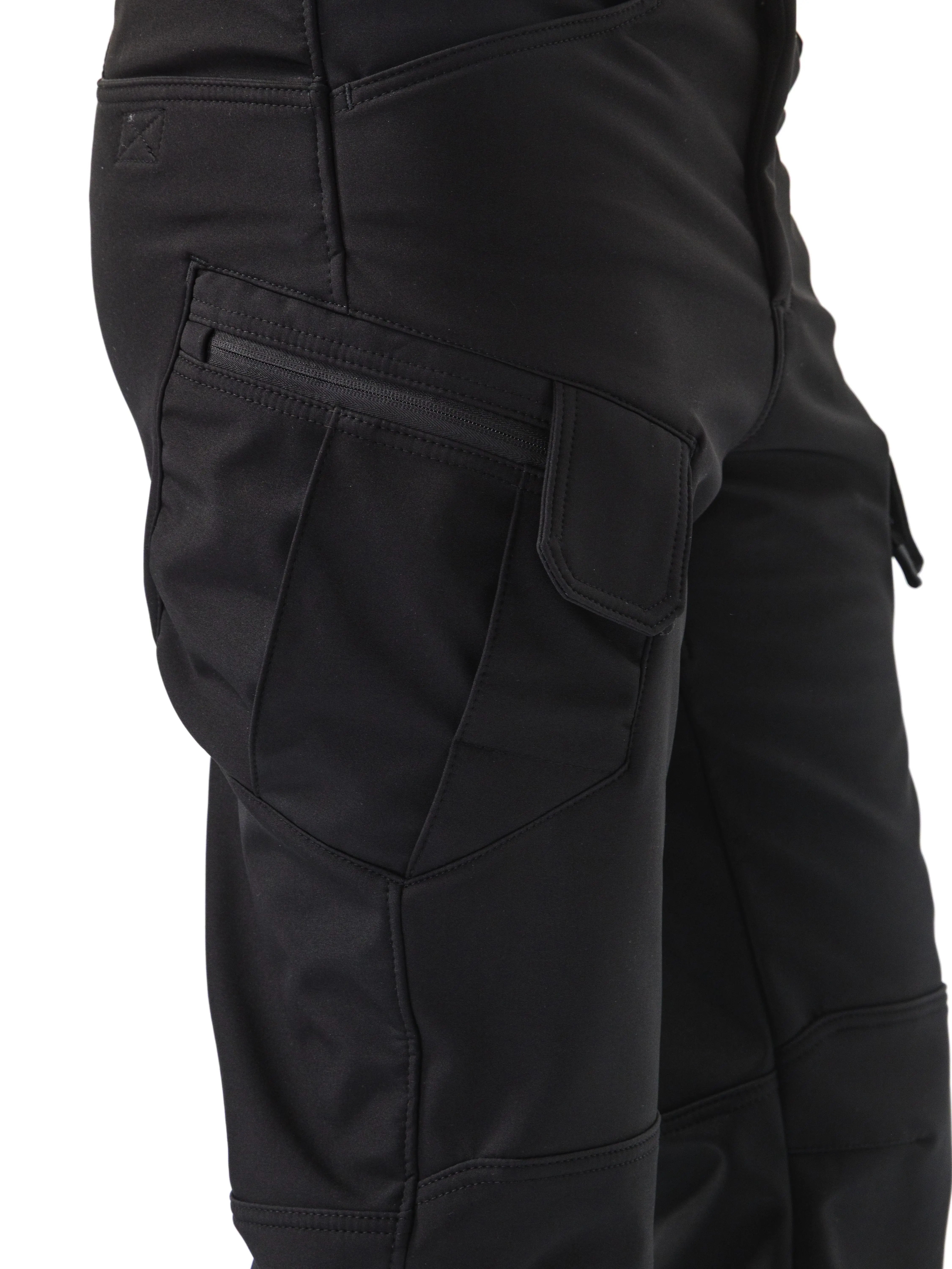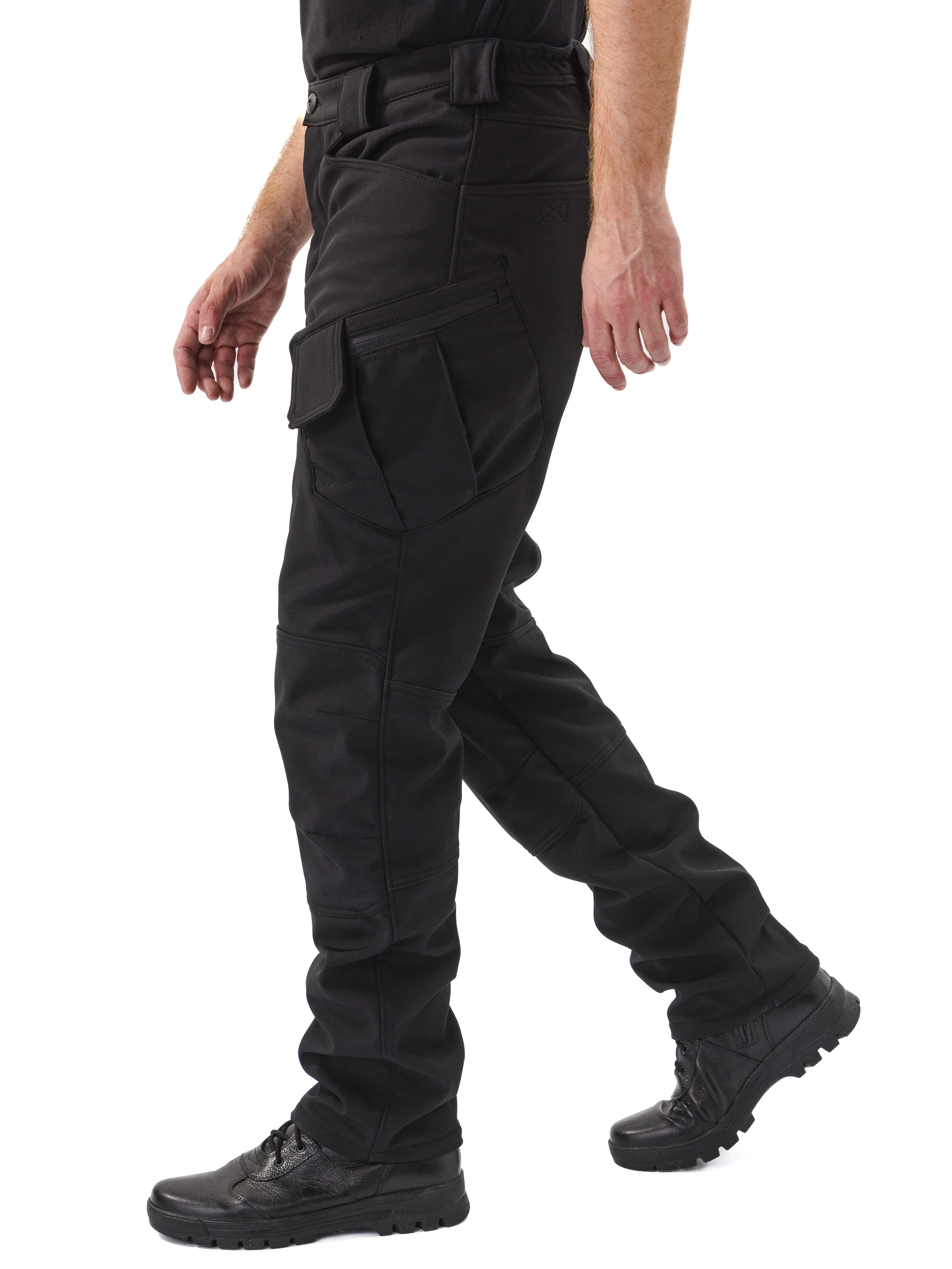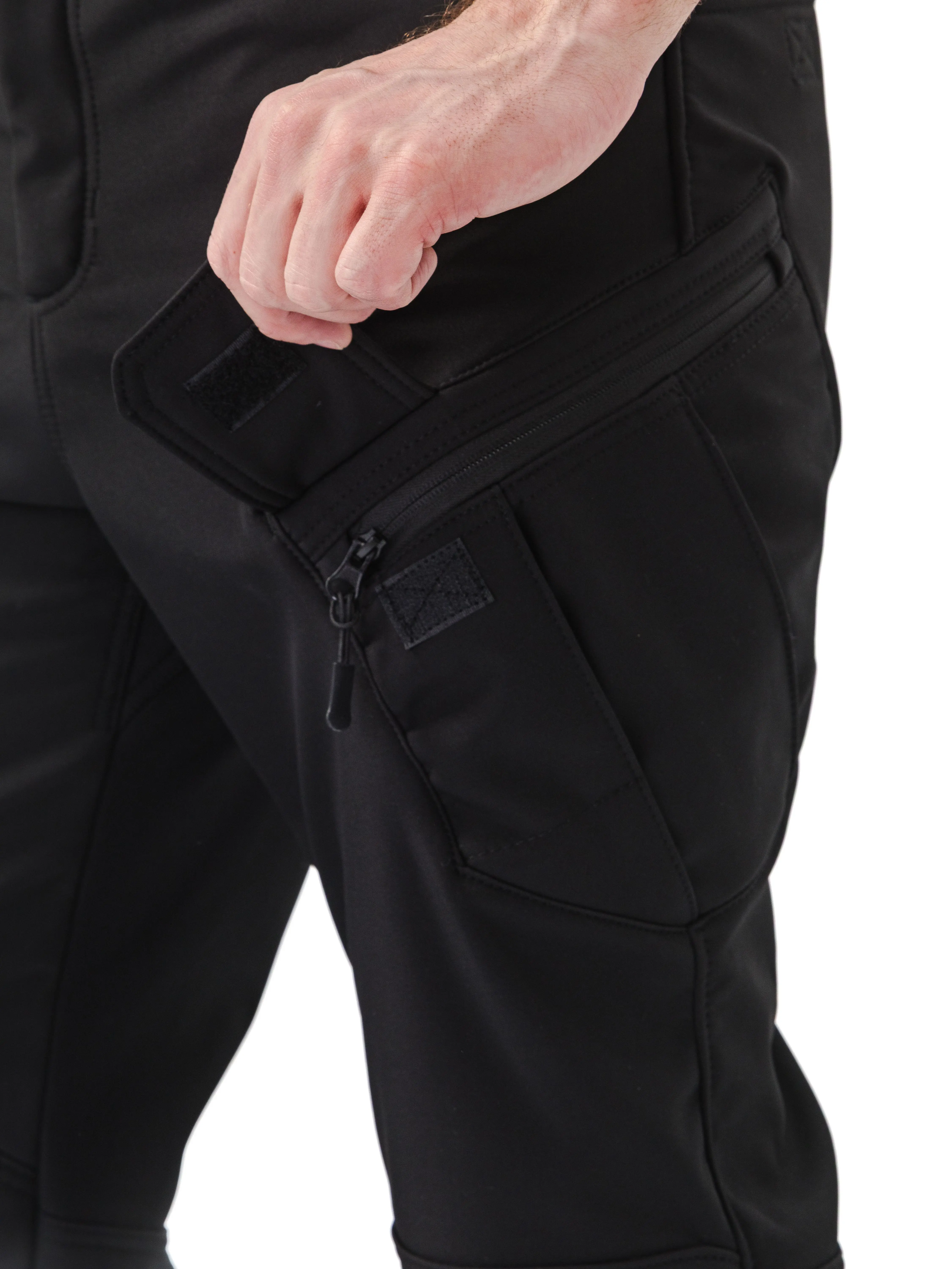 - на боковых сторонах брюк объемные карманы с двумя складками со входом на молнию и ограничителями с двух сторон, замок молнии закрывает декоративный клапан на липучке;